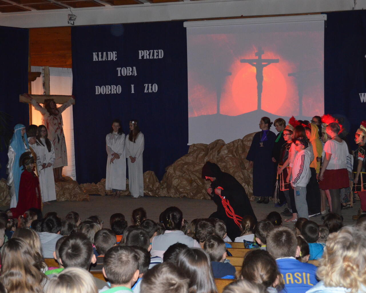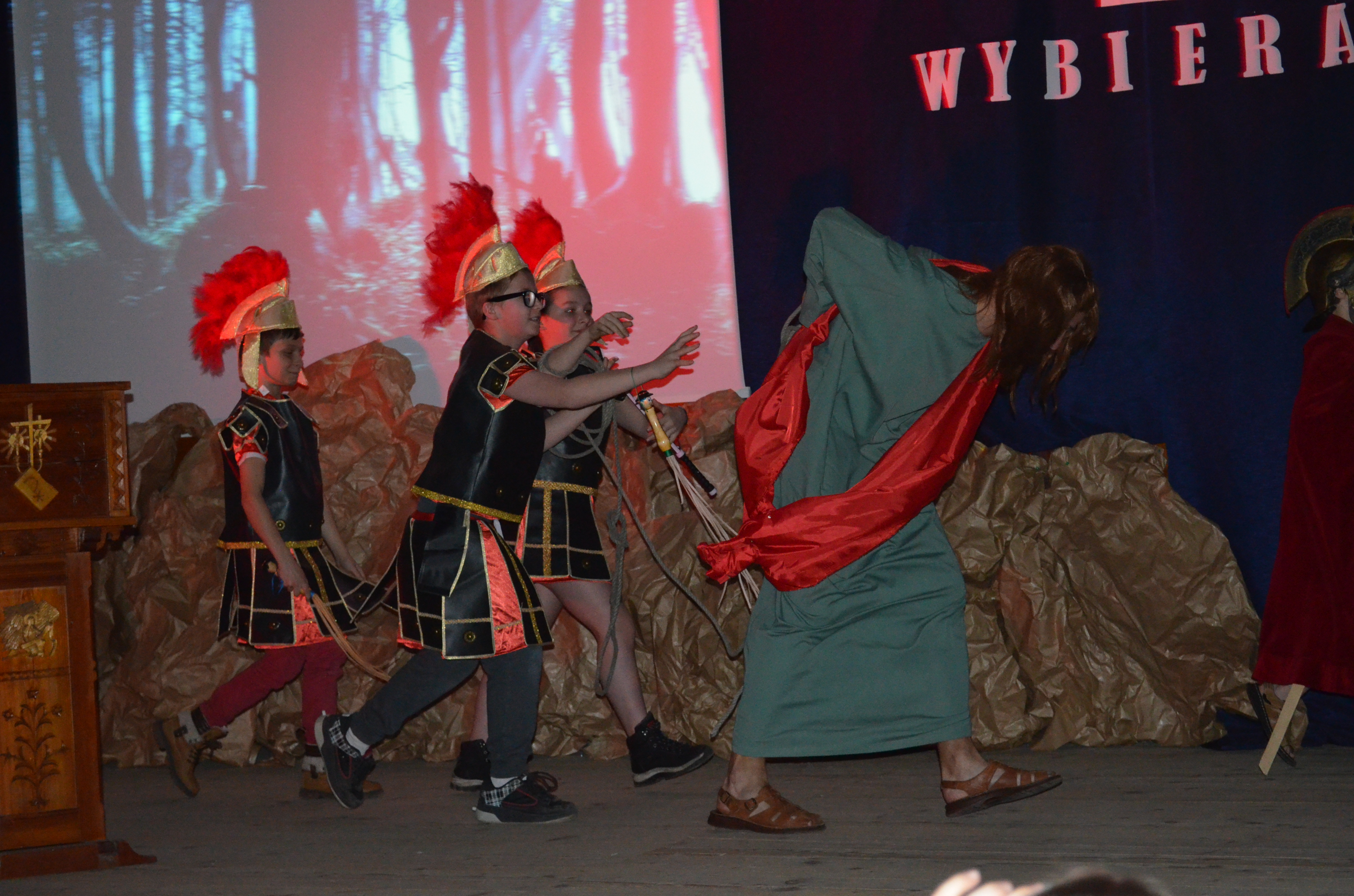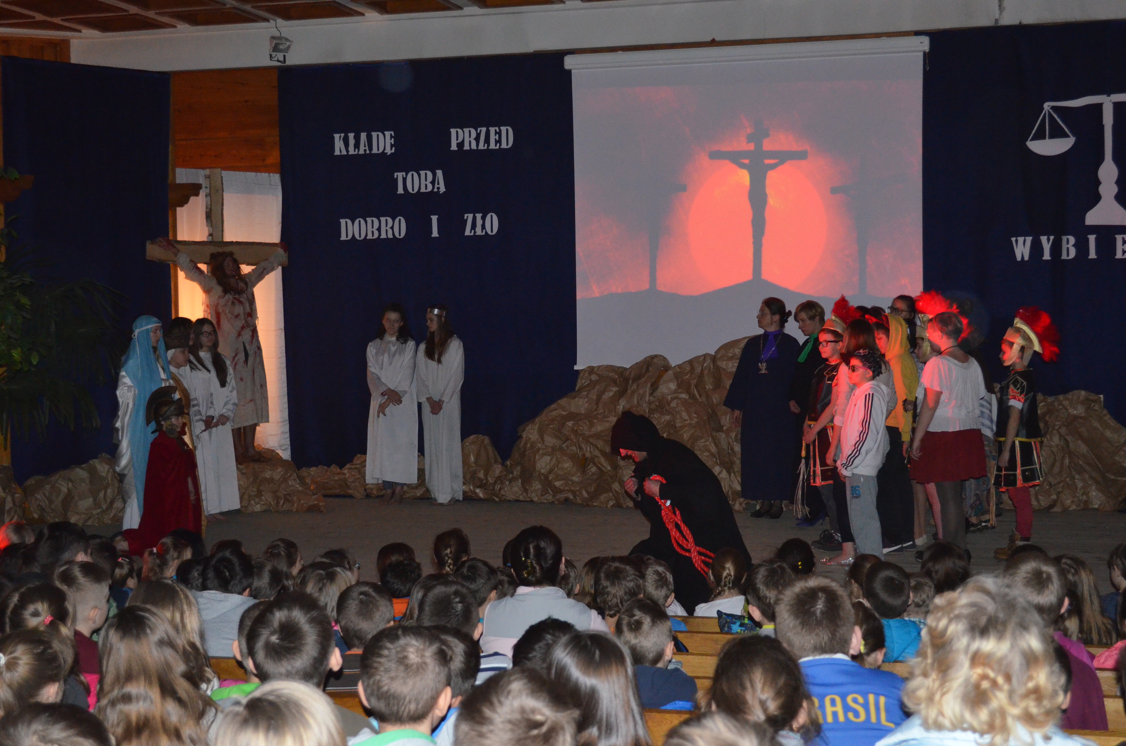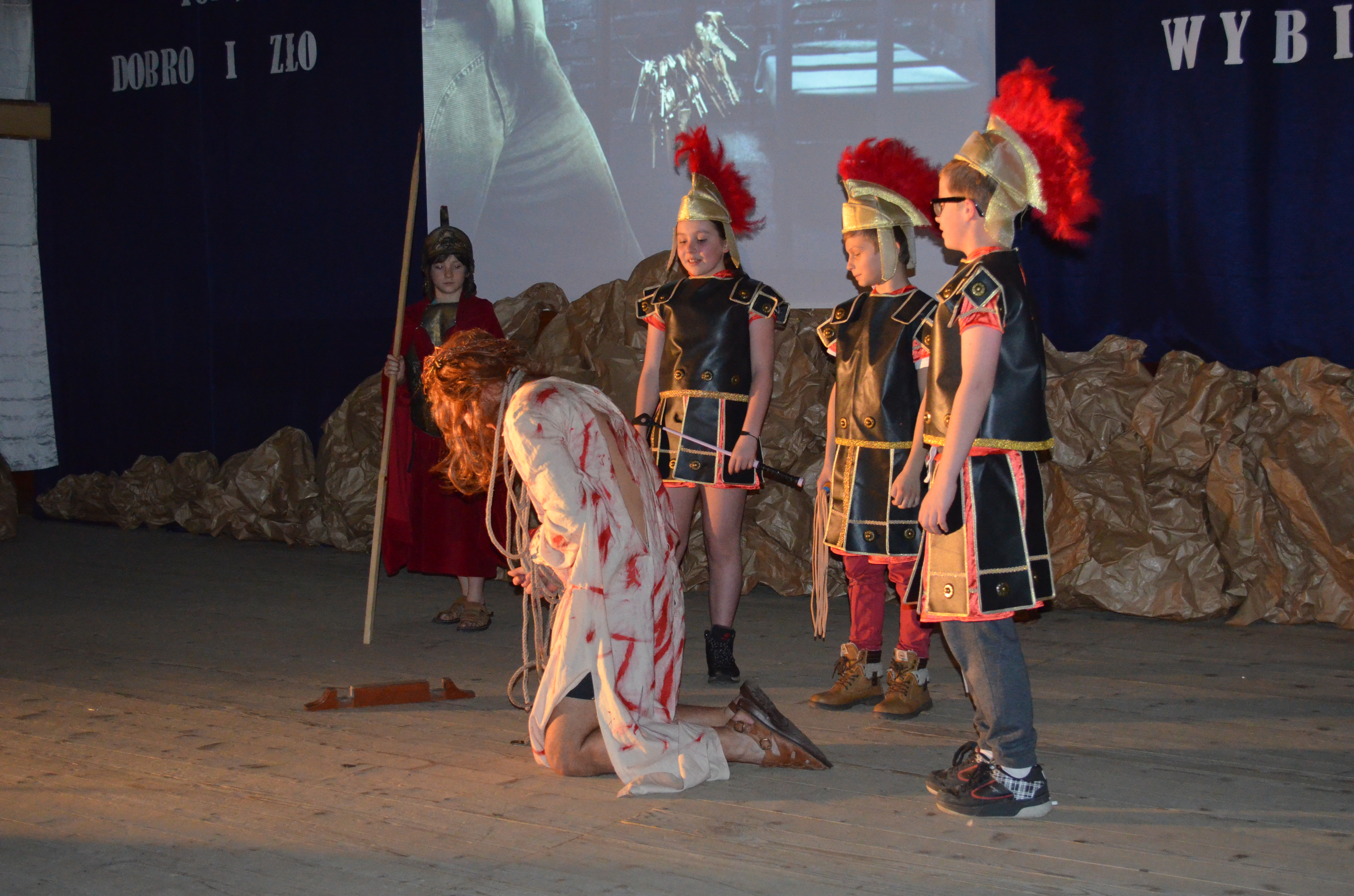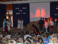 W gościnnych progach Sanktuarium Matki Bożej Objawiającej Cudowny Medalik na Olczy uczniowie Szkoły Podstawowej nr 4 im. Marszałka Józefa Piłsudskiego, z pomocą dorosłych –nauczycieli i rodziców, wystawili „Misterium Męki Pańskiej”.