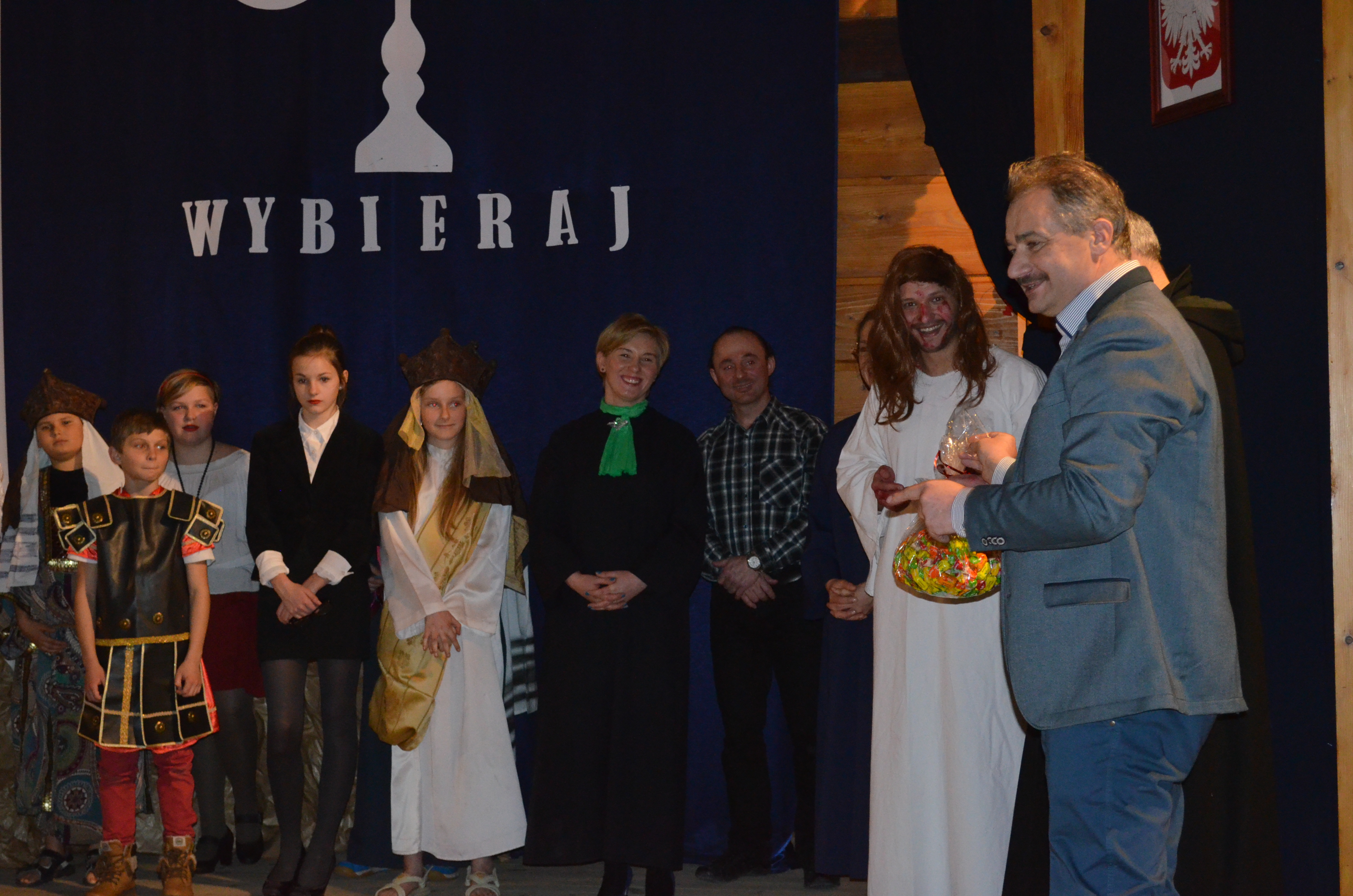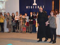 - Nie ukrywam, że wzruszyłem się, tak samo jak inne osoby oglądające Misterium wraz z nami. Jest to dowód na to, że widowisko było świetne – powiedział burmistrz Leszek Dorula. - W nawiązaniu do tego, co pokazaliście na scenie, chcę powiedzieć, że to najważniejsze, że macie takich rodziców, nauczycieli i księży, którzy w trudnych sytuacjach zawsze mogą Wam dobrze podpowiedzieć. Dlatego też im wszystkim należą się olbrzymie podziękowania.