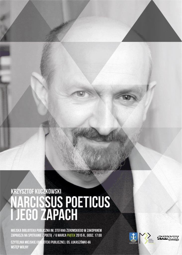 Miejska Biblioteka Publiczna im. Stefana Żeromskiego w Zakopanem zaprasza na spotkanie z poetą Krzysztofem Kuczkowskim pt. „Narcissus poeticus i jego zapach”. 6 marca (piątek) 2015 r., godz. 17.00, Czytelnia Miejskiej Biblioteki Publicznej, os. Łukaszówki 4a. Serdecznie zapraszamy. Wstęp wolny