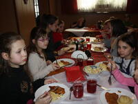 Dzieci miały zapewnione wyżywienie w postaci drugiego śniadania, które z zakupionych produktów, pod nadzorem opiekunów, robiły samodzielnie, a także smaczne obiady w pensjonacie „Hanusina Chałupa”. Nagrodą za wzorowe zachowanie podczas spożywanych wspólnie posiłków dzieci była niespodzianka przygotowana w jednej z restauracji - pizza w dowolnej ilości.