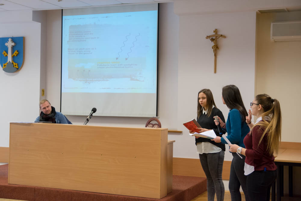 W pierwszej części spotkania młodzież przygotowała swoje prezentacje: Bułgarzy przedstawili ogólną prezentację o jakości powietrza w Bułgarii, Czesi opowiadali natomiast o projekcie badawczym realizowanym w 4 szkołach.
