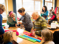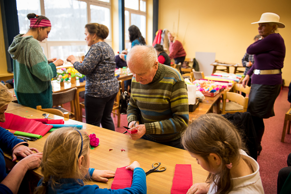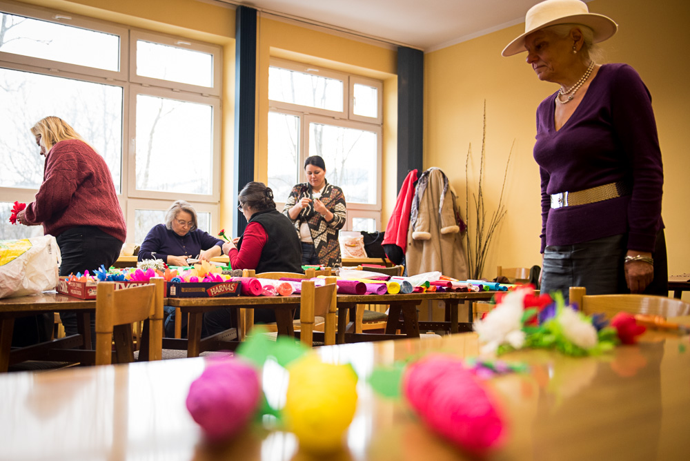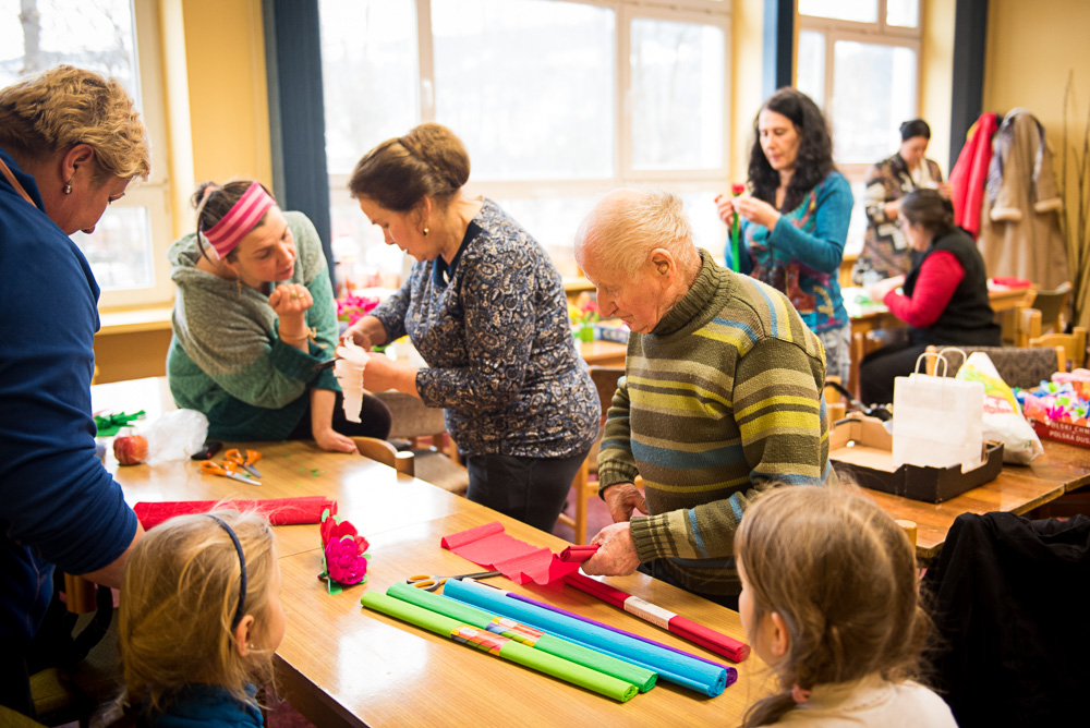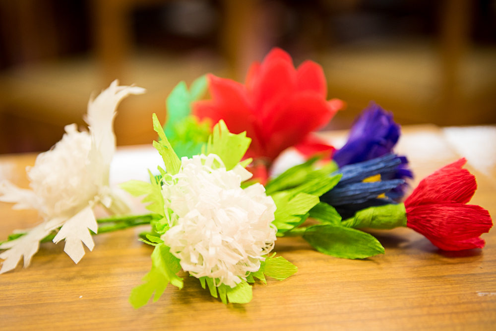 ". Podczas zajęć z artystami ludowymi nauczyć się można między innymi ginącej sztuki tworzenia kwiatów z bibuły.