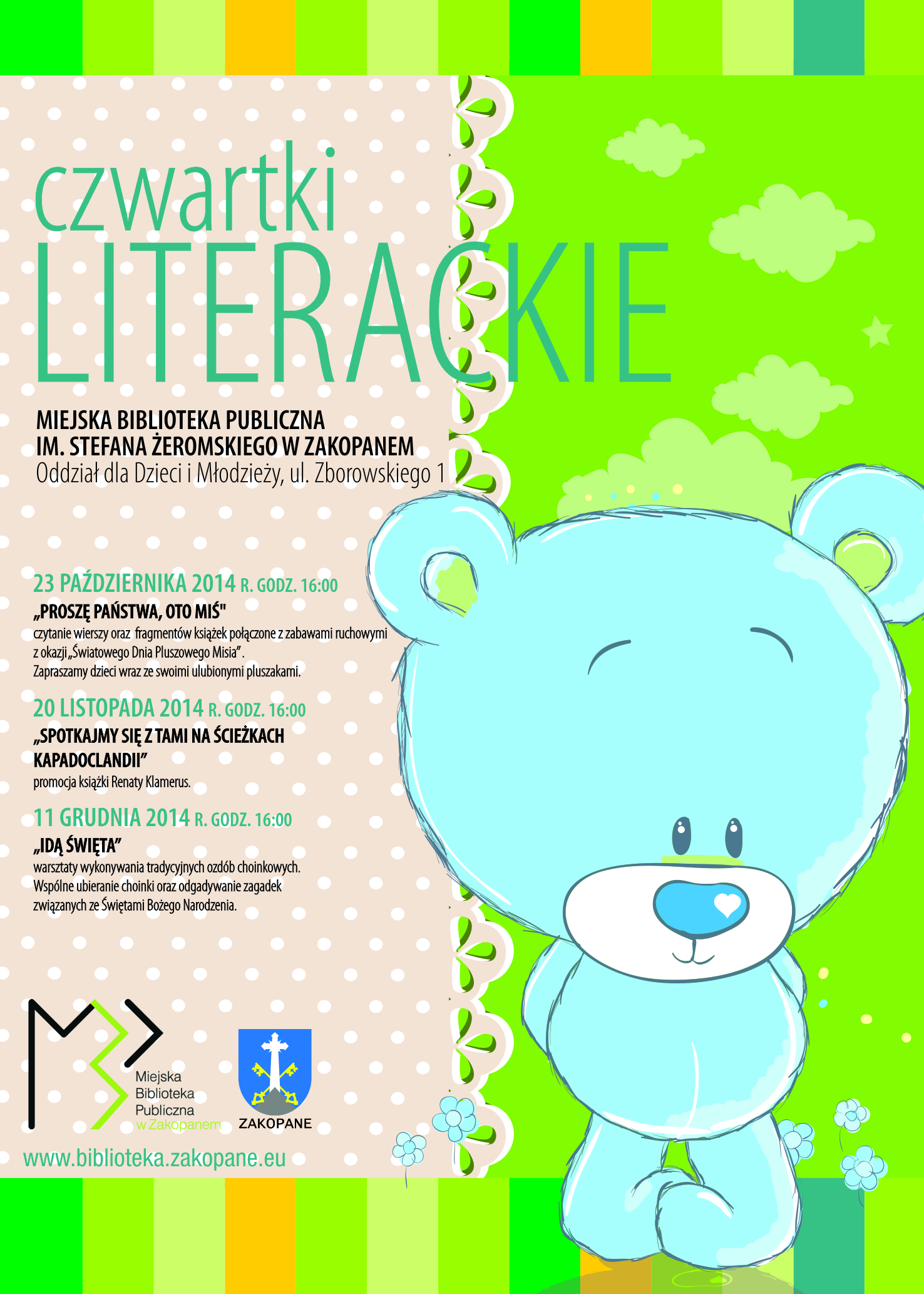 Miejska Biblioteka Publiczna im. Stefana Żeromskiego w Zakopanem, serdecznie zaprasza na „Czwartki literackie”. W ramach cyklu imprez na najmłodszych uczestników czeka wiele atrakcji.