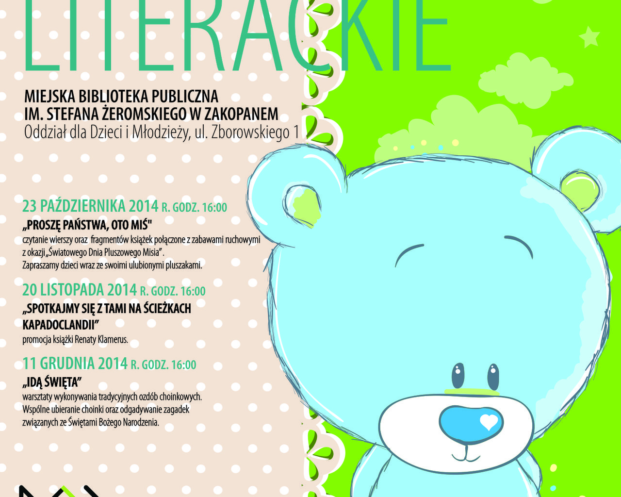 Na wszystkie ww. wydarzenia zapraszamy do Miejskiej Biblioteki Publicznej im. Stefana Żeromskiego w Zakopanem Oddział dla Dzieci i Młodzieży, ul. Zborowskiego 1.