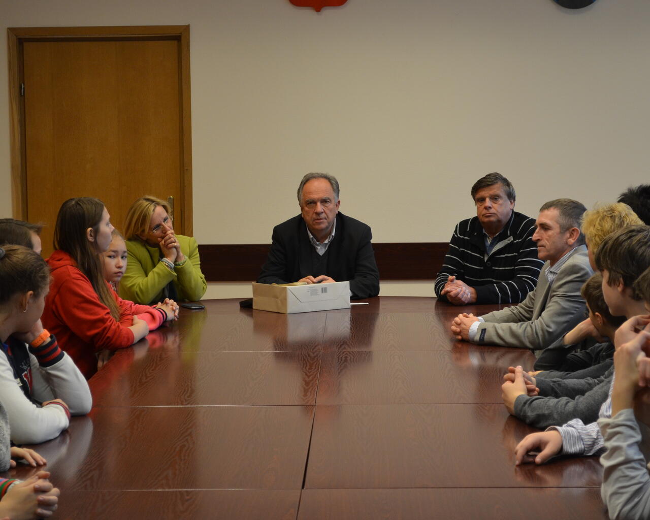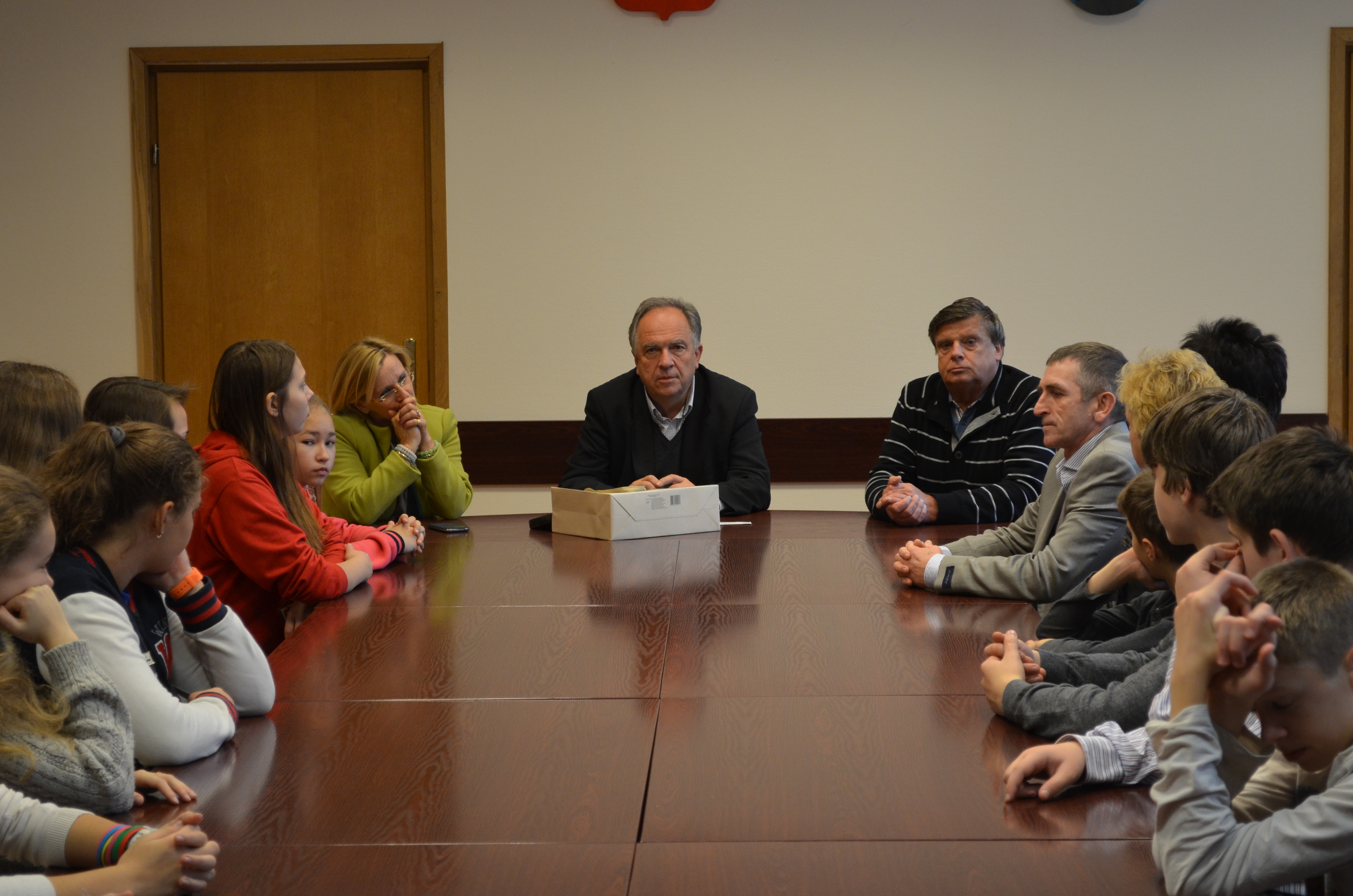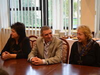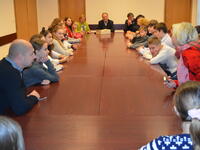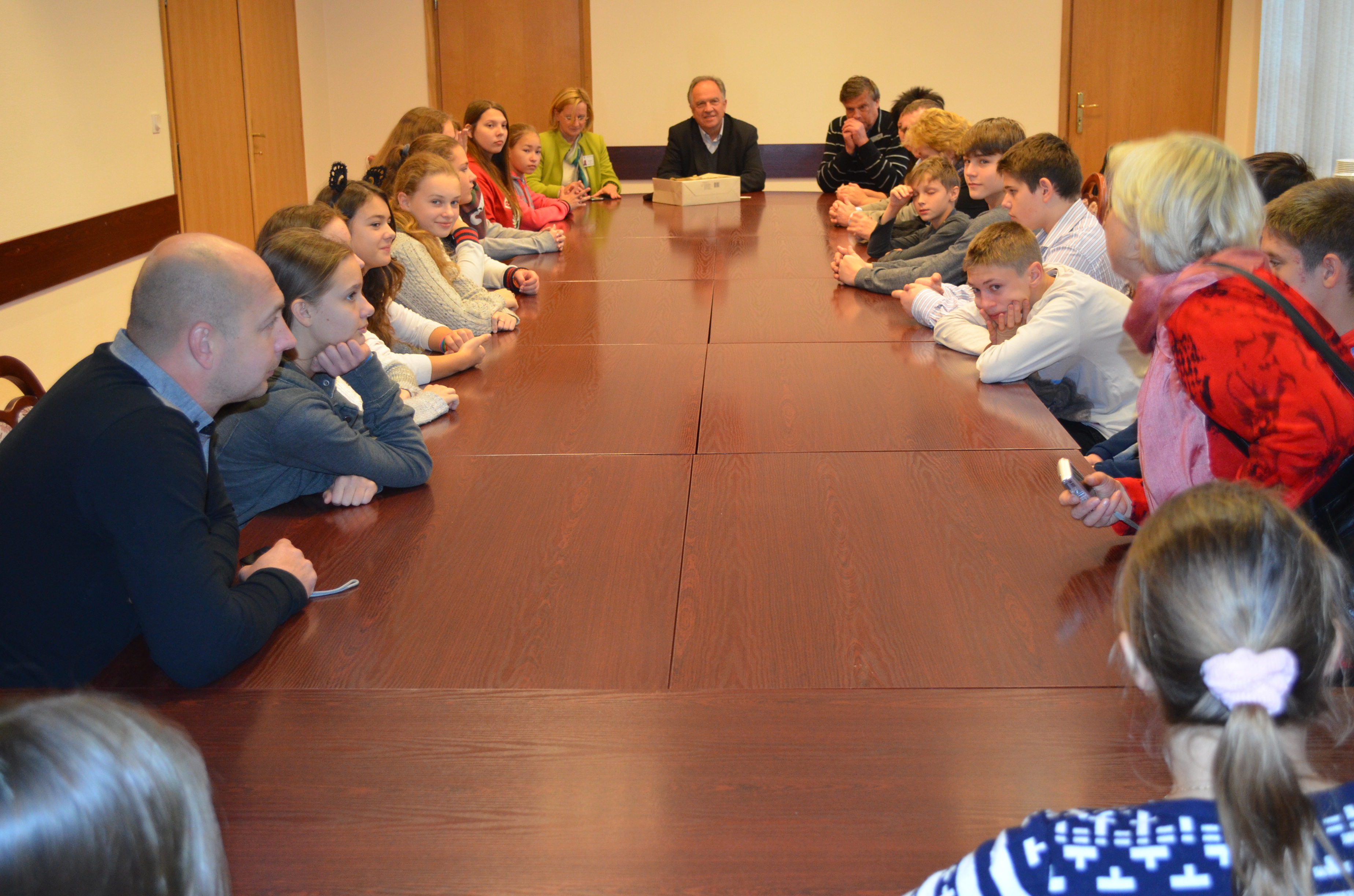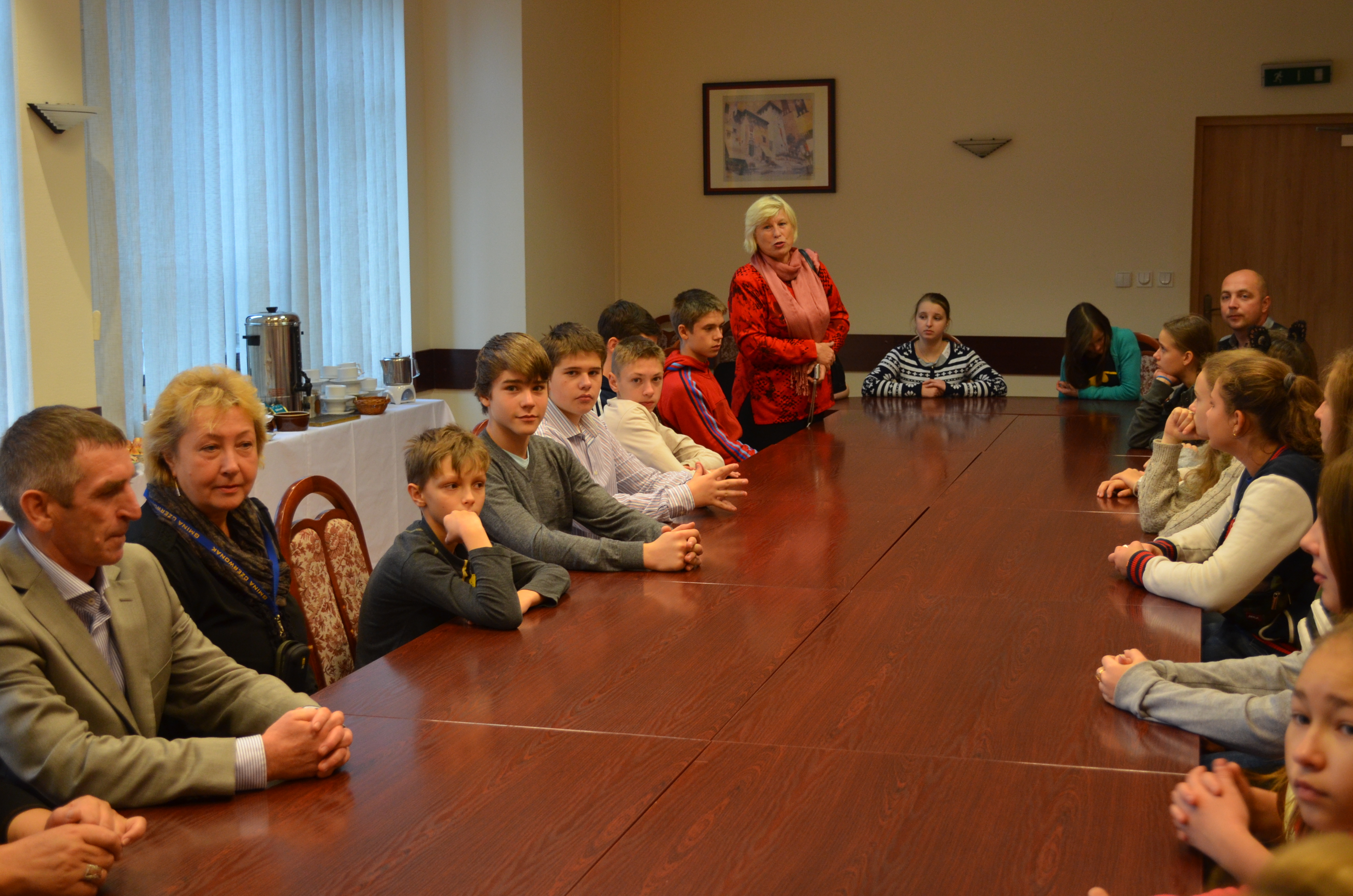 Burmistrz Janusz Majcher i naczelnik Wydziału Edukacji, Turystyki i Sportu UMZ Zofia Kiełpińska spotkali się z grupą młodzieży z Gimnazjum nr 34 z Kijowa i ich opiekunami, którą goszczą uczniowie Gimnazjum nr 2.