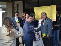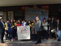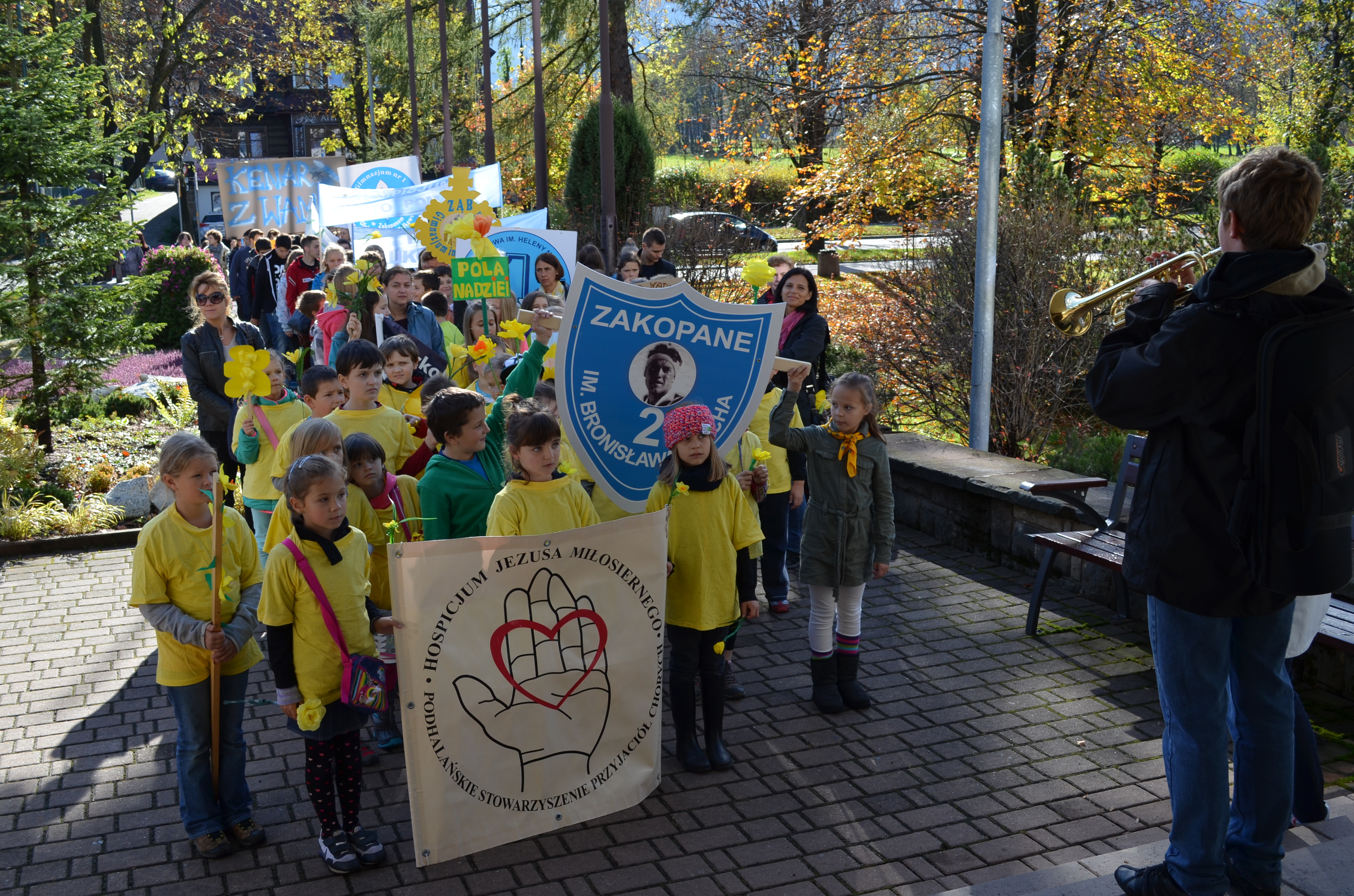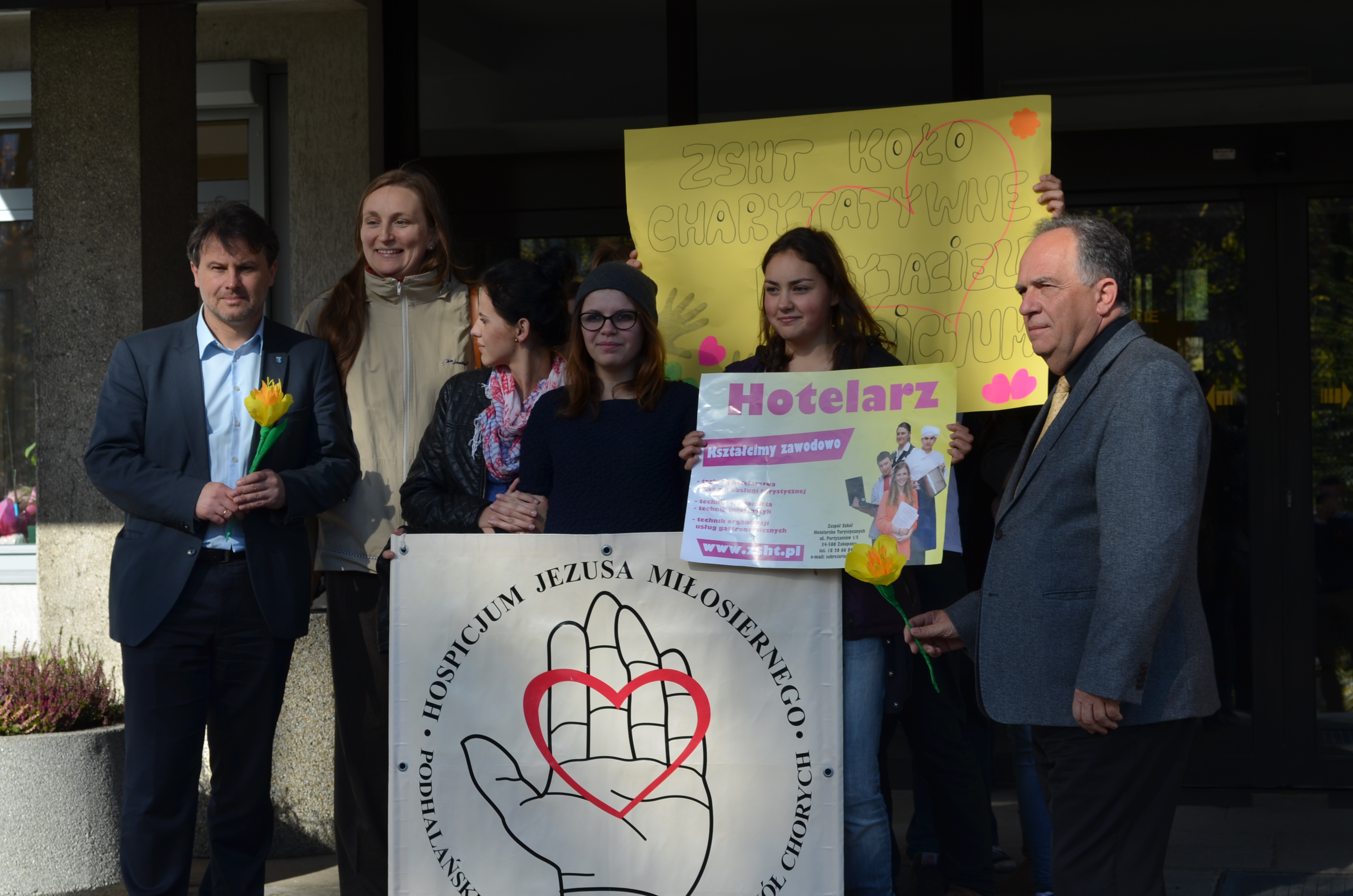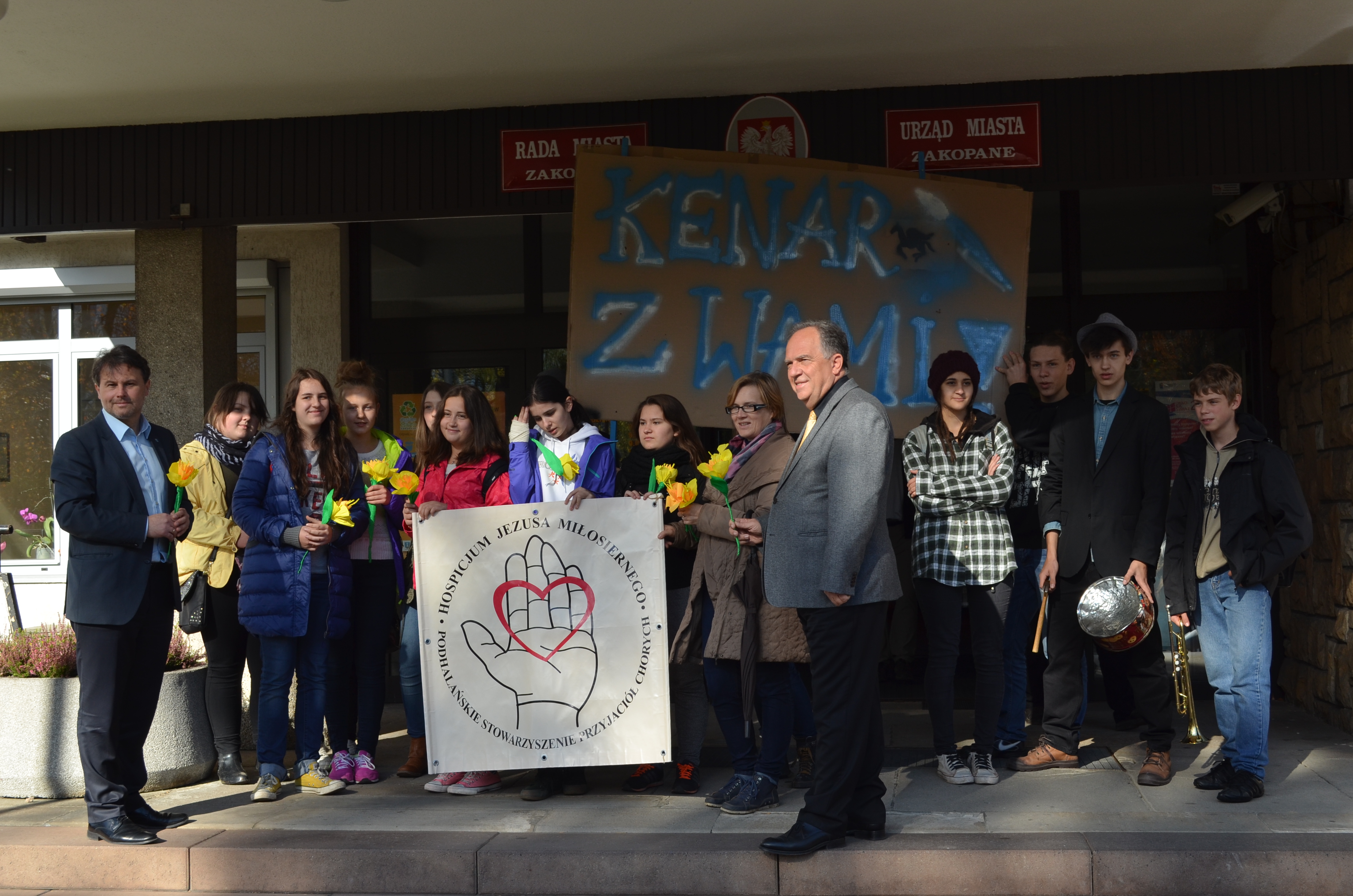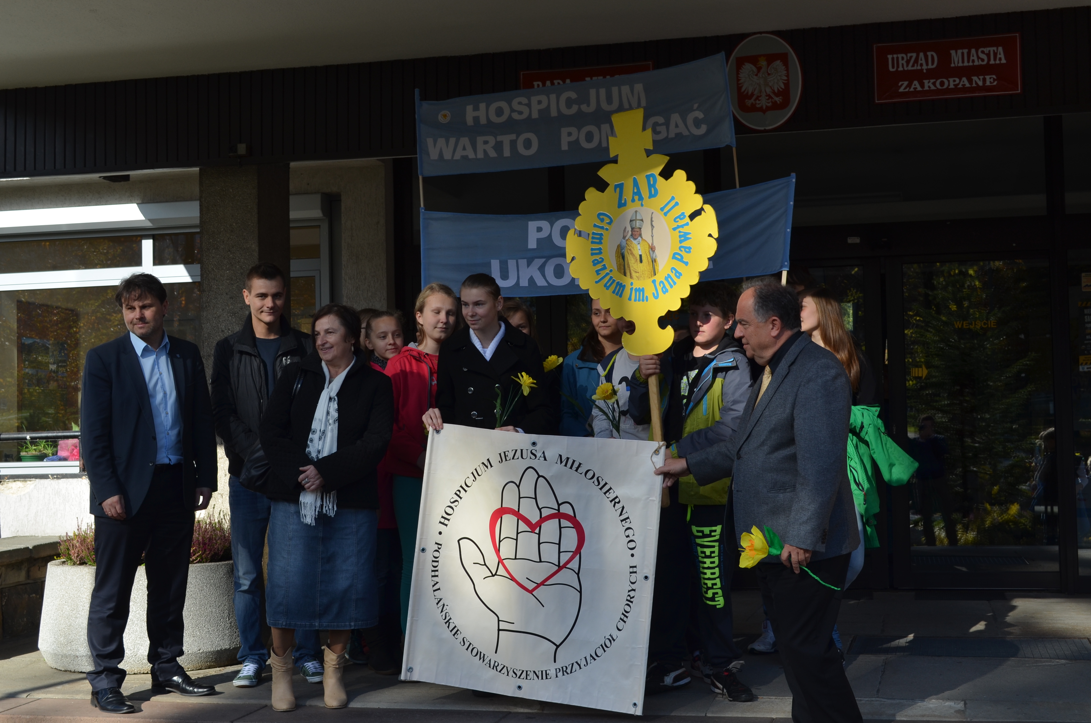Uczestnicy akcji „Pola nadziei”, w trakcie przemarszu ulicami miasta, odwiedzili Urząd Miasta Zakopane, gdzie spotykali się z burmistrzem Januszem Majchrem i jego zastępcą Mariuszem Koperskim. Akcja, w którą od lat włącza się młodzież i dzieci z terenu Skalnego Podhala, ma na celu poszukiwanie środków finansowych na rzecz osób terminalnie chorych.
