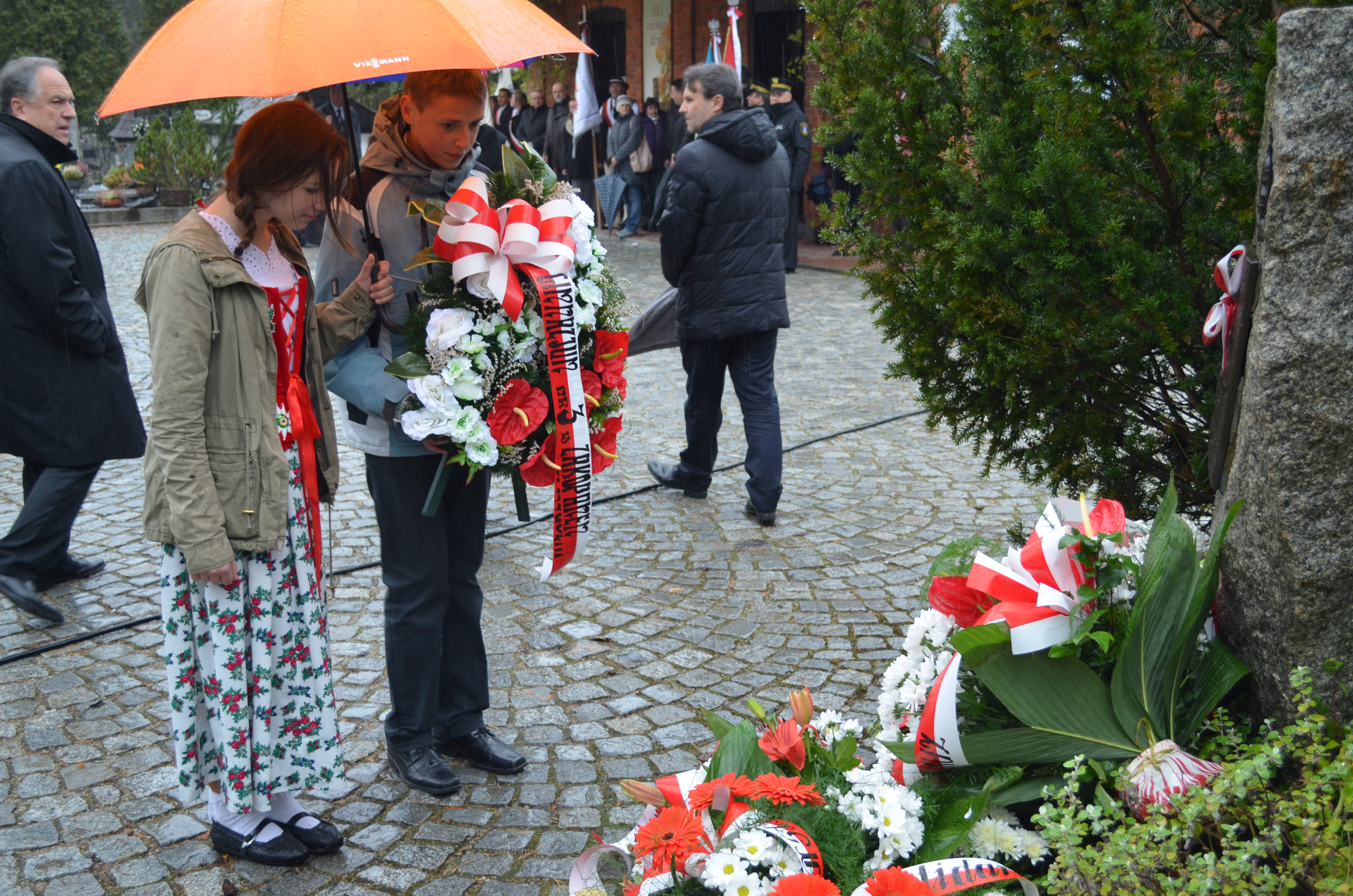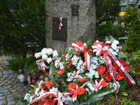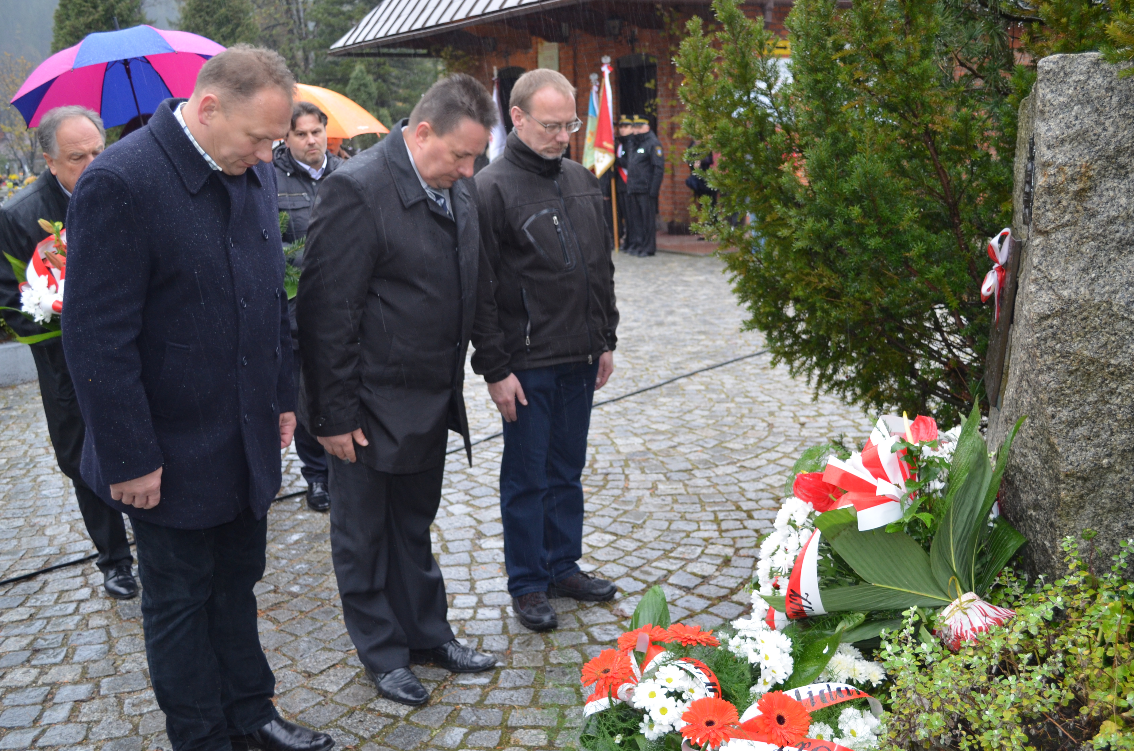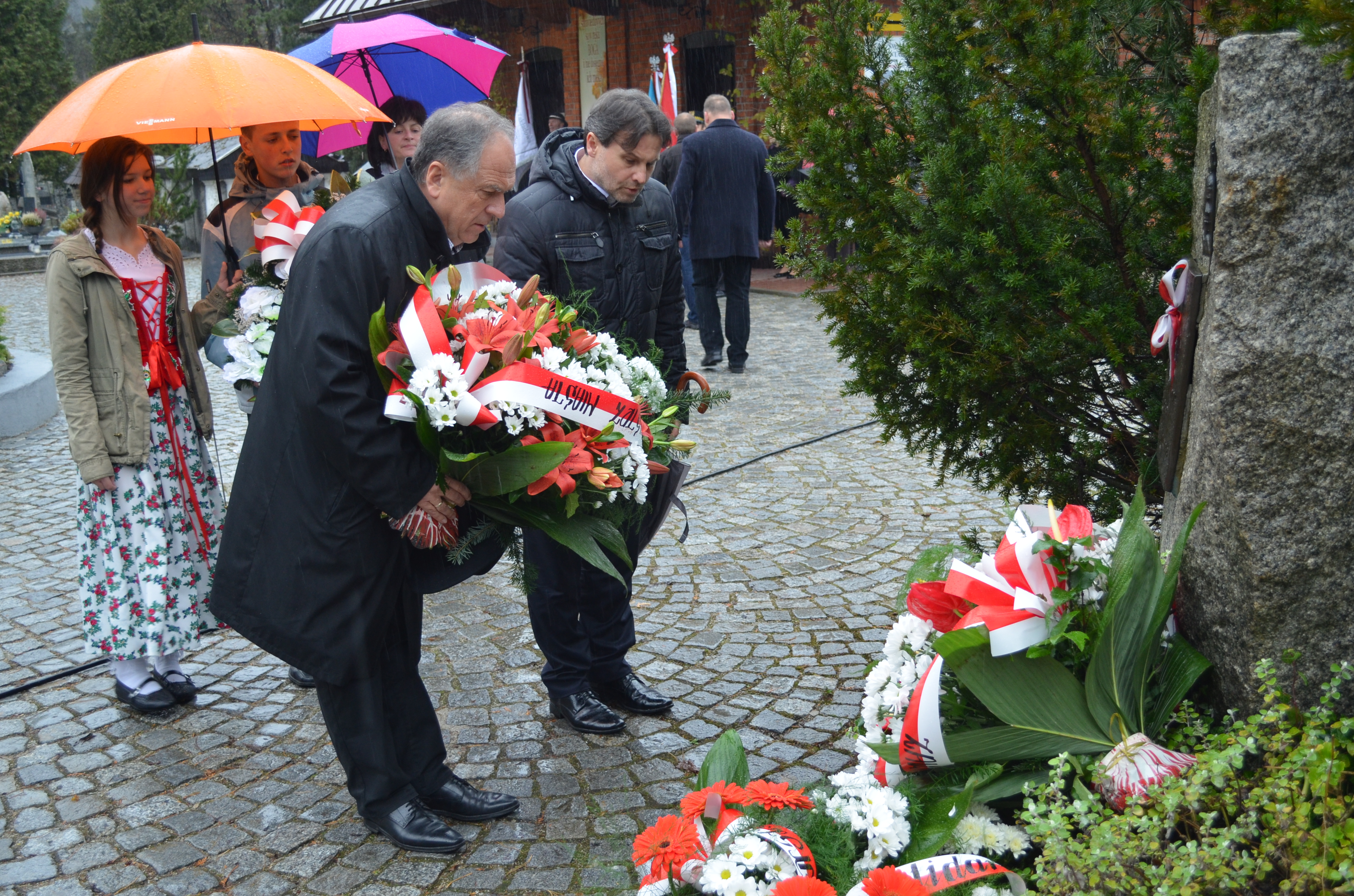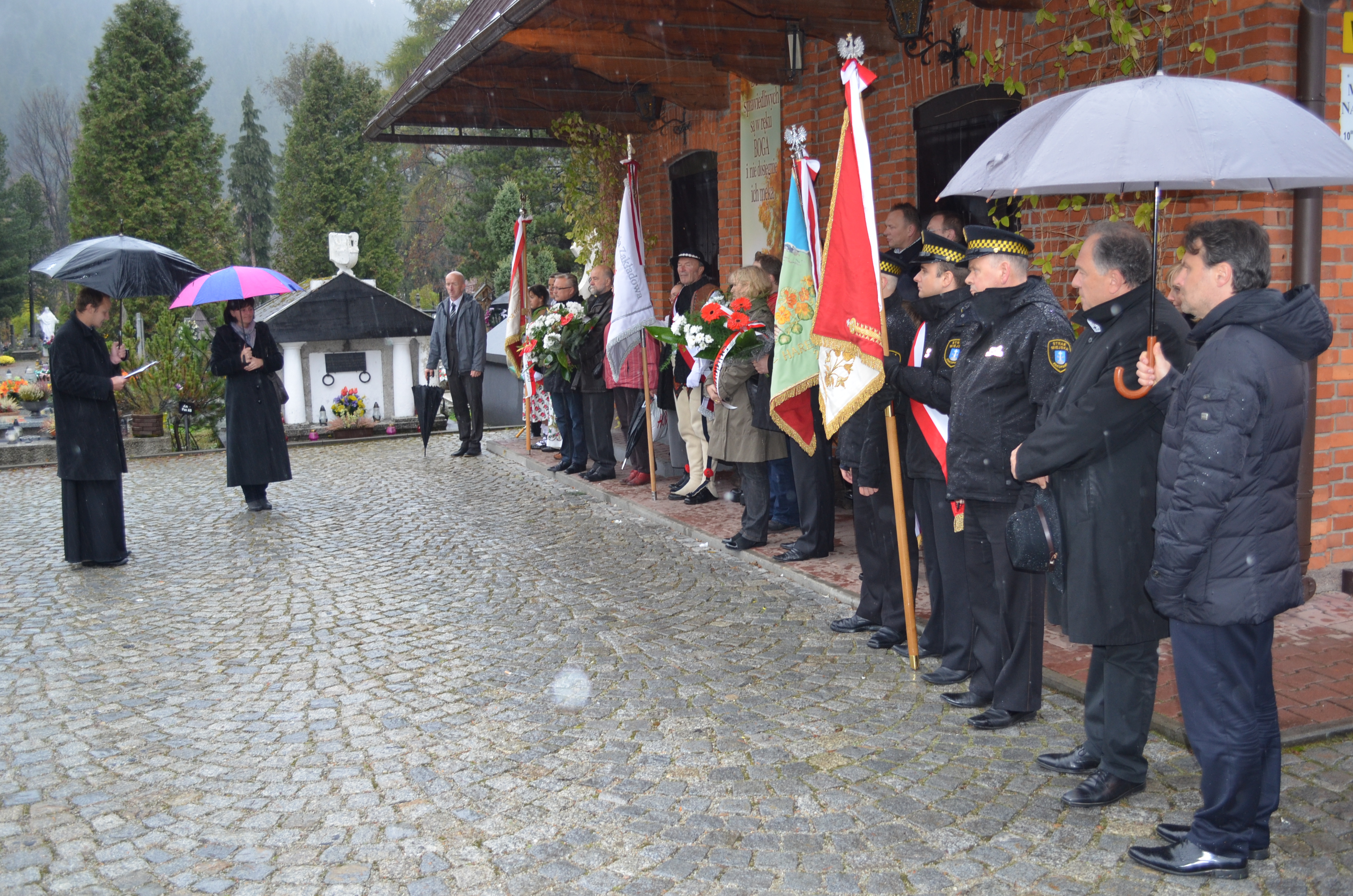 Kwiaty pod tablicą upamiętniającą bł. ks. Jerzego Popiełuszkę złożyli burmistrz Janusz Majcher, zastępca burmistrza Mariusz Koperski, przewodniczący Rady Miasta Zakopane Jerzy Zacharko, radni Bożena Solańska i Jan Gąsienica Walczak oraz naczelnik Wydziału Kultury i Popularyzacji Zakopanego Joanna Staszak.