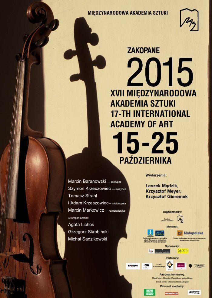 Serdecznie zapraszamy na koncerty i wykłady odbywające się w ramach zakopiańskich spotkań młodych muzyków z mistrzami, czyli podczas XVII Międzynarodowej Akademii Sztuki - Zakopane 2015.