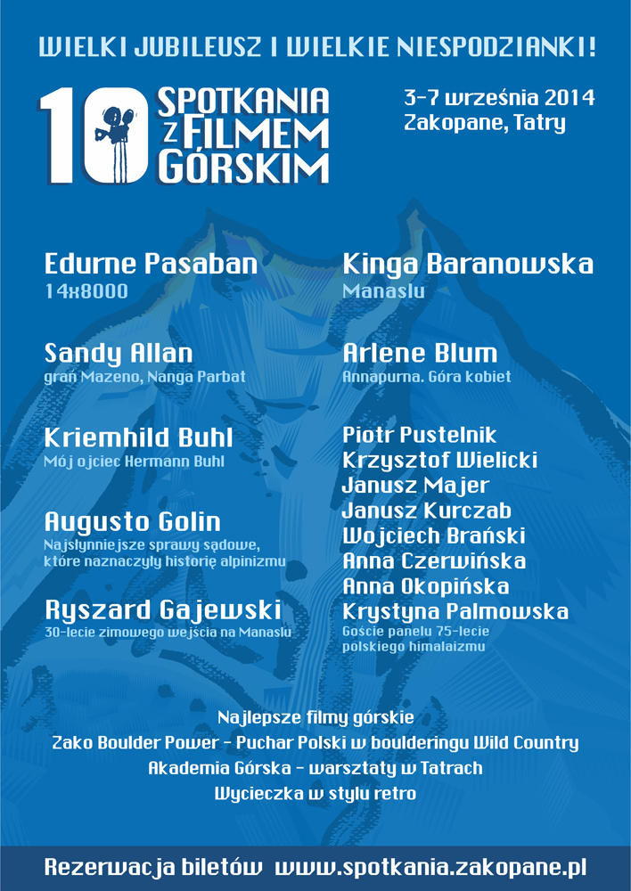 W dniach 3-7 września do Zakopanego zawitają setki miłośników gór. Okazją będą jubileuszowe, 10. Spotkania z Filmem Górskim – jeden z najbardziej znanych festiwali górskich w Polsce. Swoją obecność potwierdzili wyjątkowi goście, w tym Edurne Pasaban – pierwsza kobieta, która zdobyła Koronę Himalajów, oraz najlepsi polscy himalaiści zarówno młodego pokolenia, jak i złotej epoki polskiego himalaizmu.