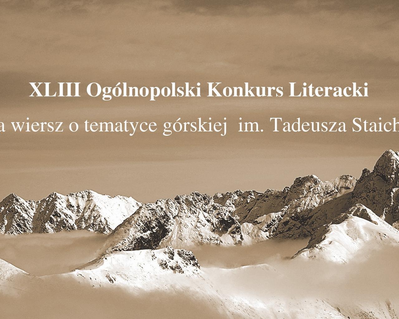 XLIII Ogólnopolski Konkurs Literacki na wiersz o tematyce górskiej im. Tadeusza Staicha