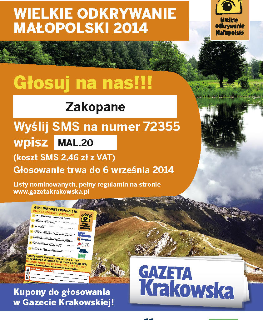 Szczegóły i regulamin plebiscytu na stronie www.gazetakrakowska.pl http://www.gazetakrakowska.pl/artykul/3518343,wielkie-odkrywanie-malopolski-rusza-glosowanie-w-plebiscycie,id,t.html