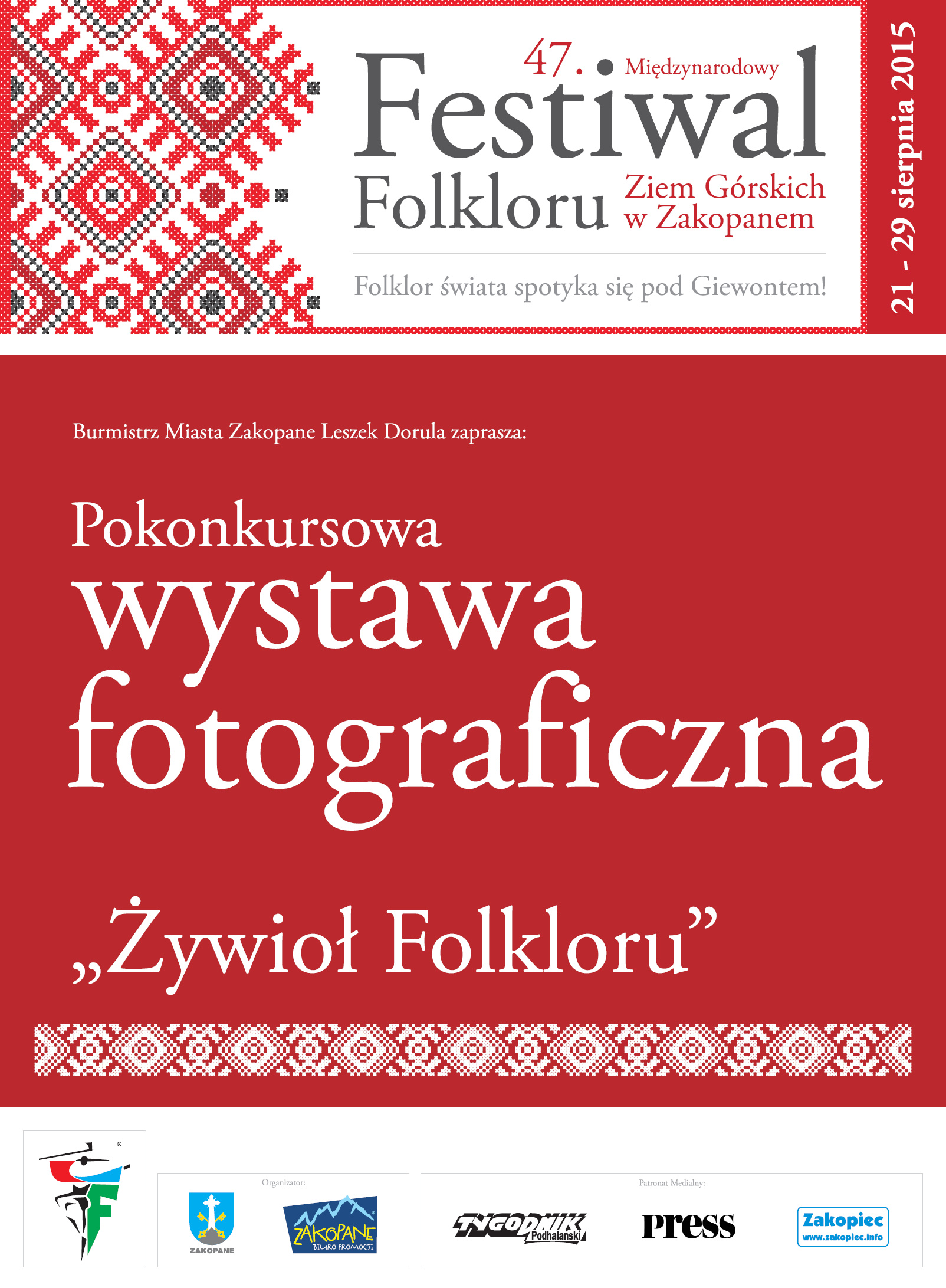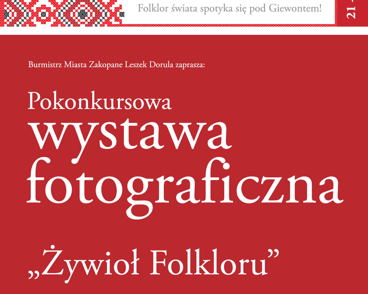 Wystawa „Żywioł folkloru” prezentuje prace laureatów pierwszej edycji konkursu fotograficznego wykonane podczas 46. Międzynarodowego Festiwalu Folkloru Ziem Górskich w Zakopanem, a także pozakonkursowe fotografie autorstwa laureatki I nagrody w kategorii fotoreporterów Małgorzaty Faleckiej, wykonane podczas kilku ostatnich edycji Festiwalu.