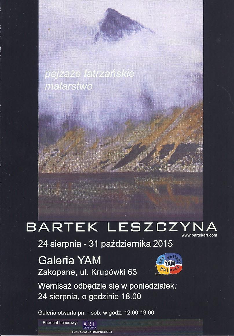 Galeria YAM zaprasza na wystawę malarstwa Bartka Leszczyny, która odbędzie się w dniach 24 sierpnia – 31 października w ww. Galerii przy ul. Krupówki 63. Wernisaż wystawy odbędzie się w poniedziałek 24 sierpnia o godz. 18.00.