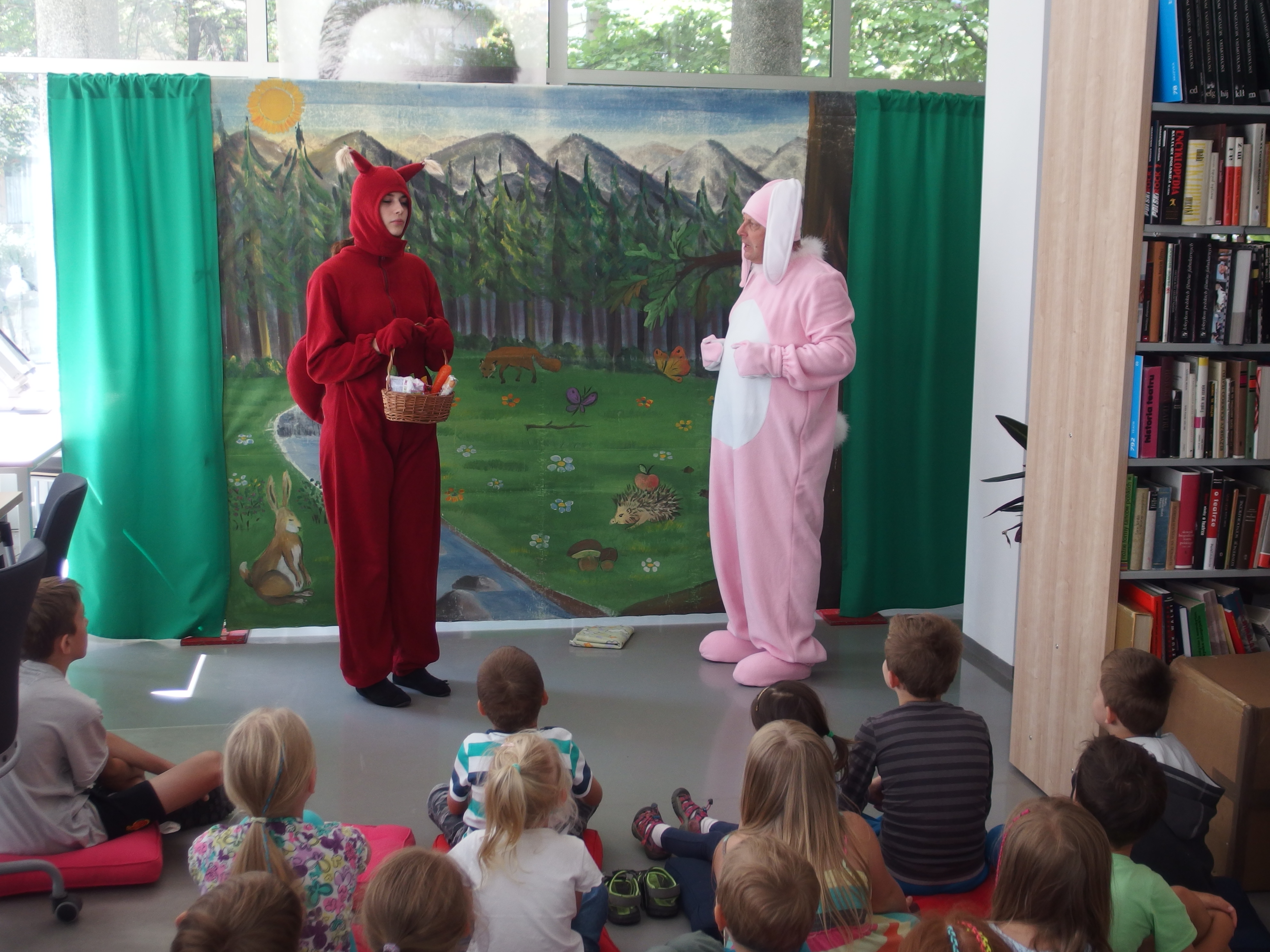 W czwartek 20 sierpnia br., w Miejskiej Bibliotece Publicznej im. S. Żeromskiego, w ramach zajęć wakacyjnych dla najmłodszych, nasi mali czytelnicy mieli okazję obejrzeć przedstawienie teatralne pt.„Przygoda Zająca Poziomki” w wykonaniu Teatru Bajdurka oraz uczestniczyć w Pikniku Ekologicznym.