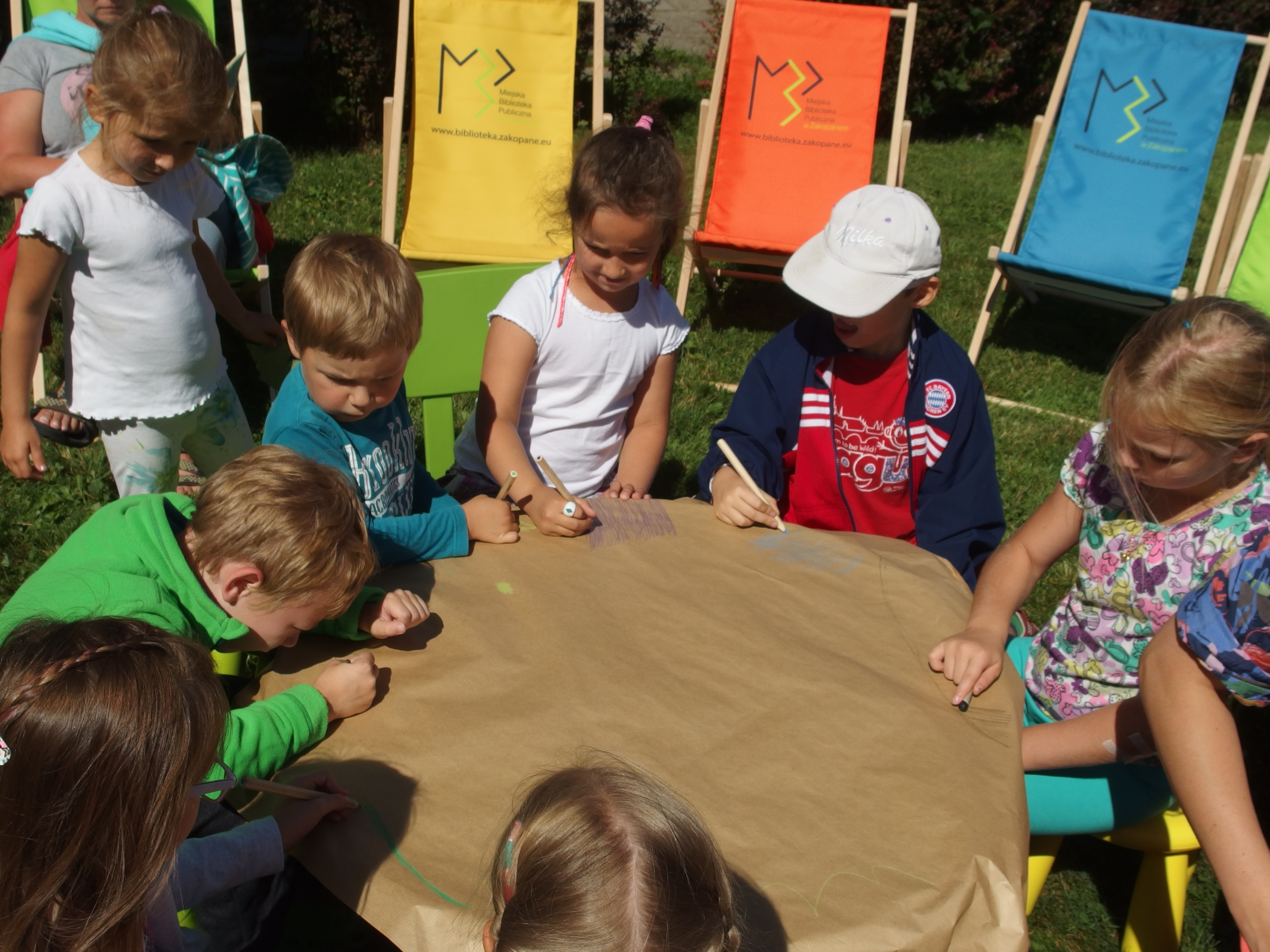 Nie zabrakło także czytania na trawie, rysowania i dobrej zabawy. Uczestnicy pikniku zrobili sobie zdjęcie z flagą informacyjno-edukacyjnej kampanii społecznej „Nauczymy Was szacunku” poświęconej niedźwiedziom Tatrzańskiego Parku Narodowego. Mali czytelnicy biblioteki już wiedzą, że natura potrzebuje szacunku. Postępując zgodnie z zasadami panującymi w TPN, można cieszyć się pięknym otoczeniem, nie szkodząc przyrodzie.