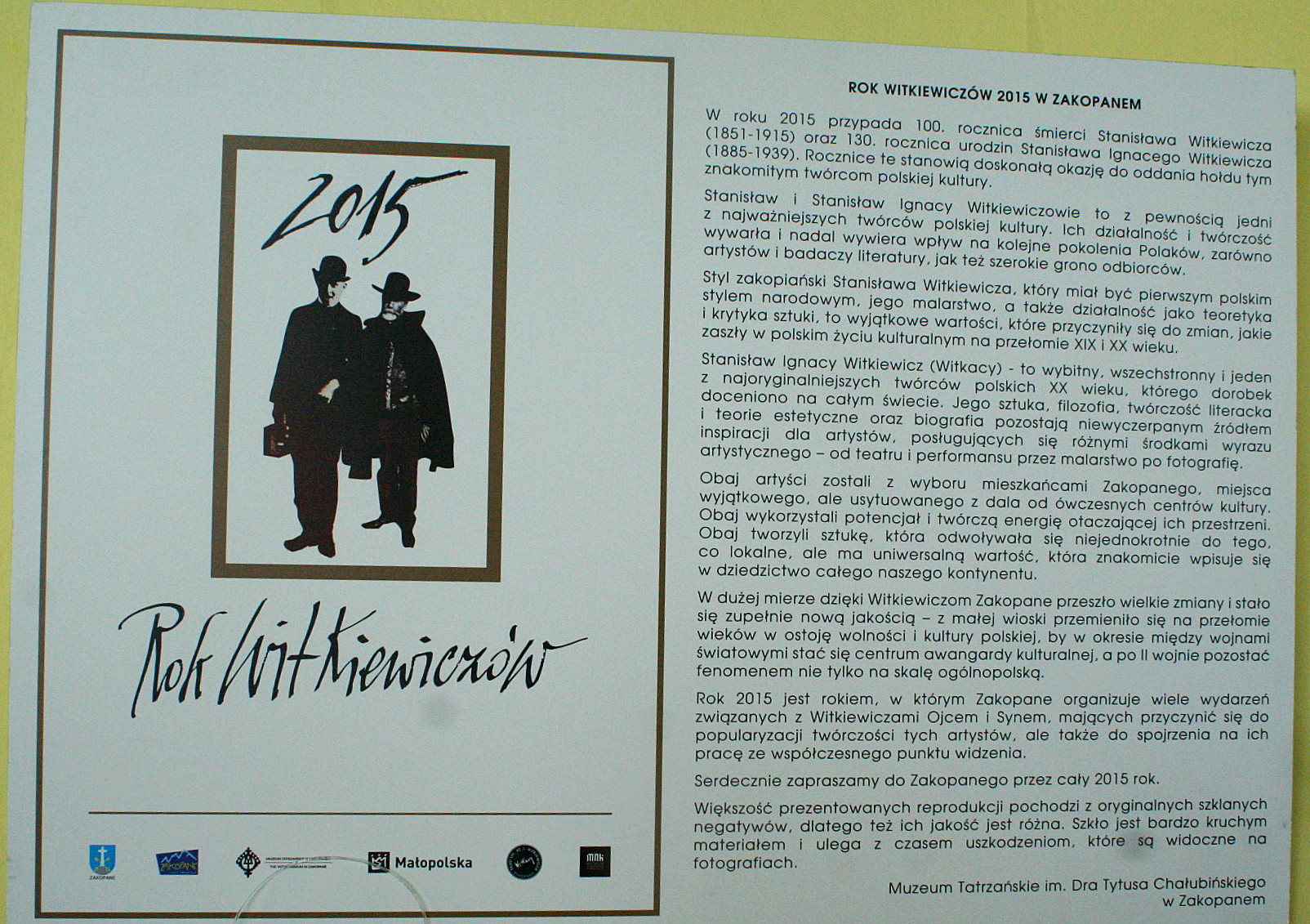Wystawa przygotowana z okazji Roku Witkiewiczów, była do tej pory pokazywana w Senacie Rzeczypospolitej Polskiej. Obecnie, dzięki nawiązaniu współpracy ze Stowarzyszeniem Tatranský Okrášľovací Spolok, zdjęcia Witkiewiczów będą mogli oglądać turyści, którzy zdecydują się wybrać na Łomnicę na Słowacji.