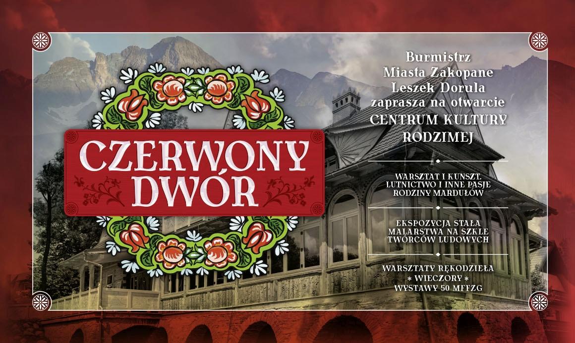Czerwony Dwór – historyczne miejsce w zabytkowej willi przy ul. Kasprusie 27, powraca na kulturalną mapę Zakopanego w zupełnie nowej odsłonie, jako Centrum Kultury Rodzimej. Ta piękna, starannie odnowiona willa z 1902 roku, w której mieszkali i bywali Artur Rubinstein, Karol Szymanowski, Stanisław Witkiewicz, Witkacy, Helena Modrzejewska czy Stefan Żeromski, odegrała znaczącą rolę w historii Polski i Zakopanego. Zapraszając tutaj mamy nadzieję, że towarzyszyć będą Państwu duch i atmosfera dawnego Zakopanego. Oficjalne otwarcie odbędzie się 16 sierpnia, a od 17 sierpnia w Czerwonym Dworze dostępne będą dla zwiedzających wystawy: