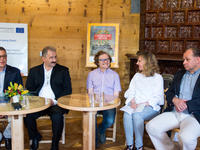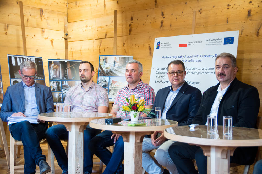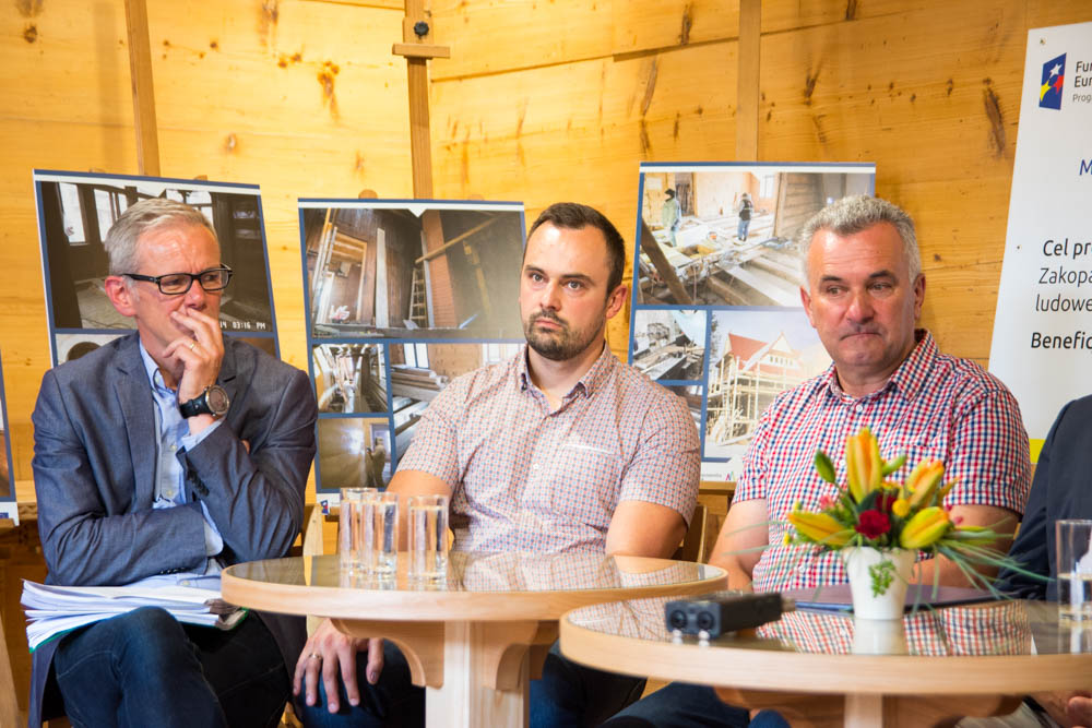 W konferencji prasowej udział wzięli także: Zastępca Burmistrza Wiktor Łukaszczyk, Dyrektor Zakopiańskiego Centrum Kultury Beata Majcher, Naczelnik Wydziału Kultury Joanna Staszak, Naczelnik Wydziału Strategii i Rozwoju Wojciech Stankiewicz, autor programu konserwatorskiego dr hab. Zbigniew Moździerz, projektant mgr inż. arch. Andrzej Chowaniec Rybka, wykonawcy Wojciech Pawlikowski i Wojciech Pawlikowski syn, reprezentujący inwestora główny specjalista Andrzej Haładyna oraz Miejski Konserwator Zabytków Natalia Skiepko.