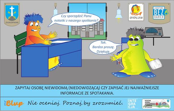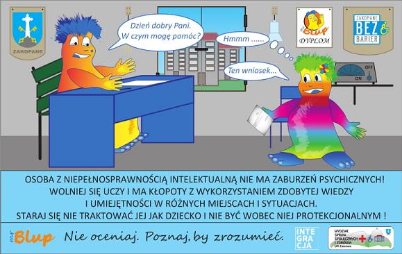 Wydział Spraw Społecznych i Zdrowia wraz z Biurem Komunikacji Społecznej i Promocji Urzędu Miasta Zakopane przygotował Projekt „Savoir-vivre wobec klientów z niepełnosprawnościami”. Projekt powstaje w ramach Kampanii Świadomościowej „Mr Blup. Nie oceniaj. Poznaj, by zrozumieć.” Partnerem honorowym projektu jest Fundacja Integracja.
