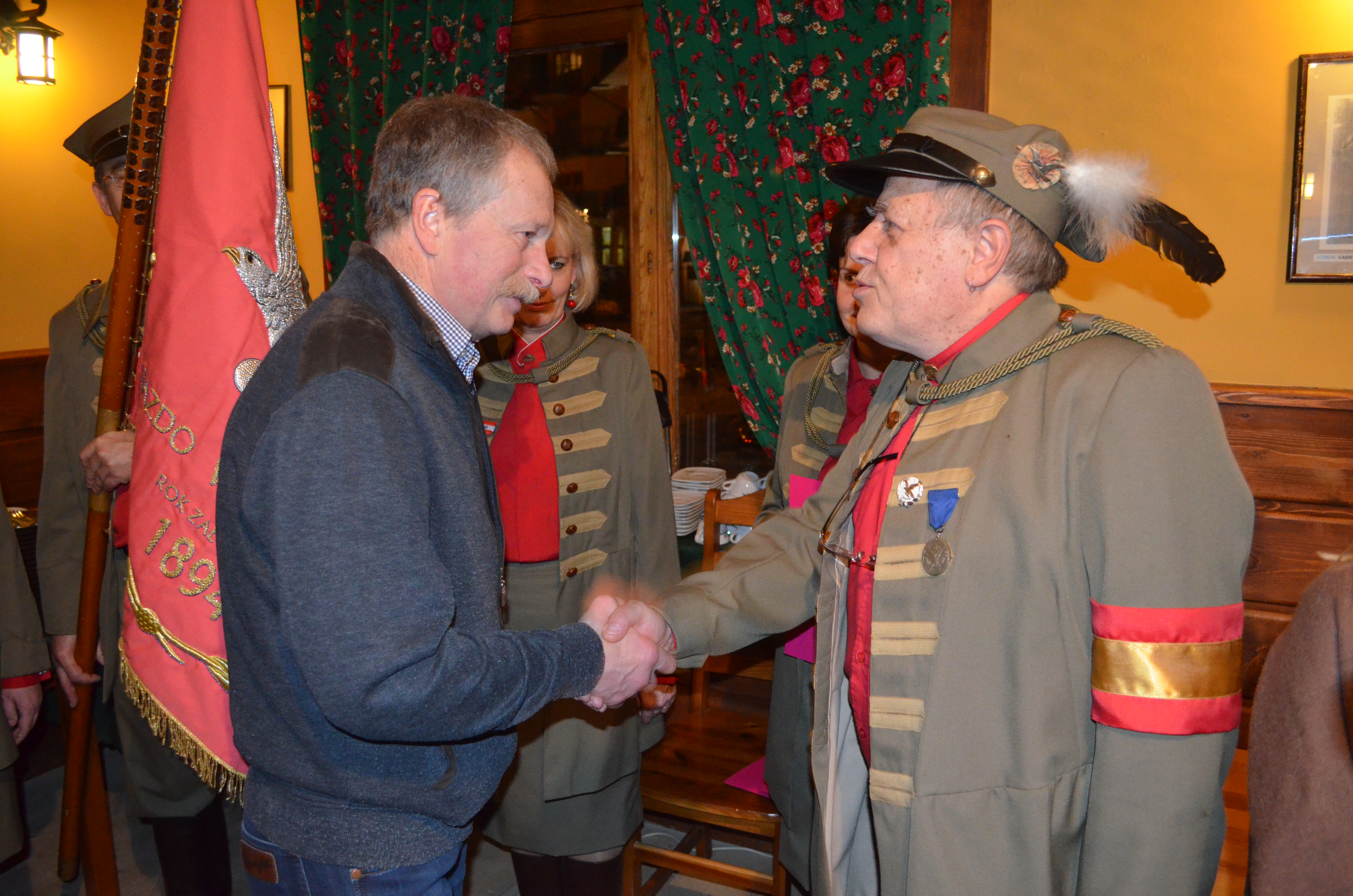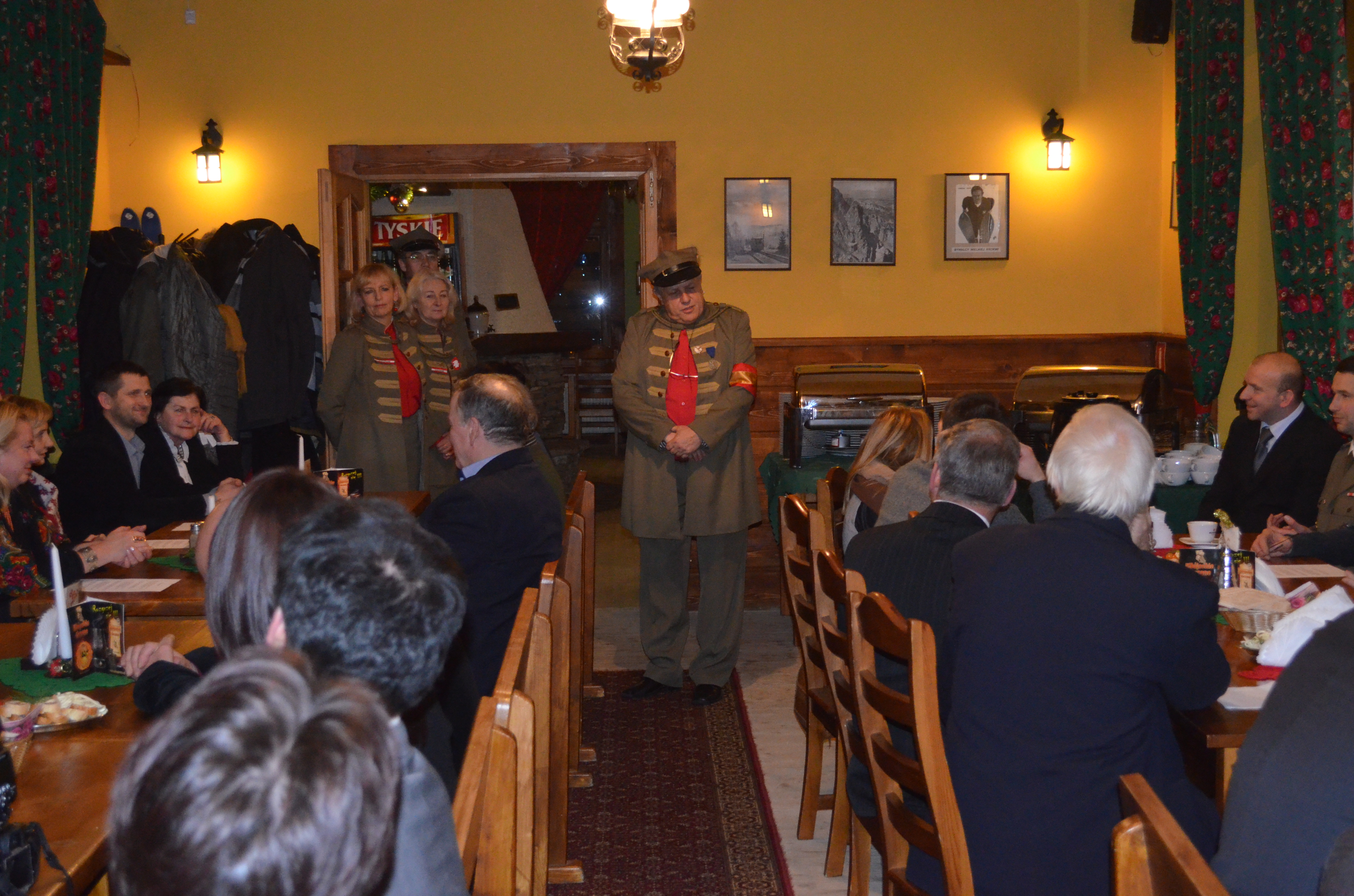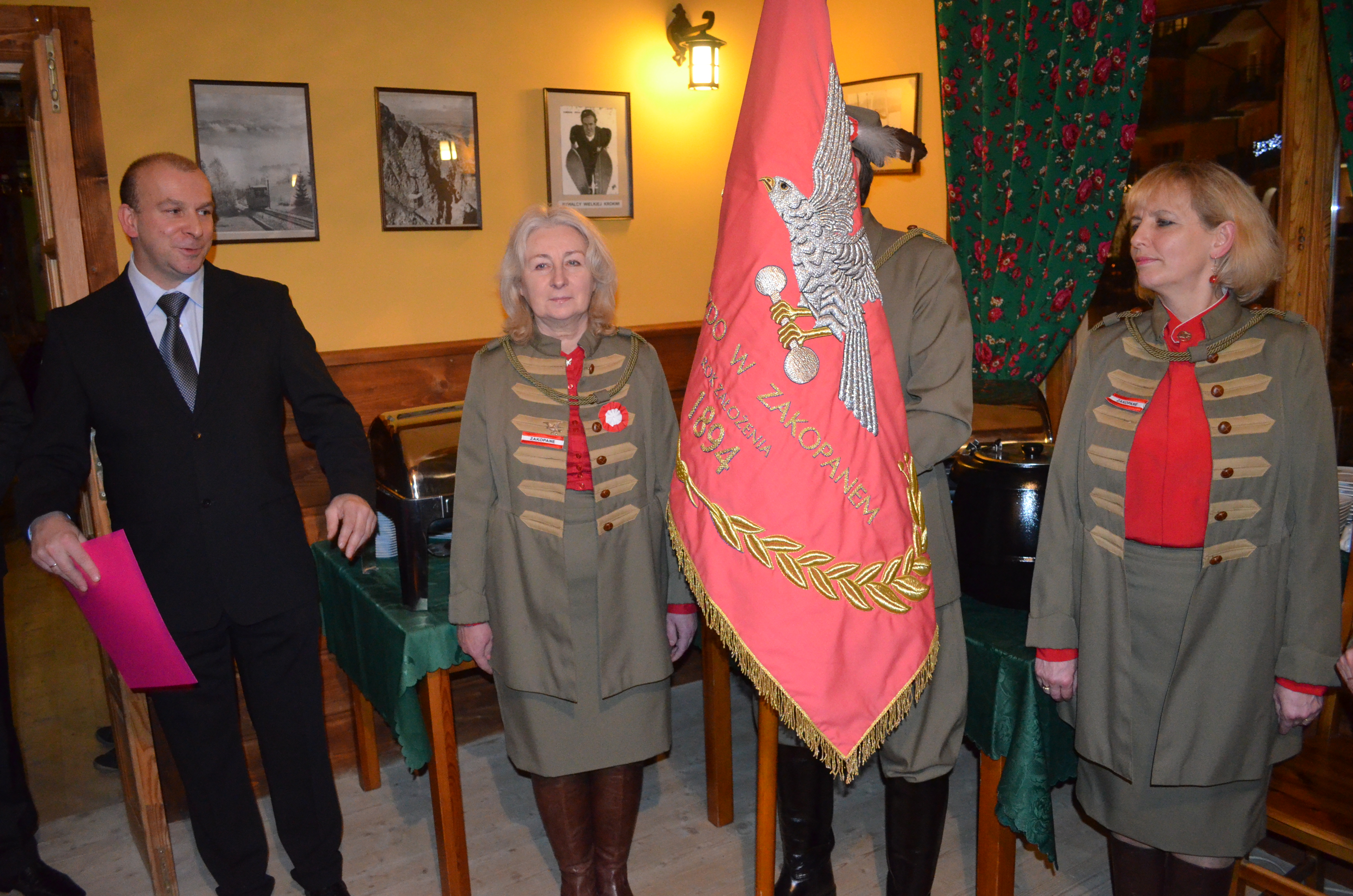 Członkowie oraz przyjaciele Towarzystwa Gimnastycznego „Sokół” wzięli udział w spotkaniu wigilijnym, które było również okazją do złożenia uroczystego ślubowania przez nowych członków organizacji. Życzenia wszystkim obecnym złożyli również zastępcy burmistrza Zakopanego Wiktor Łukaszczyk i Agnieszka Nowak-Gąsienica.
