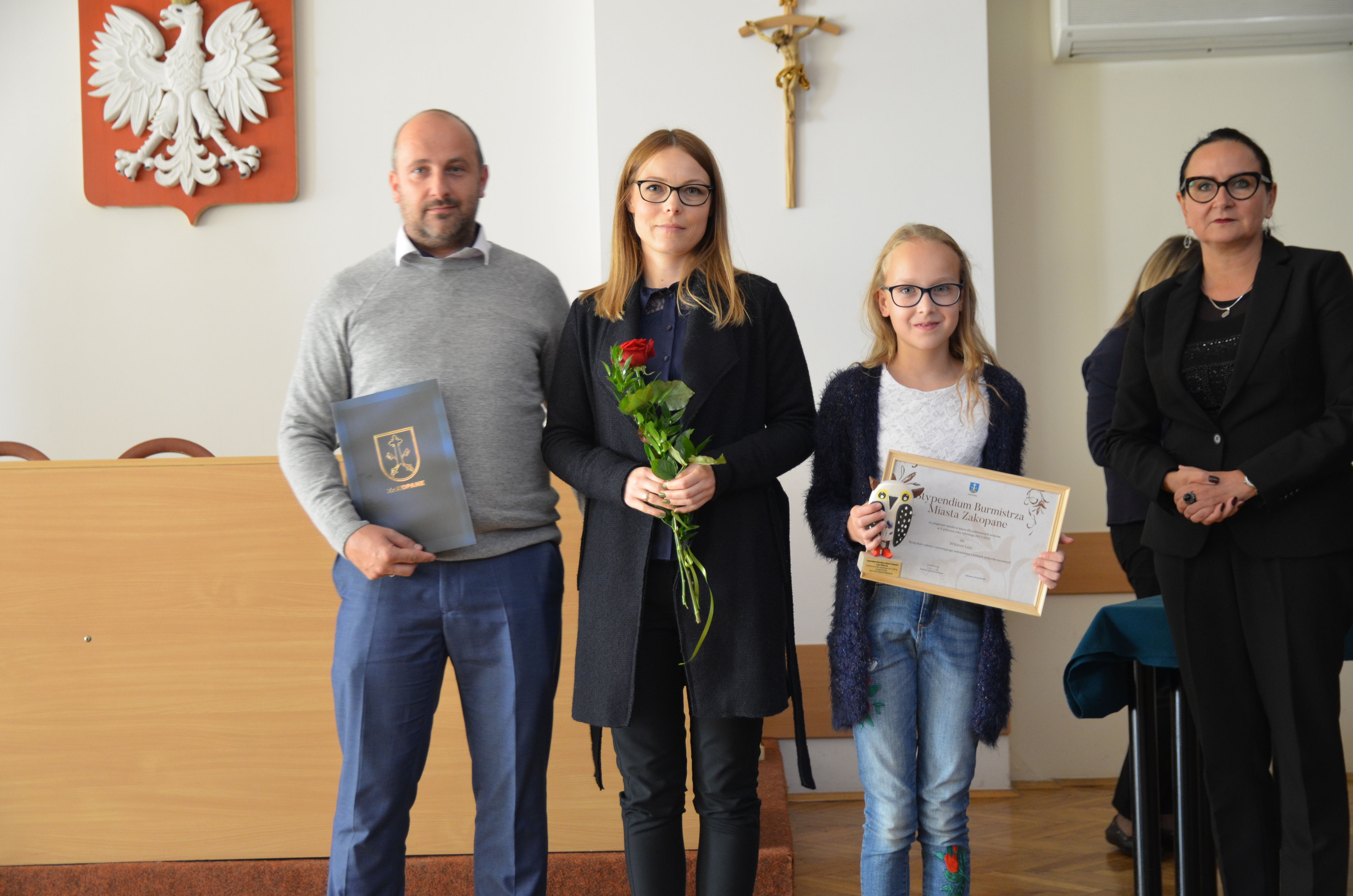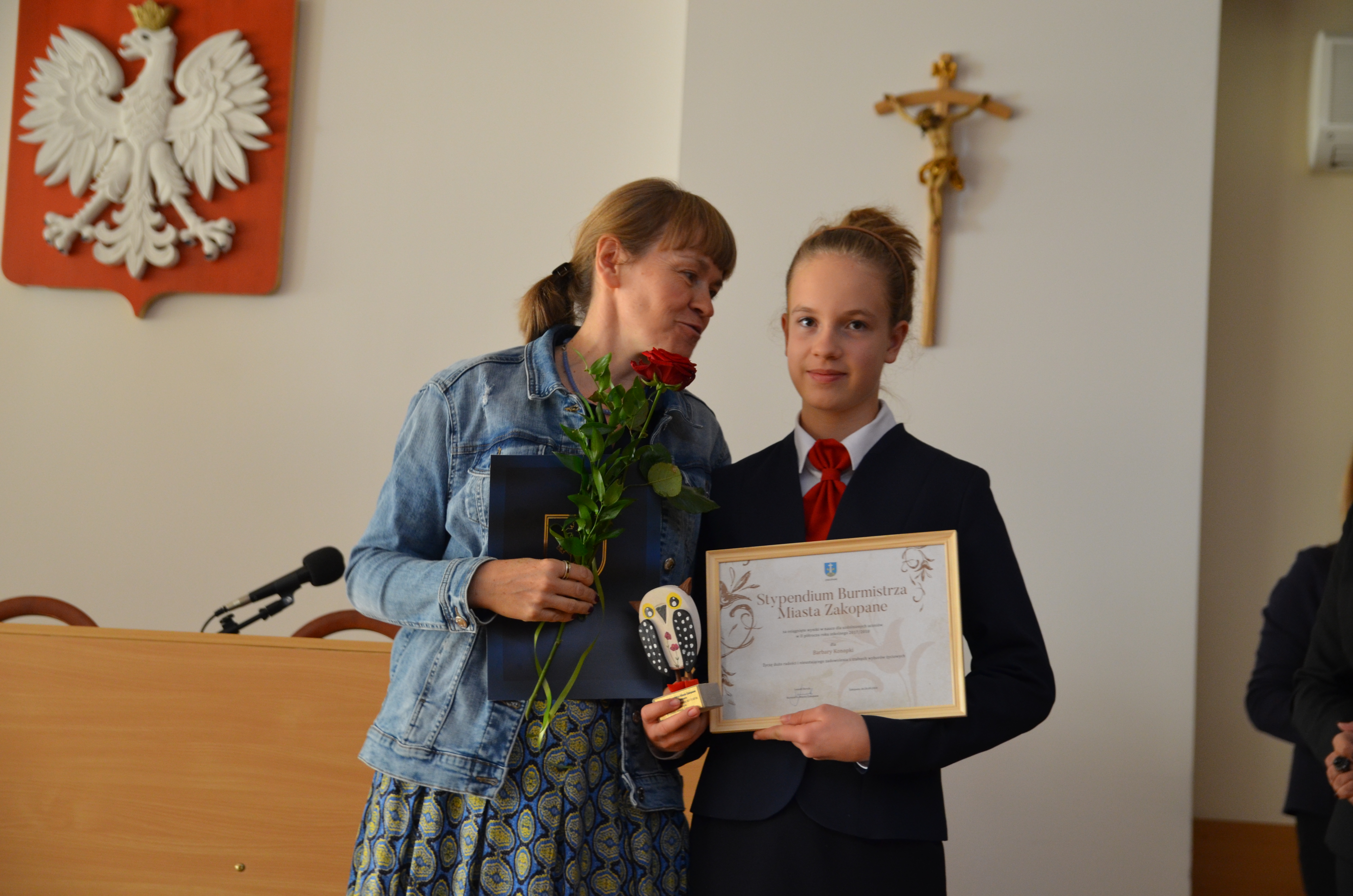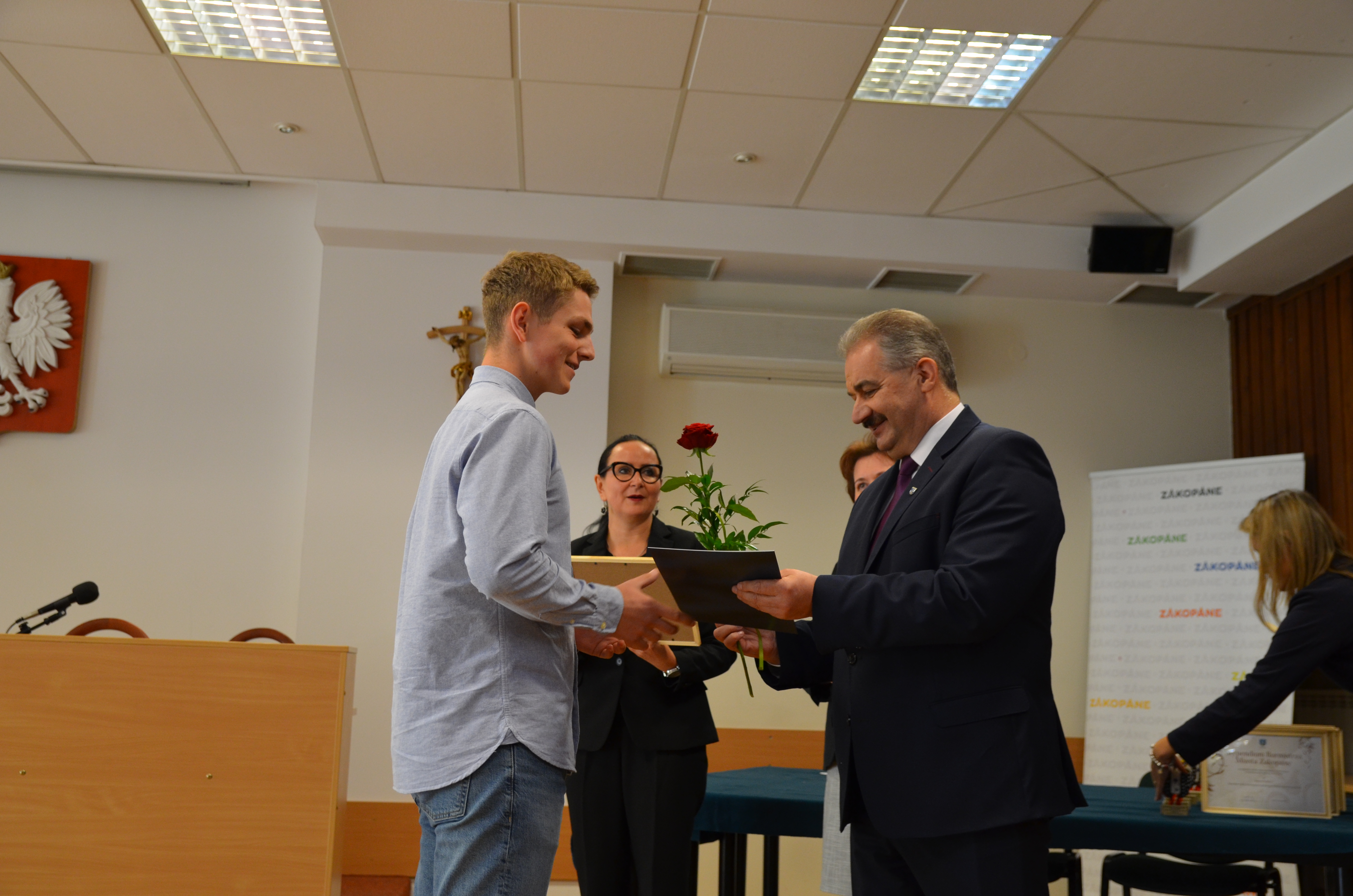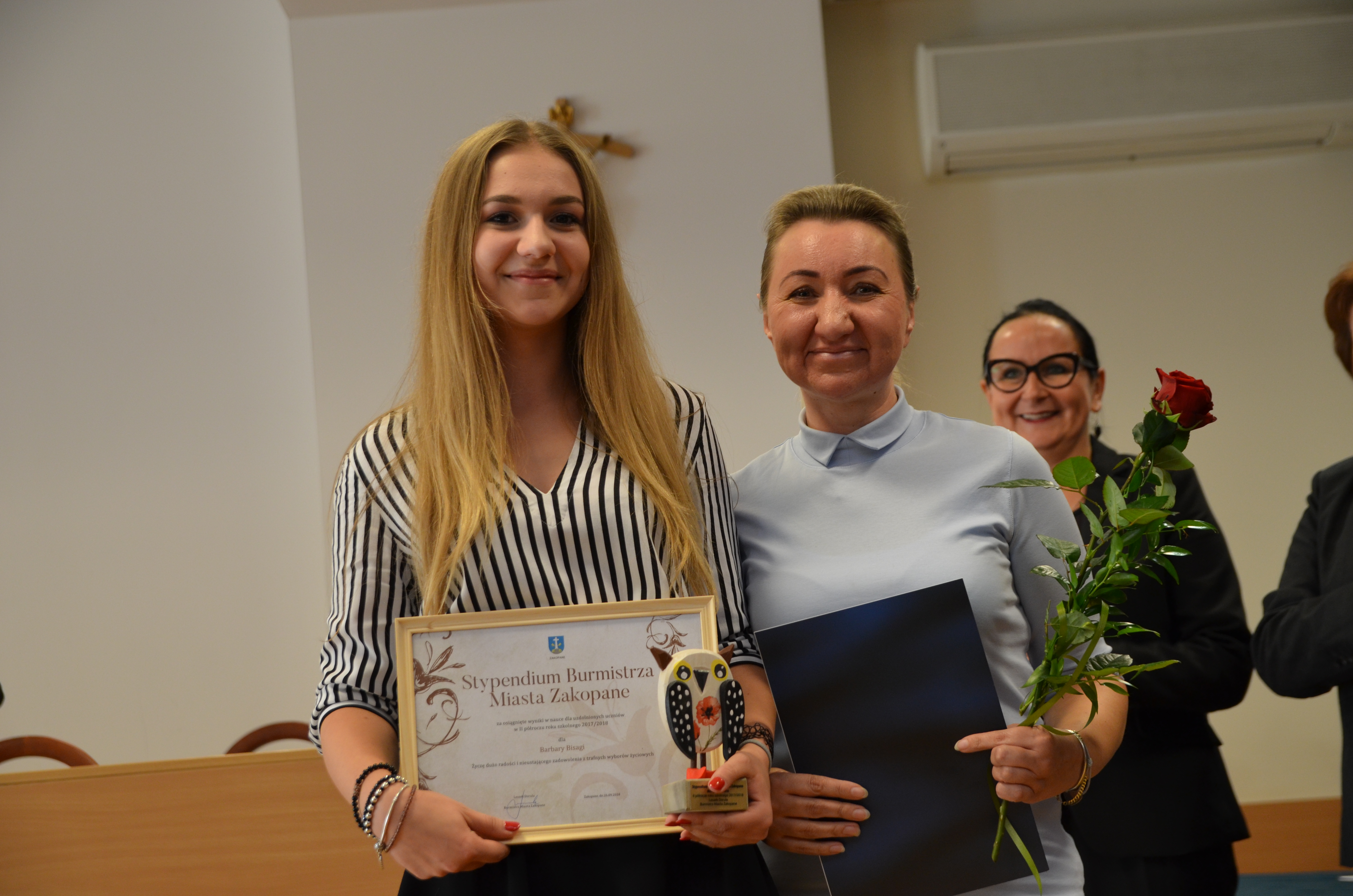 W dniu wczorajszym Burmistrz Miasta Zakopane Leszek Dorula wraz z wiceburmistrz Agnieszką Nowak-Gąsienicą i Dyrektor Nowotarskiej Delegatury Kuratorium Oświaty Bożeną Bryl wręczyli stypendia za wyniki w nauce i inne osiągnięcia za II półrocze roku szkolnego 2017/2018 wyróżniającym się uczniom szkół podstawowych i gimnazjów.