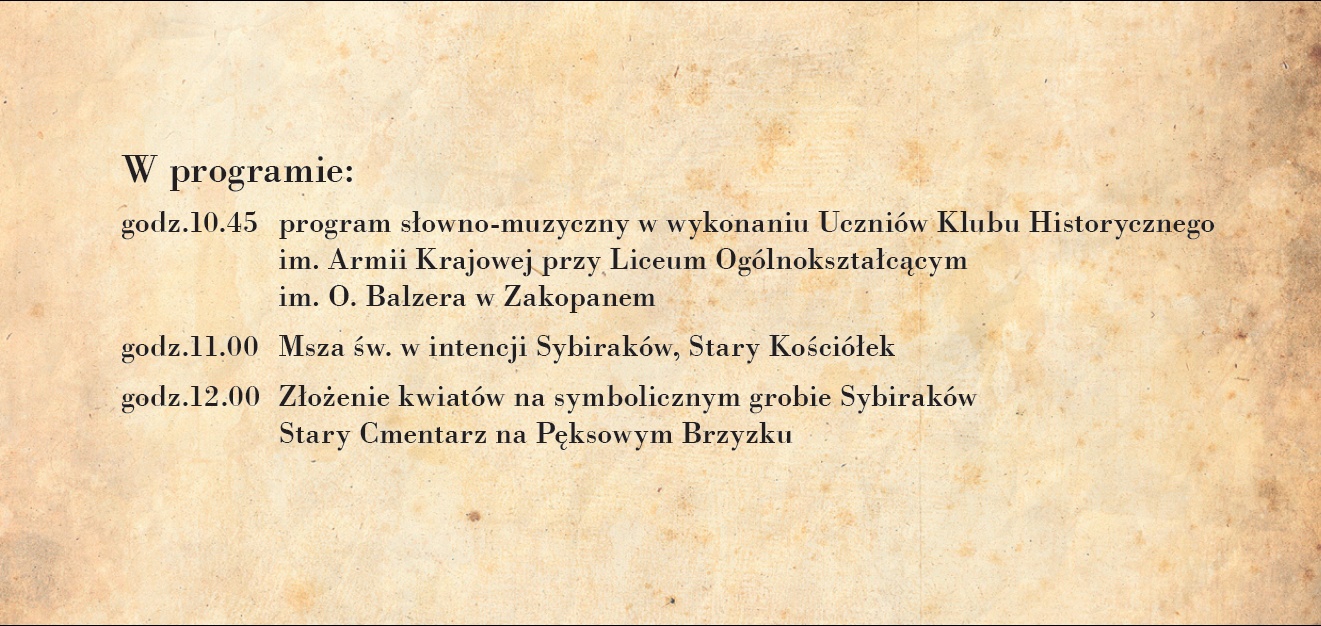 11.00 - Msza św. w intencji Sybiraków w Kaplicy na Starym Cmentarzu przy ulicy Kościeliskiej
