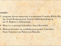 10.45 - Program słowno-muzyczny w wykonaniu Uczniów Klubu Historycznego im. Armii Krajowej przy Liceum Ogólnokształcącym im. O. Balzera w Zakopanem