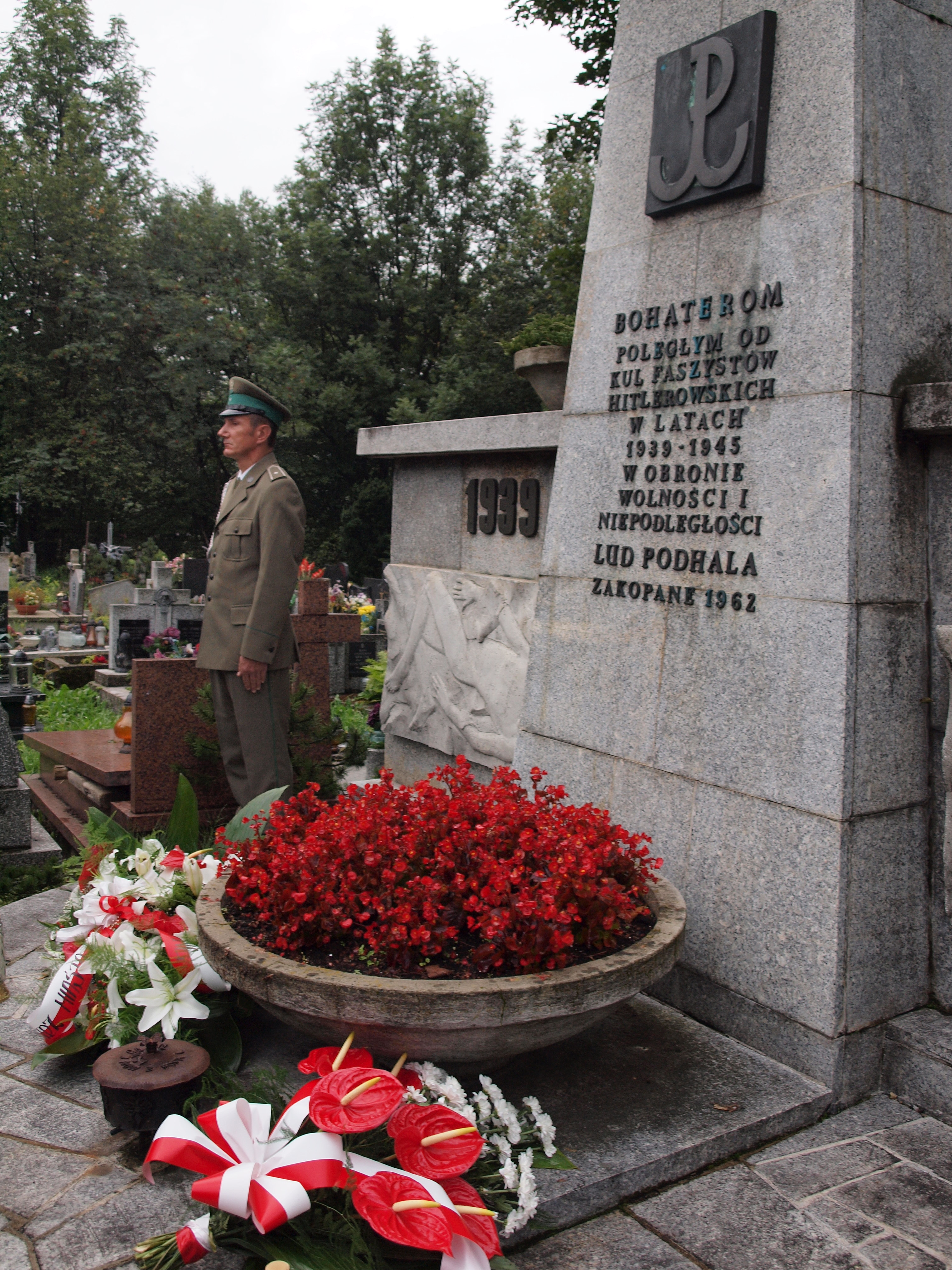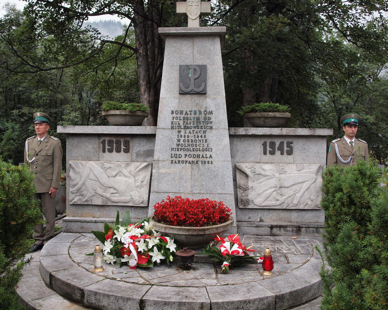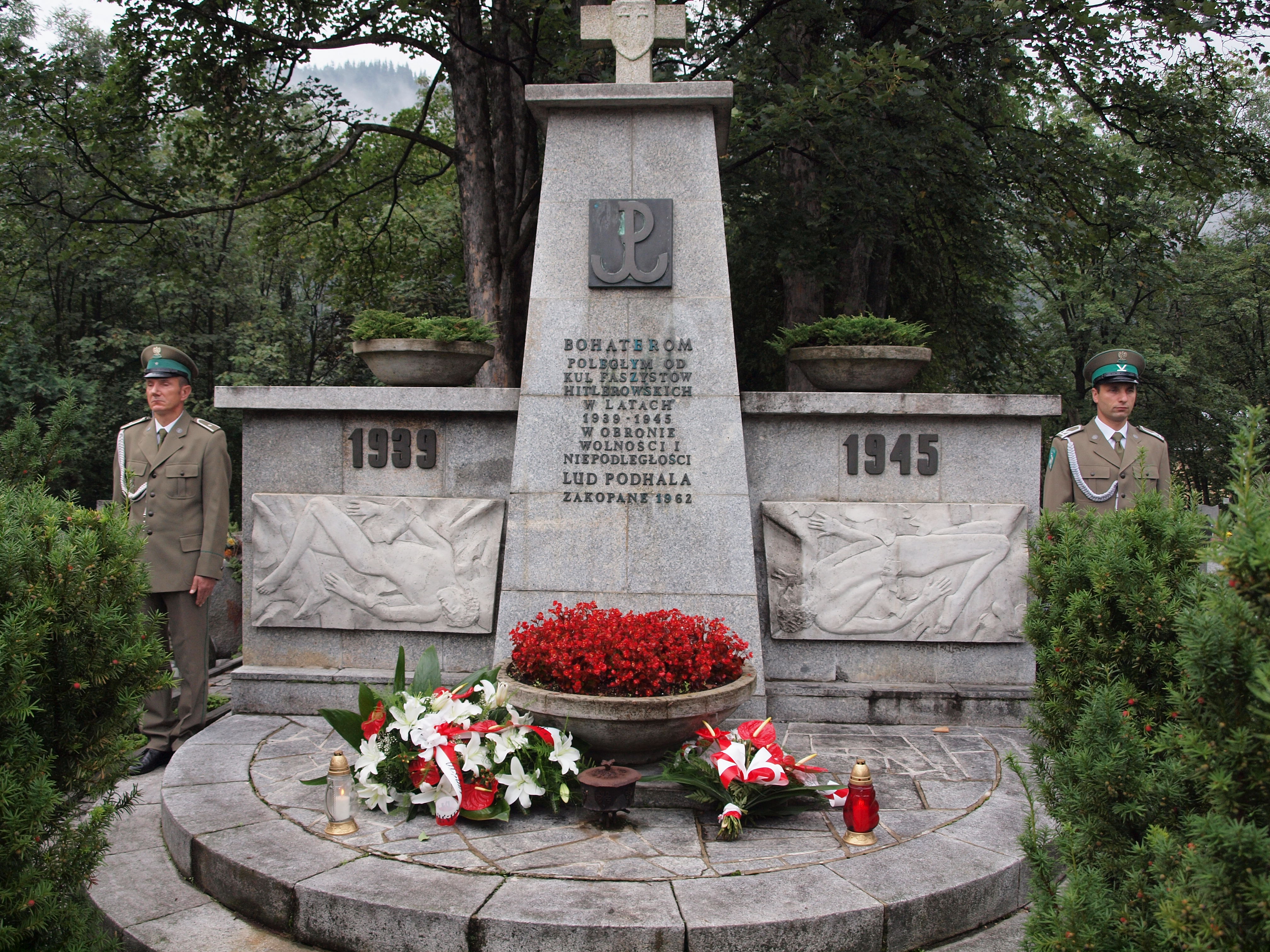 Delegacje władz Zakopanego i powiatu tatrzańskiego złożyły kwiaty pod pomnikiem bohaterów poległych podczas II wojny światowej.