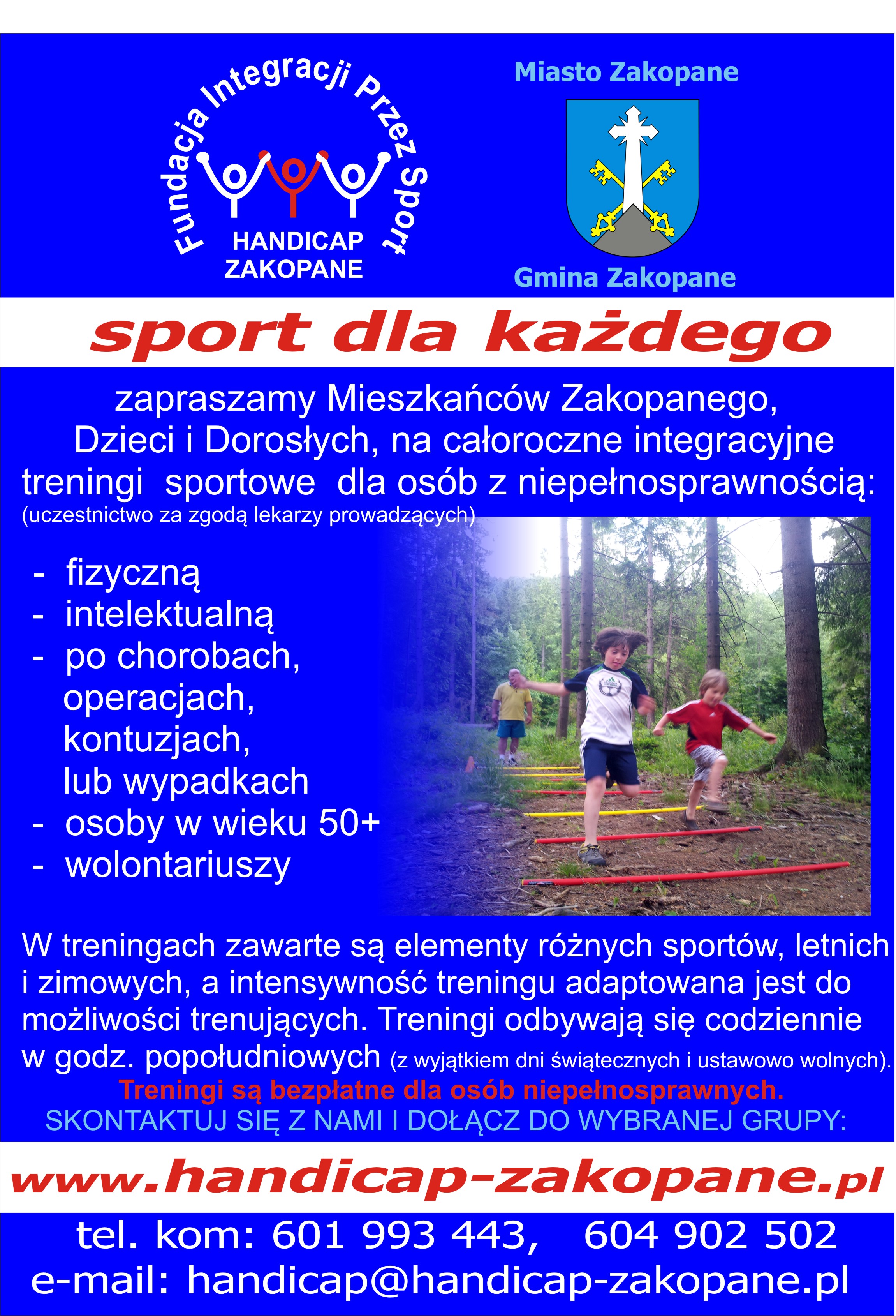 Szczegóły i kontakt na naszej stronie internetowej www.handicap-zakopane.pl oraz na plakacie.
