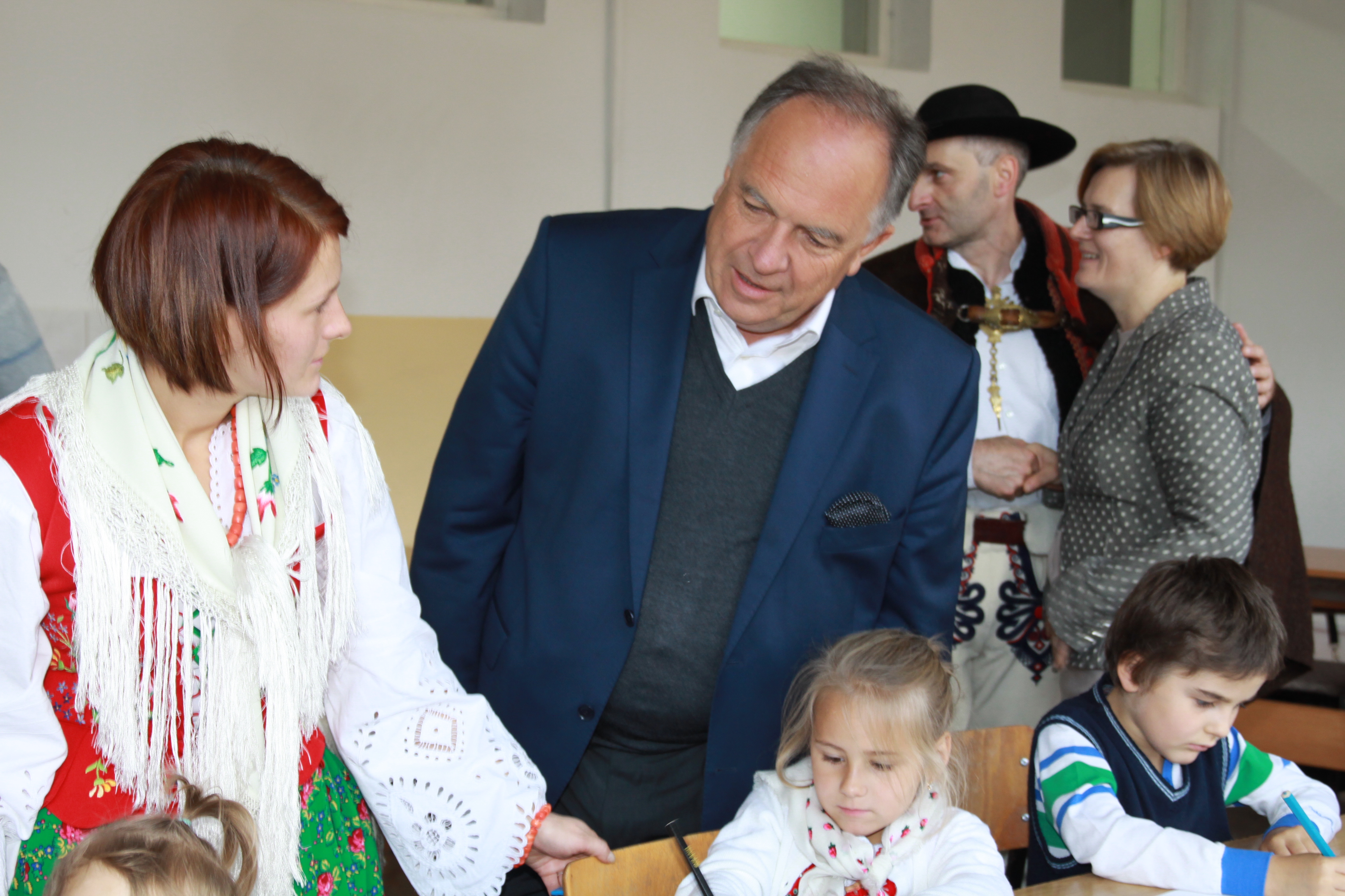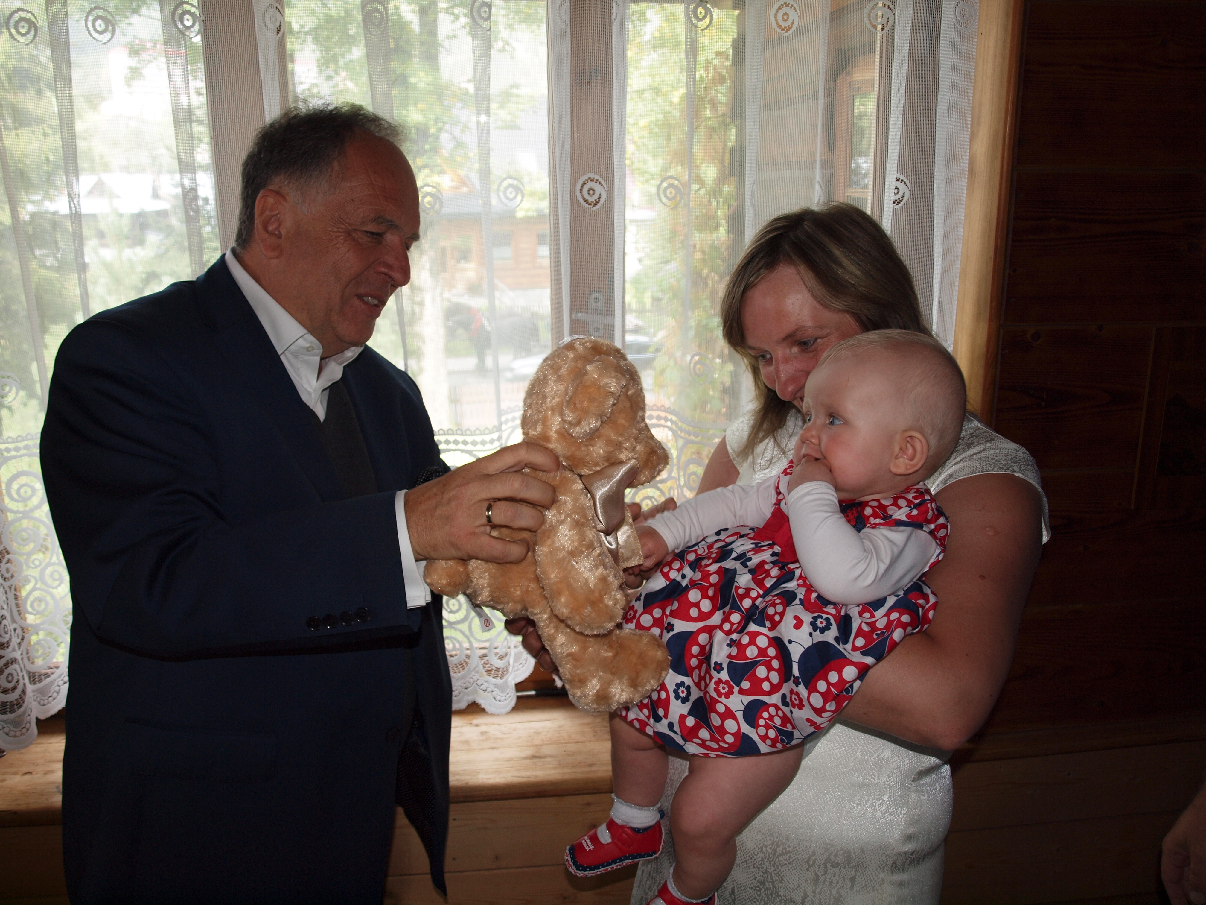 Burmistrz Miasta Zakopane Janusz Majcher z zastępcą przewodniczącego Rady Miasta Leszkiem Dorulą odwiedzili najmłodszą mieszkankę ul. Kościeliskiej - półroczną Paulinkę Kubin.