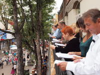 Na balkonie "Bazaru Polskiego" odbyło się publiczne czytanie „Trylogii” Henryka Sienkiewicza.