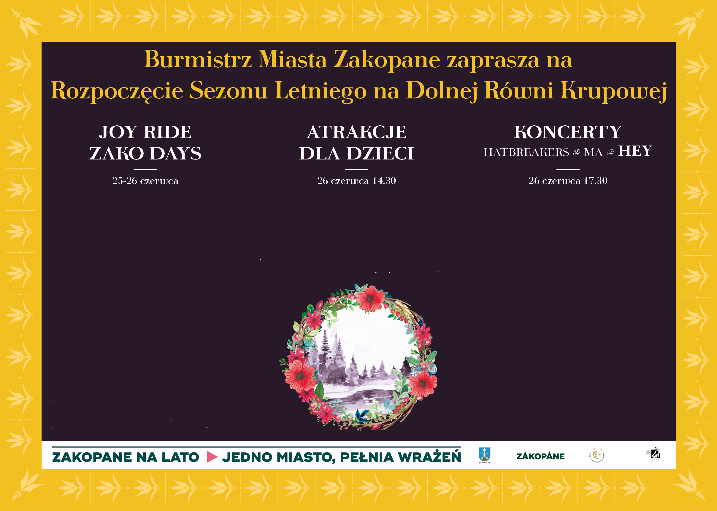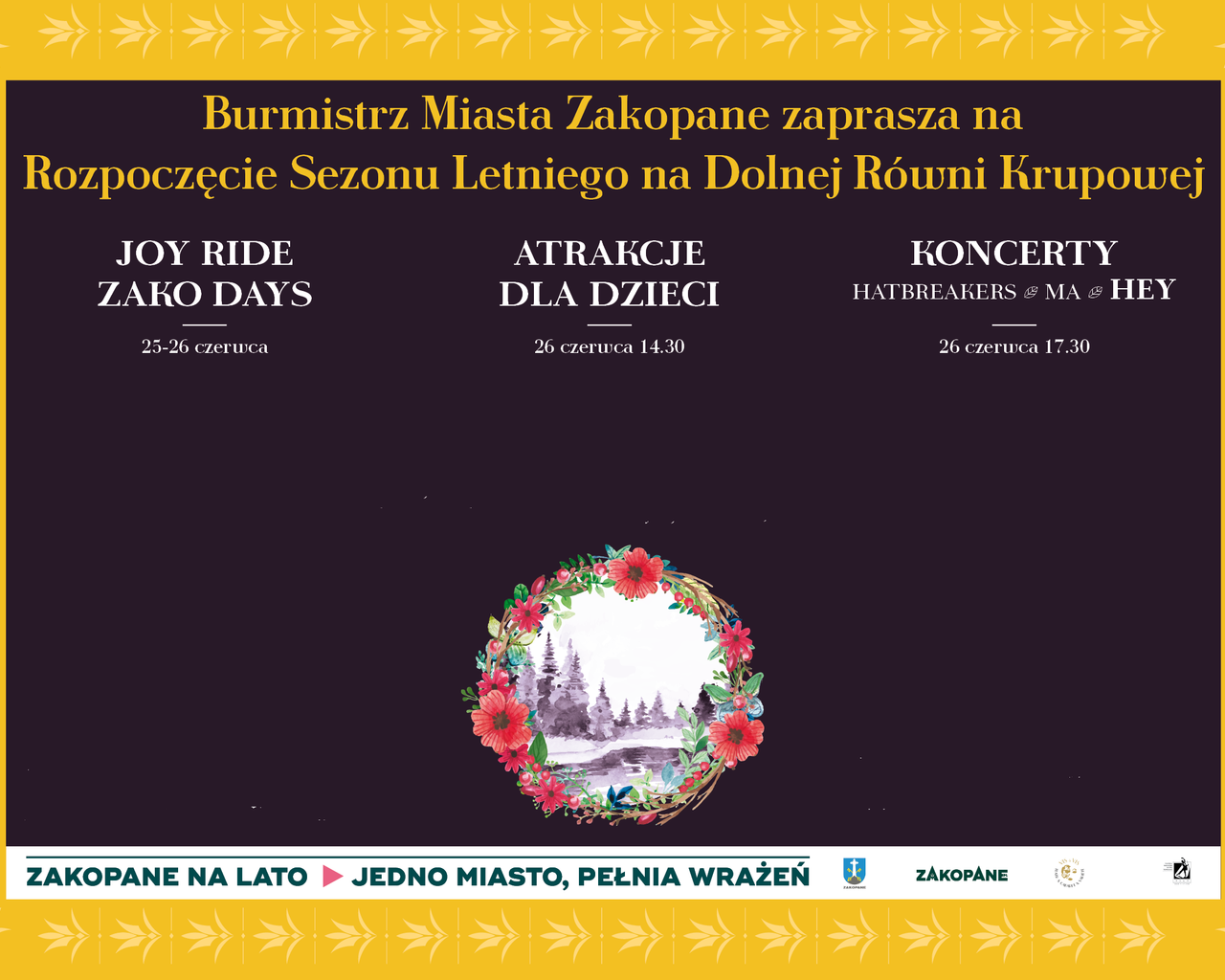 Wraz z inauguracją sezonu letniego startuje także Hej Fest, czyli cykl 18 koncertów, które największe gwiazdy polskiej sceny muzycznej zagrają na szczycie Gubałówki i na Równi Krupowej. Pierwszą z nich będzie rockowy zespół Hej. Poprzedzą go występy dwóch zespołów Hatbreakers i Ma, rywalizujących w ramach Festiwalu Supportów. Zapraszamy 26 czerwca o godz. 17.30. Współorganizatorem wydarzenia jest miasto Zakopane wraz ze Spółką PKL oraz Agencją Eventową ESPECTO. więcej...