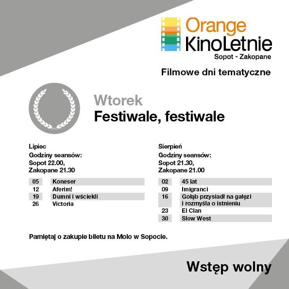 We wtorki w repertuarze Orange Kino Letnie pod hasłem „Festiwale, festiwale” zaprezentujemy filmy, które podbiły największe światowe imprezy filmowe - od Cannes przez Wenecję aż po Sundance.