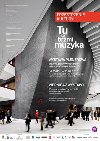 Prawie 8000 osób dziennie słucha muzyki w tych eleganckich i akustycznie doskonałych warunkach ośmiu sal koncertowych, powstałych w Polsce w latach 2011-2016. Ich oblicza, w niebywałym skrócie, ukazuje nasza wystawa. Nie ma w tym przesady, ale zarówno w miastach dużych, pretendujących do bycia stolicami europejskiej kultury, w miastach średnich, których włodarze uwierzyli w moc muzyki, jak i w szczerym polu, gdzie profesor Krzysztof Penderecki postanowił wybudować Europejskie Centrum Muzyki w Lusławicach, trudno jest znaleźć podczas koncertu wolne miejsca”.