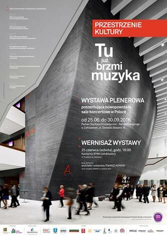 Stowarzyszenie im. M. Karłowicza w Zakopanem zaprasza na wernisaż wystawy plenerowej prezentującej nowo powstałe sale koncertowe w Polsce pt. PRZESTRZENIE KULTURY – tu już brzmi muzyka…, który odbędzie się w sobotę 25 czerwca o godz. 18.00 w kawiarni STRH Cafe&Gallery w Zakopanem, ul. Krupówki 4 a.