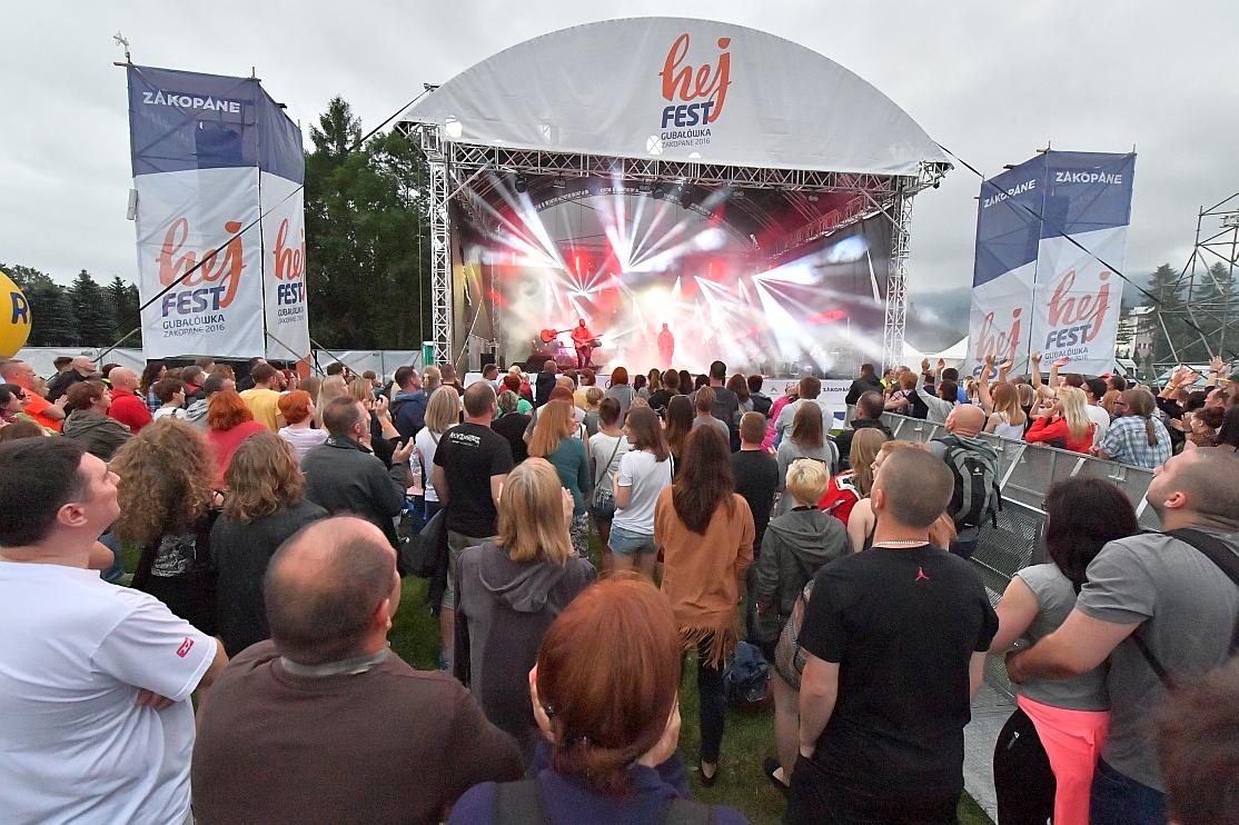 Podczas Hej Fest odbędzie się aż 18 koncertów, na których zagrają największe gwiazdy polskiej sceny muzycznej. Już w niedzielę 3 lipca na Równi Krupowej w Zakopanem wystąpi zespół Kombii. Kolejne zespoły zagrają na Gubałówce, na najwyżej położonej scenie w Polsce z niesamowitym widokiem na Tatry.