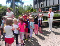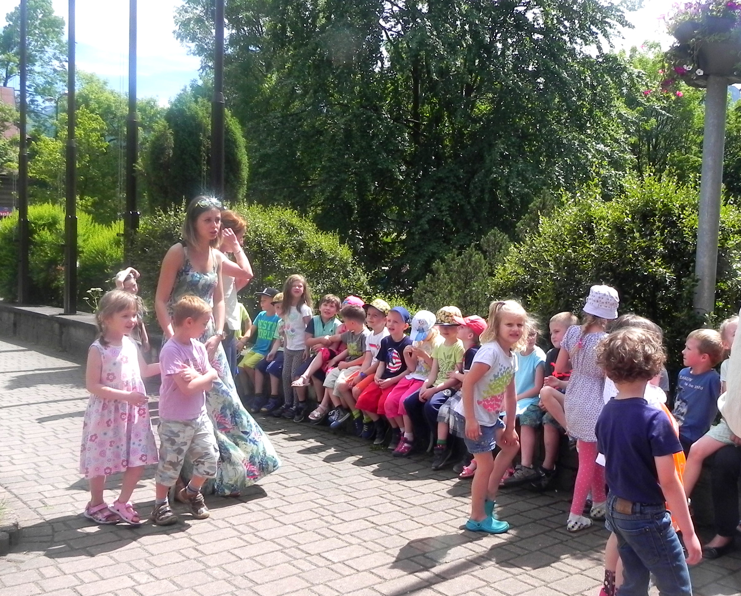 Pogoda dopisała, więc najmłodsi radośnie zaśpiewali letnie piosenki. Słodkie upominki w imieniu Burmistrza Miasta Zakopane oraz życzenia udanych wakacji, złożyła Naczelnik Wydziału Edukacji, Turystyki i Sportu Zofia Kiełpińska.