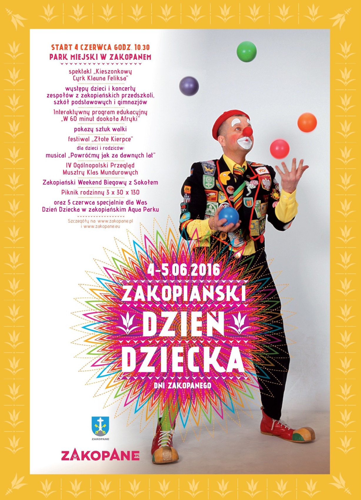 Burmistrz Miasta Zakopane Leszek Dorula zaprasza na Zakopiański Dzień Dziecka - wielki rodzinny piknik, który odbędzie się 4 czerwca w Parku Miejskim im. Marszałka Józefa Piłsudskiego w Zakopanem.