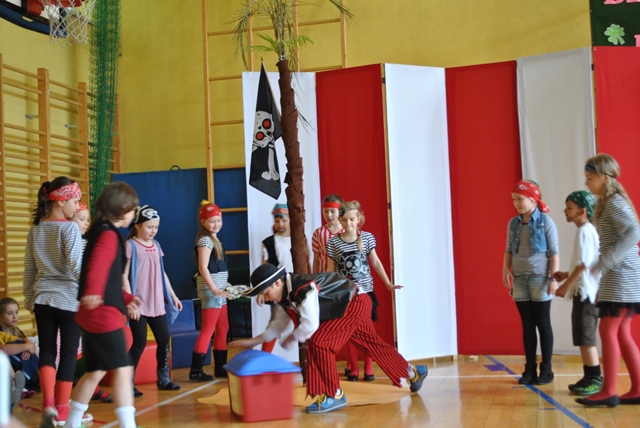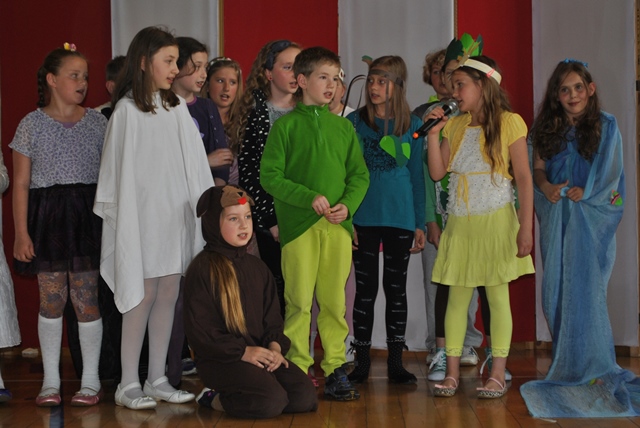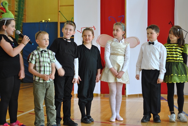 Następnie uczniowie klasy IIa i II c przygotowani przez mgr Ewę Franusik-Schastok oraz mgr Monikę Diurczak poprzez pantomimę pokazali ważne wartości dla każdej rodziny: miłość, zaufanie i życzliwość.Kolejny ciekawy występ w języku angielskim przedstawili uczniowie klasy IIb, przygotowani przez mgr Renatę Żemełko.