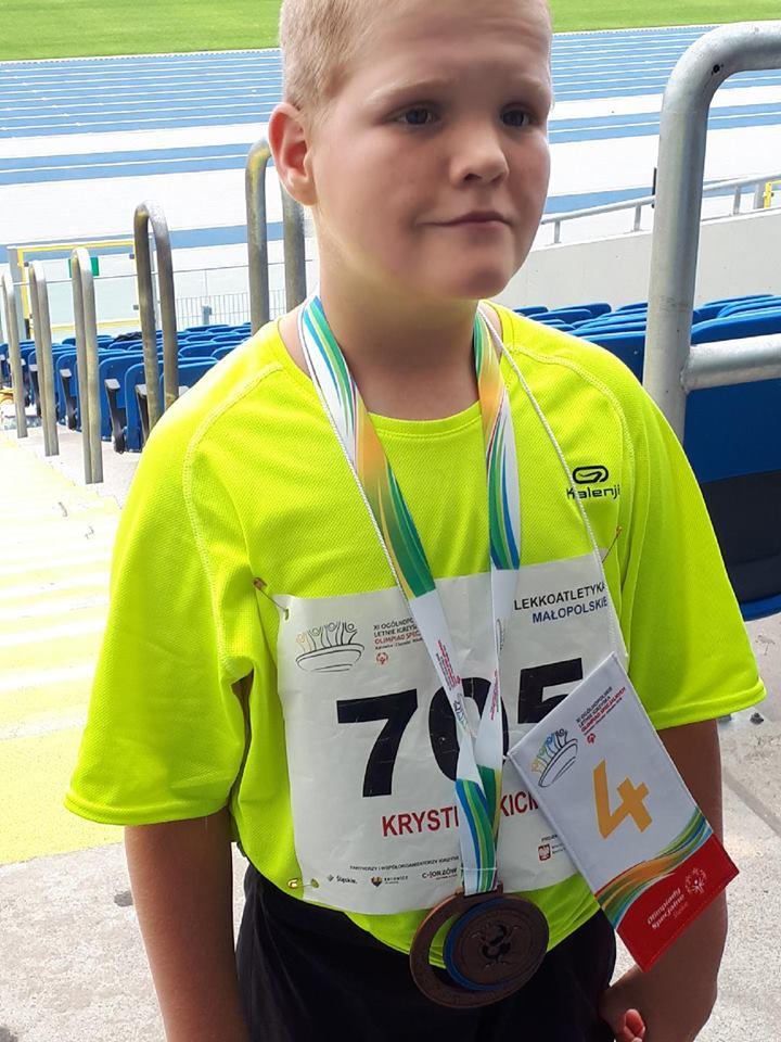 To właśnie w skoku w dal Krystian spełnił swoje marzenia zdobywając brązowy medal. To jego pierwszy medal w ważnych, ogólnopolskich zawodach. W biegu Krystian zajął dobre, 4 miejsce, a do medalu zabrakło niecałej sekundy.