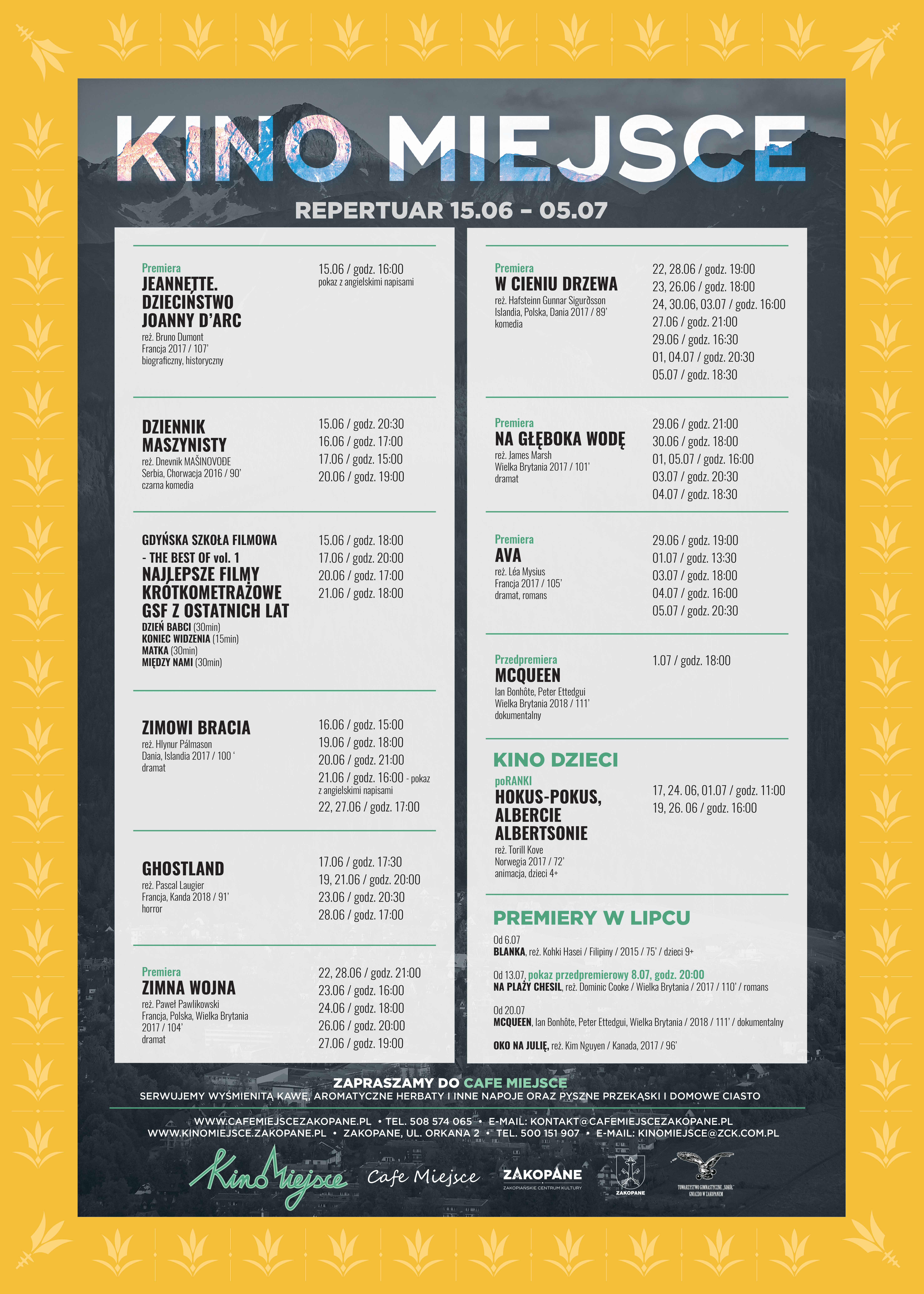 Zapraszamy do pierwszego kina studyjnego w Zakopanem, które wyświetla zarówno tytuły arthousowe o wysokich walorach artystycznych i edukacyjnych, jak i pozycje mainstreamowe. Prezentujemy repertuar na czerwiec.
