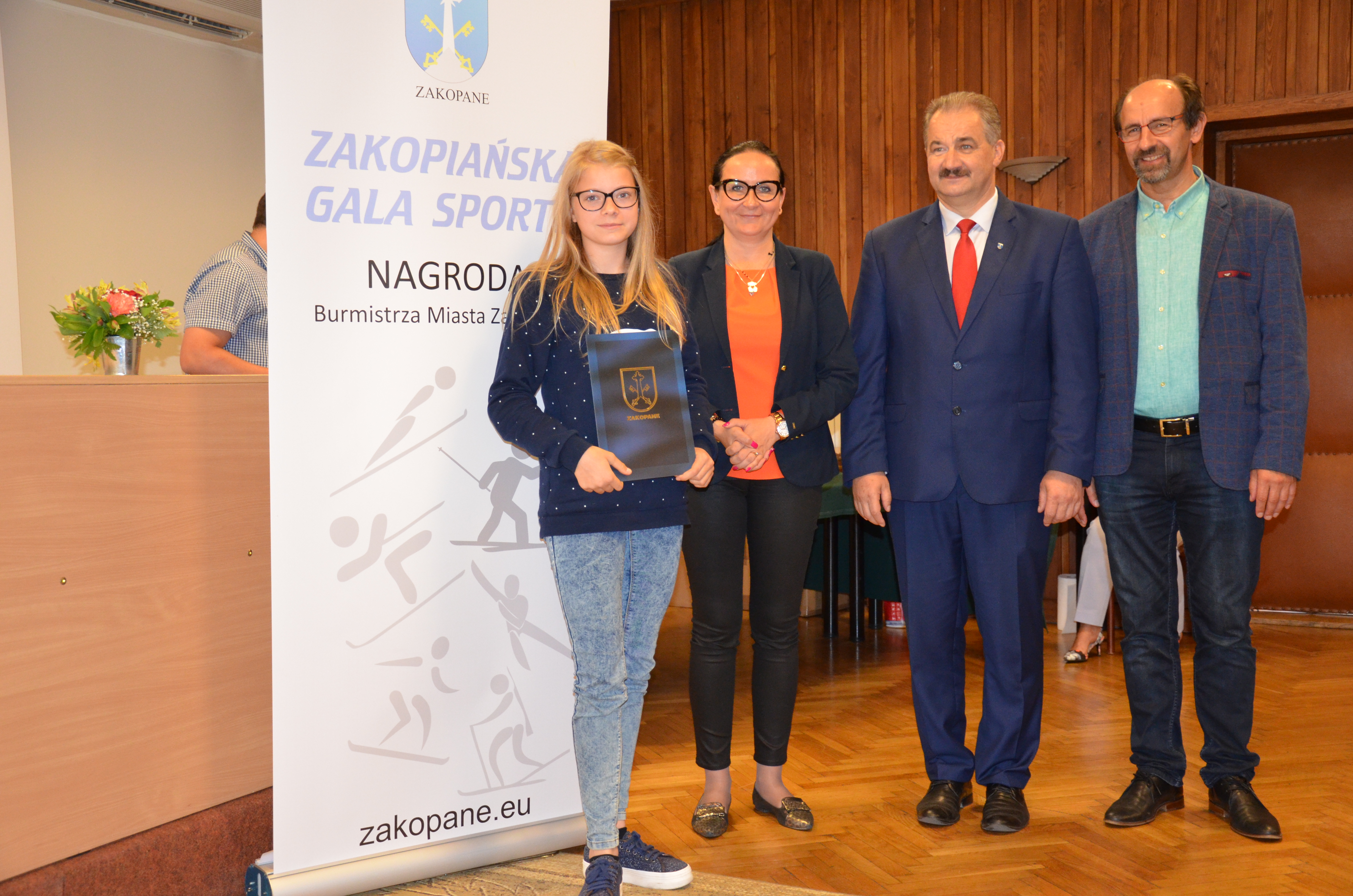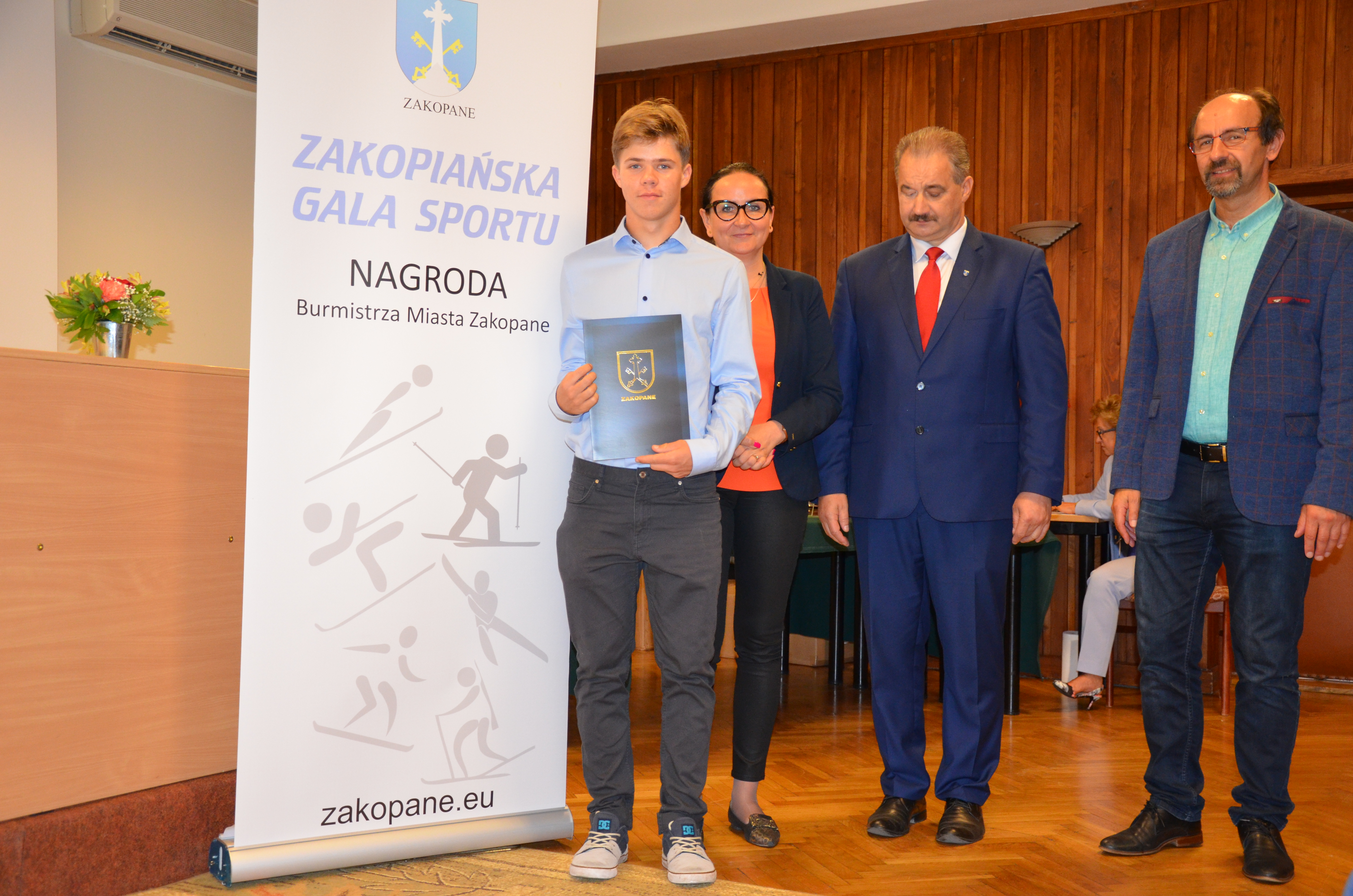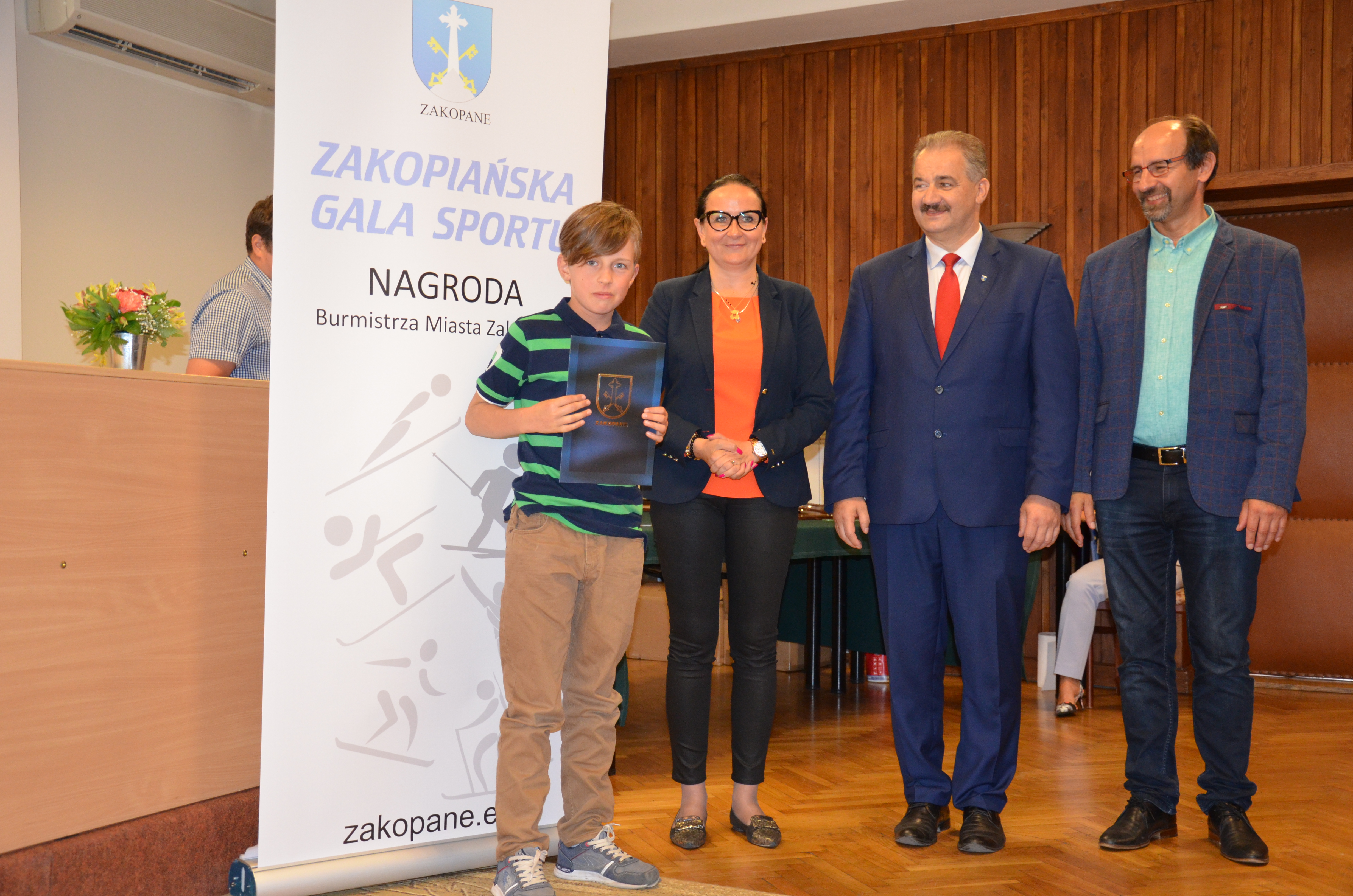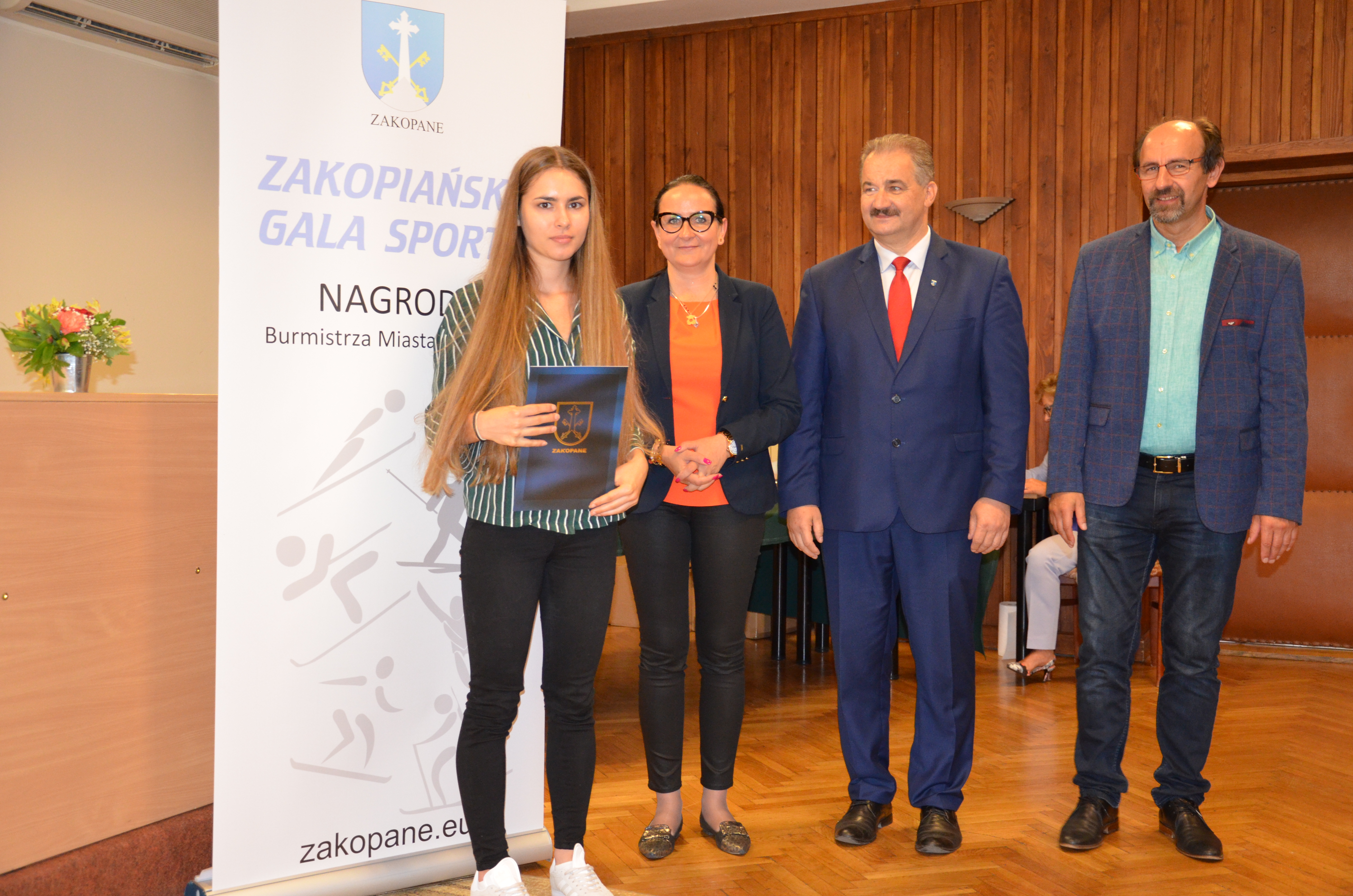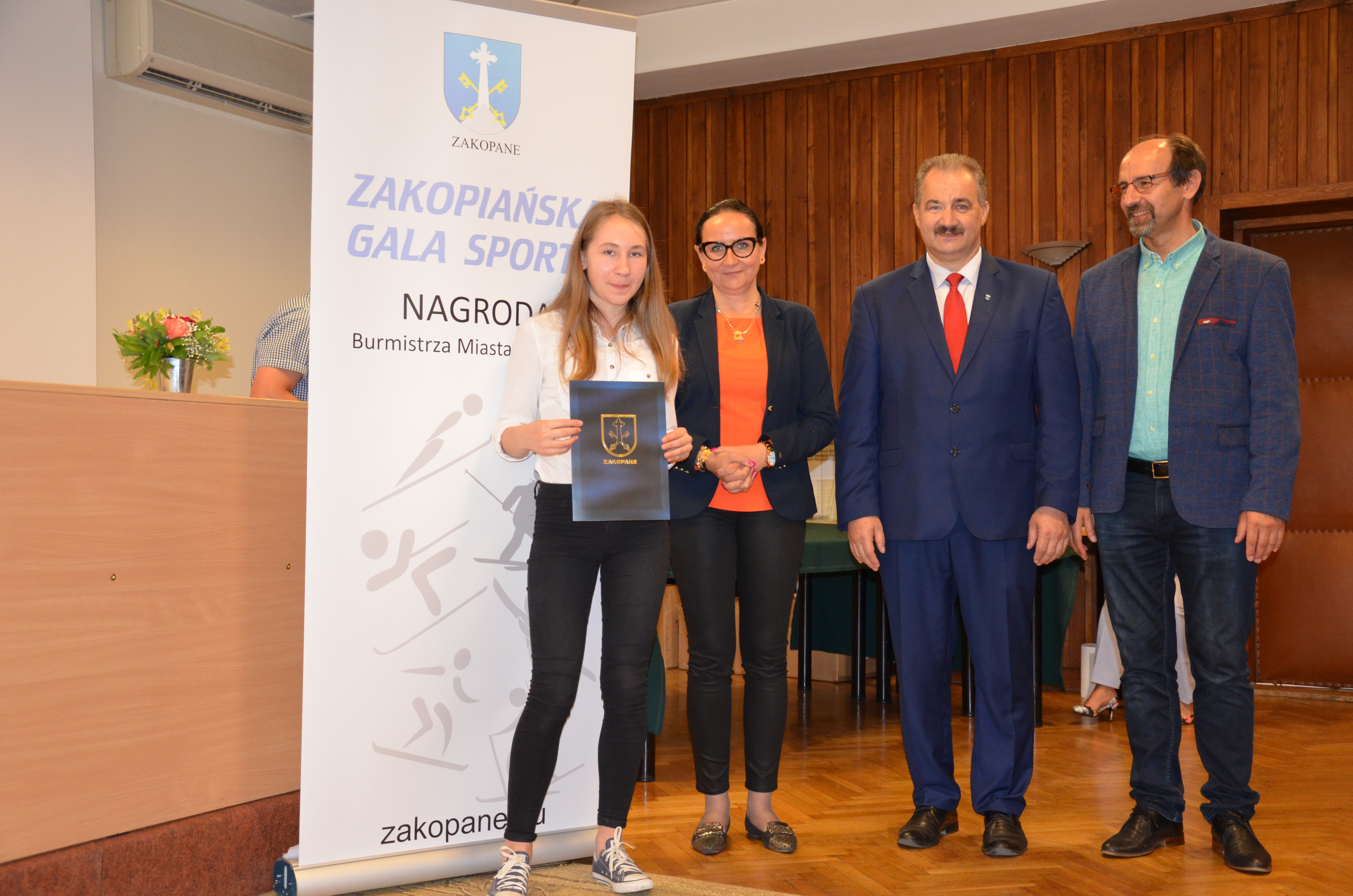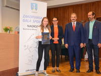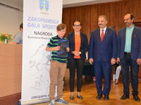 Burmistrz Miasta Zakopane Leszek Dorula wraz z wiceburmistrz Agnieszką Nowak-Gąsienicą i radnym Janem Glucem podczas uroczystego zakończenia sezonu sportowego 2017/2018 wręczyli nagrody i wyróżnienia dla trenerów i zawodników, którzy osiągnęli wysokie wyniki sportowe w międzynarodowym i krajowym współzawodnictwie.