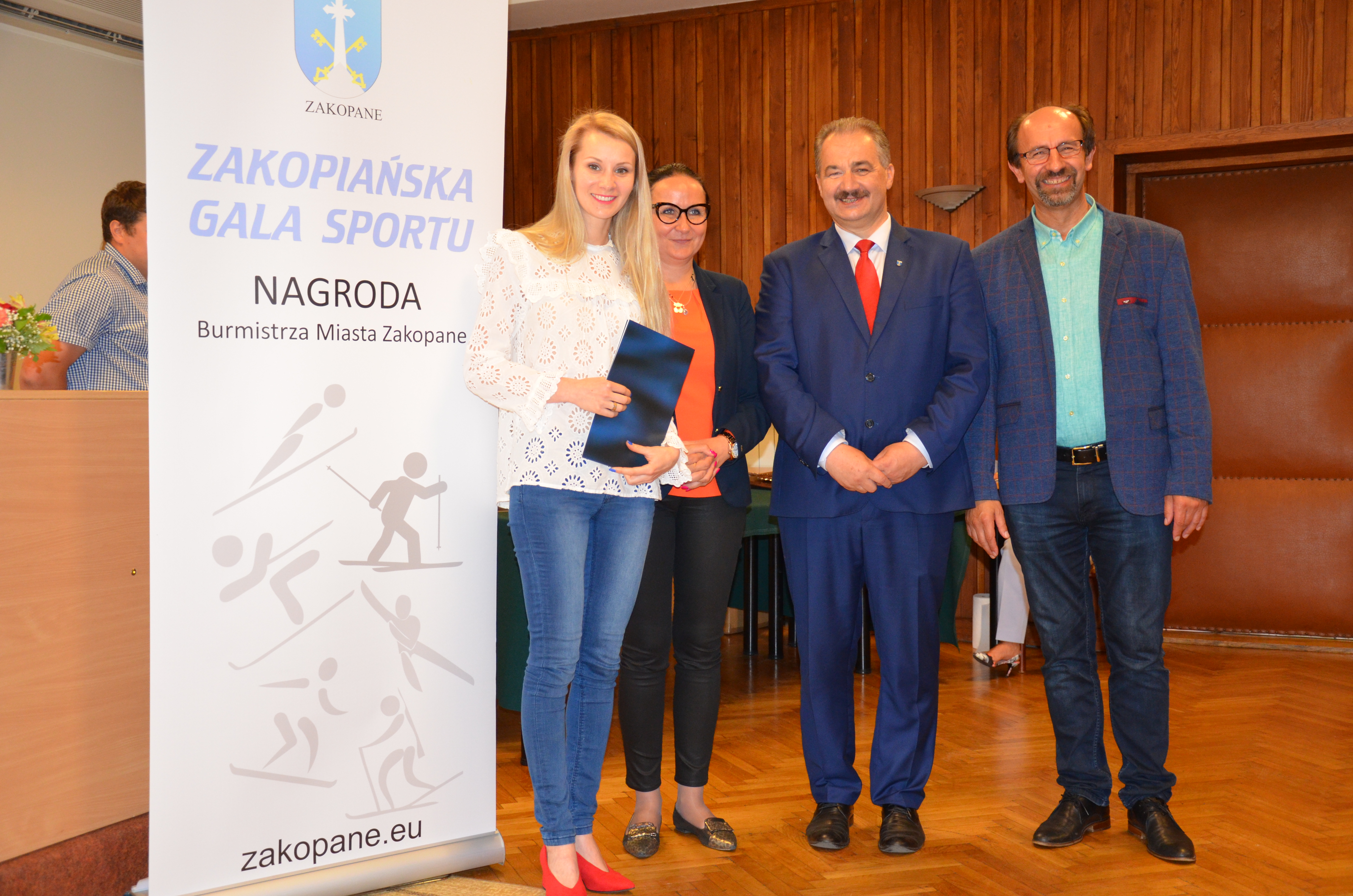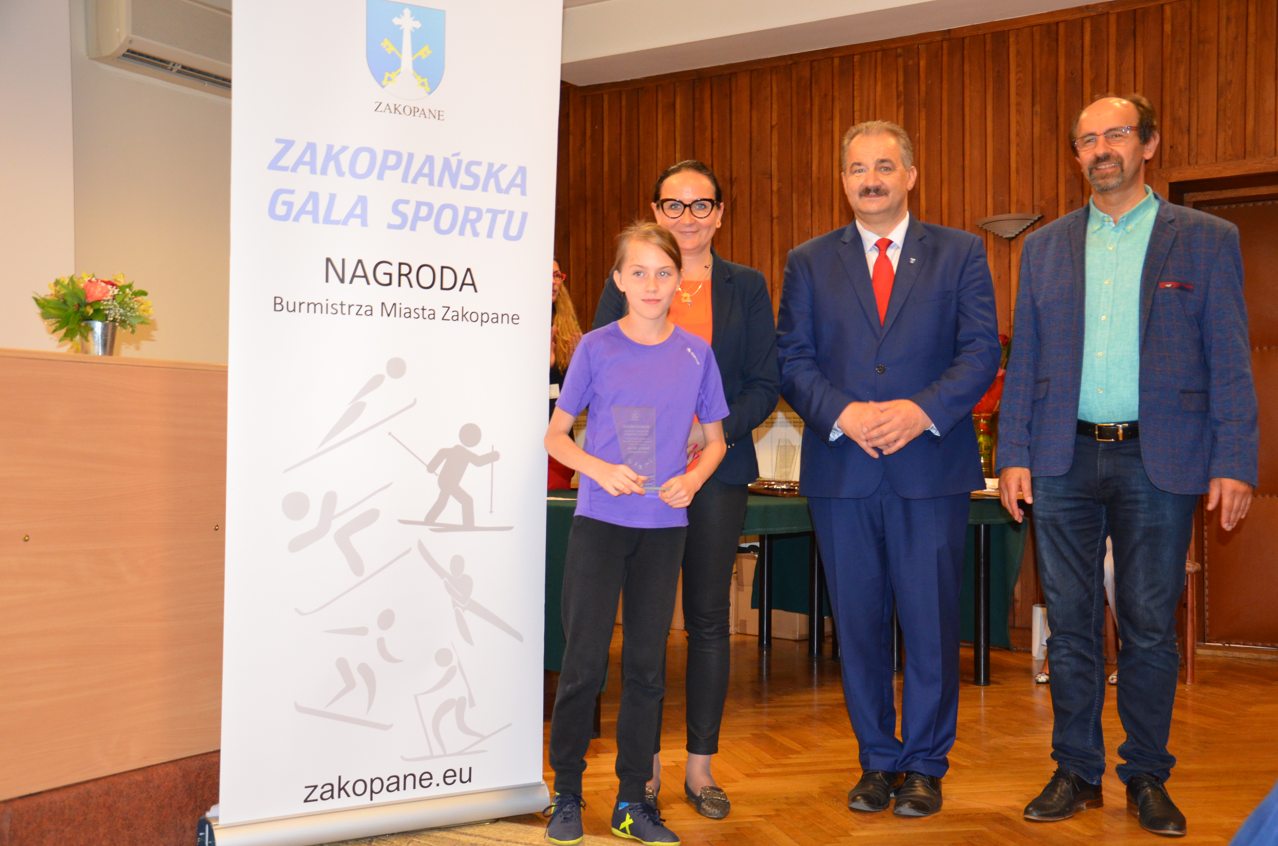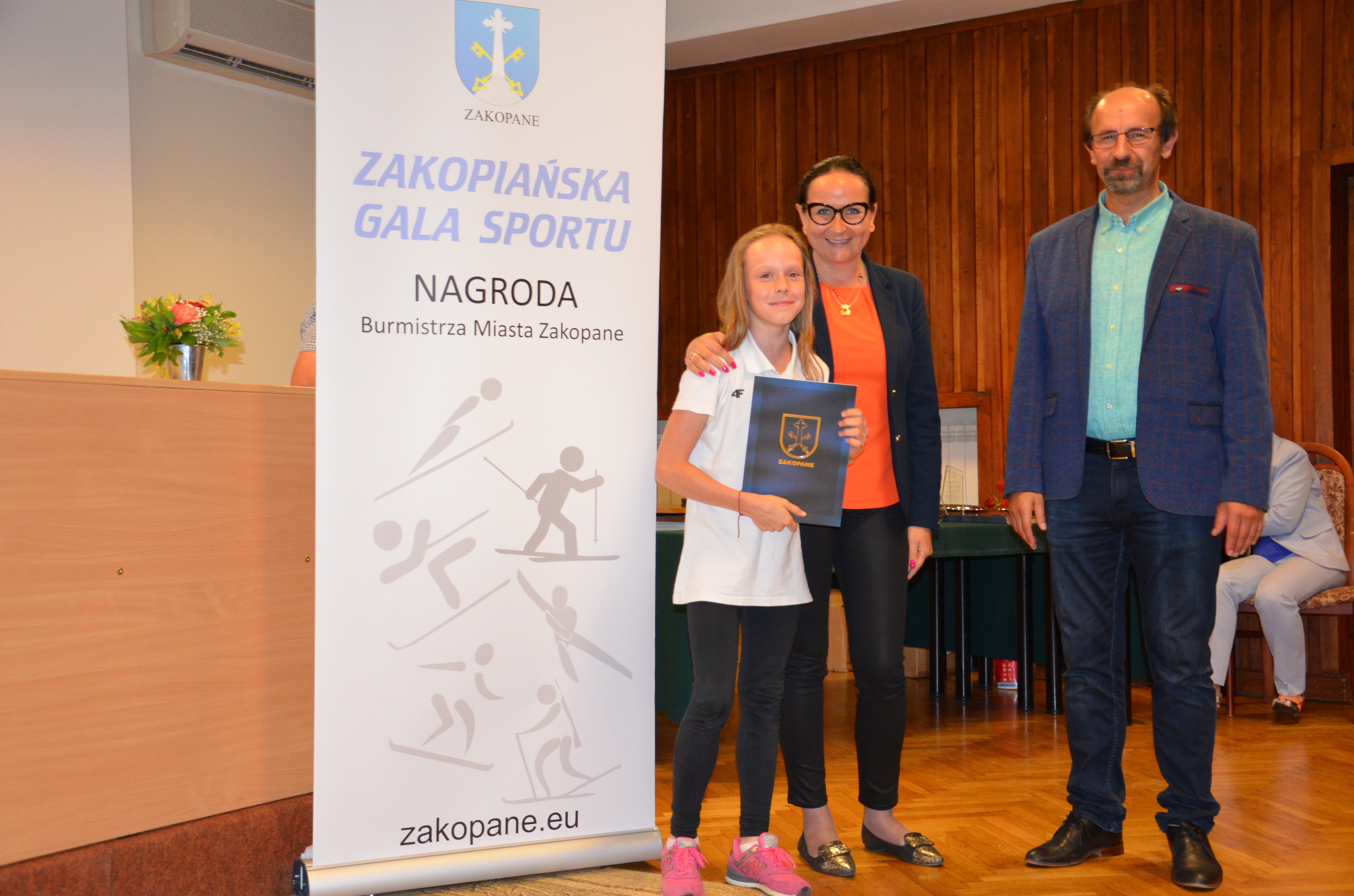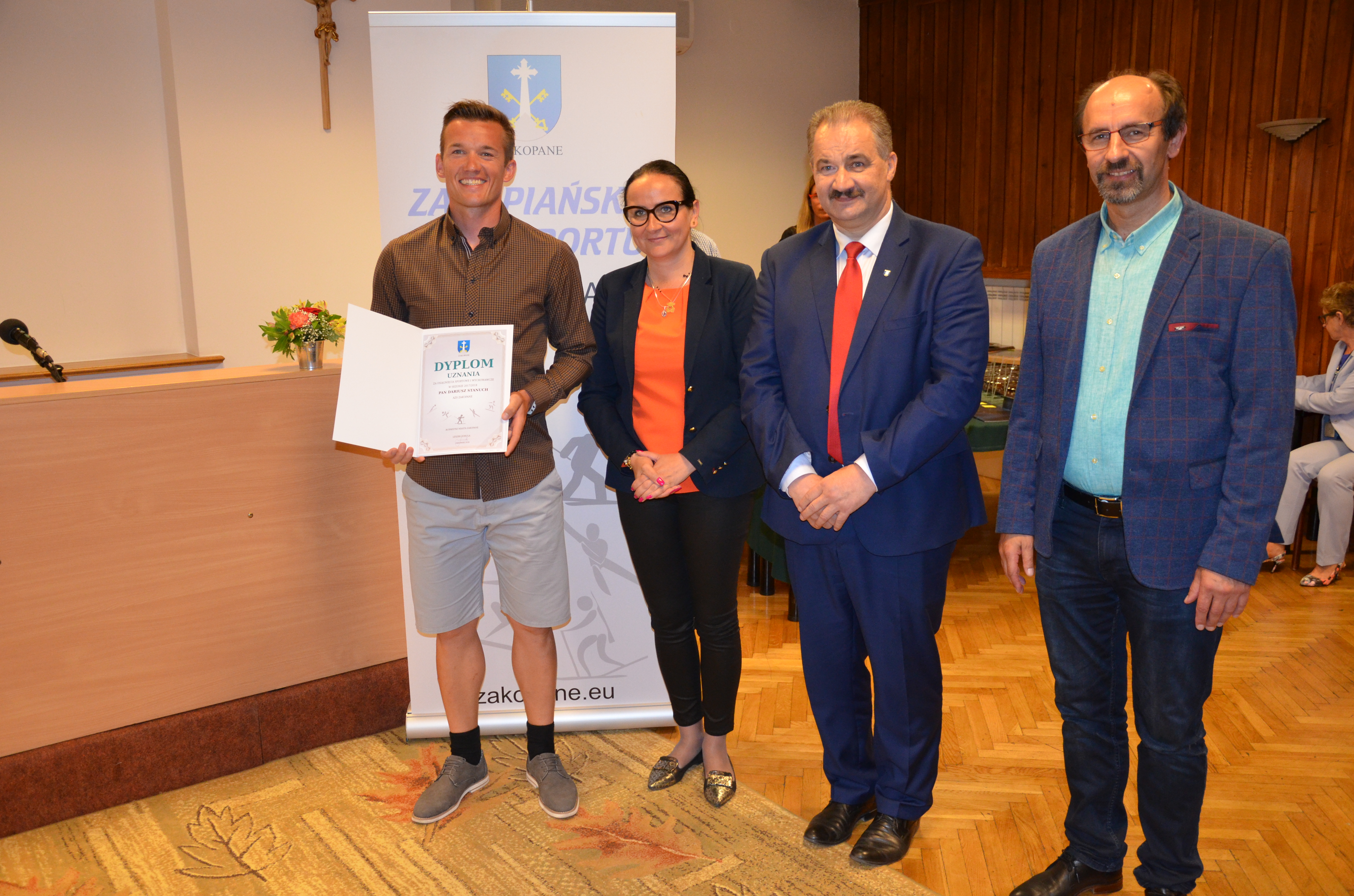 Burmistrz Miasta Zakopane Leszek Dorula wraz z wiceburmistrz Agnieszką Nowak-Gąsienicą i radnym Janem Glucem podczas uroczystego zakończenia sezonu sportowego 2017/2018 wręczyli nagrody i wyróżnienia dla trenerów i zawodników, którzy osiągnęli wysokie wyniki sportowe w międzynarodowym i krajowym współzawodnictwie.