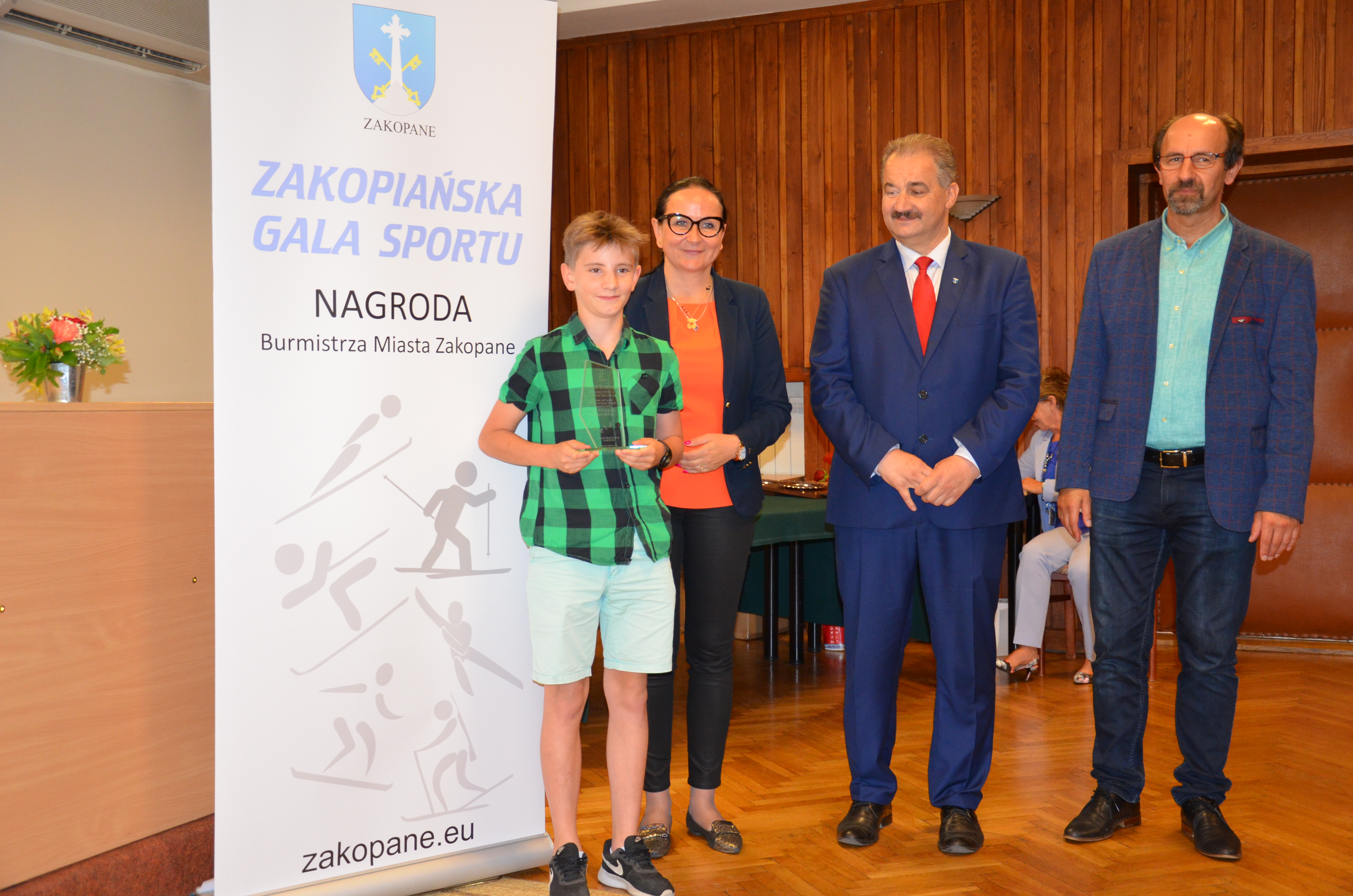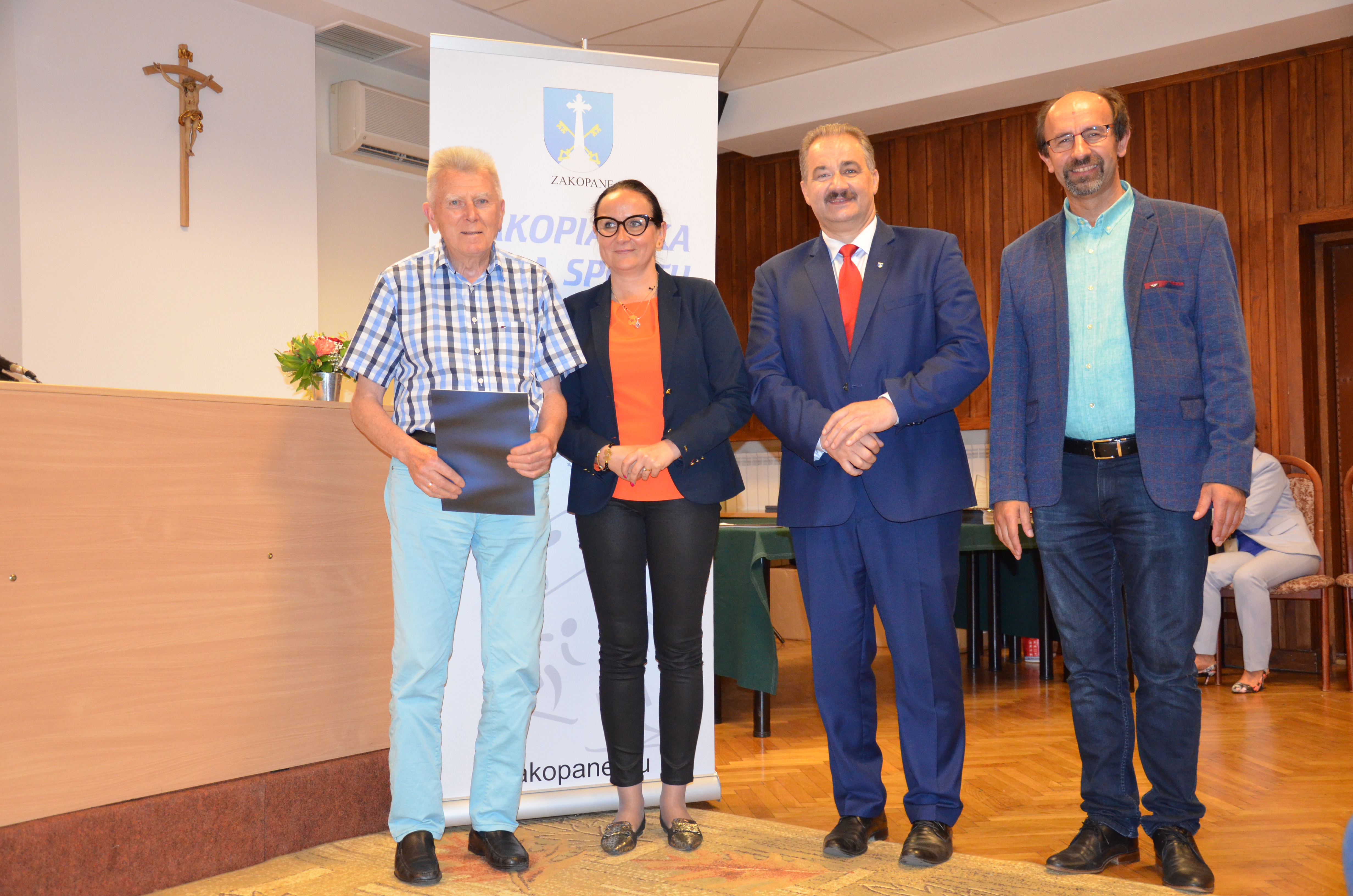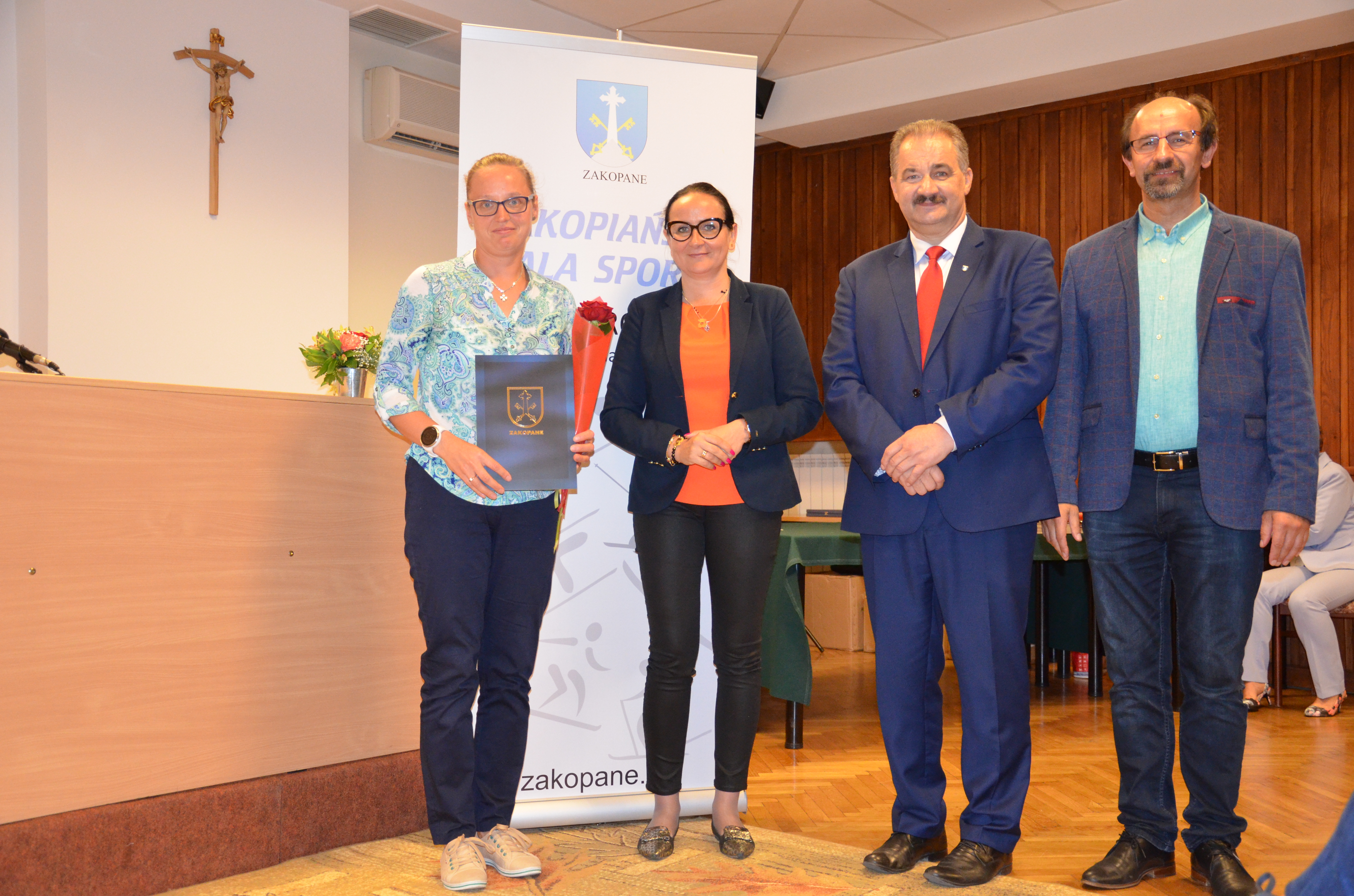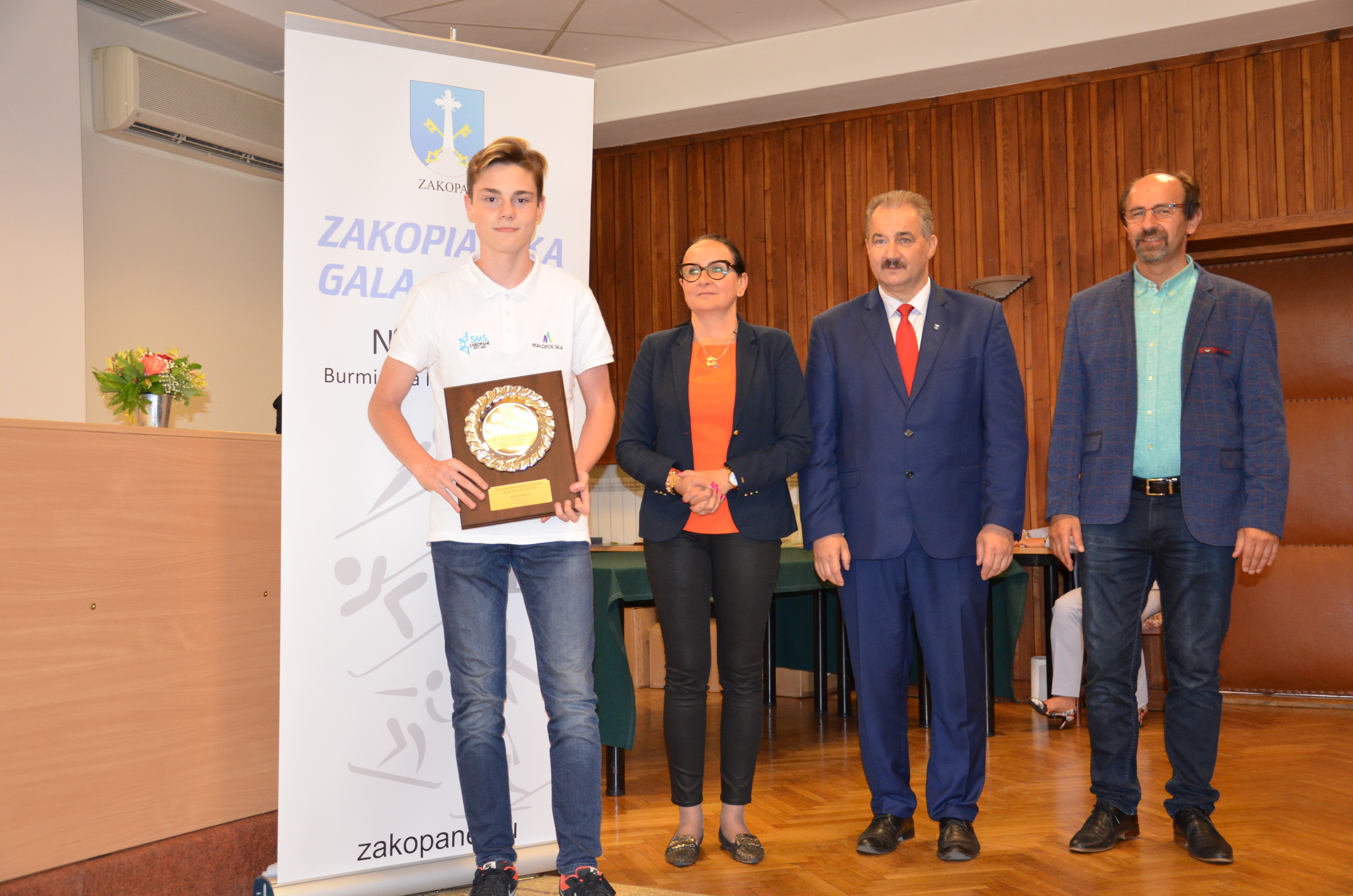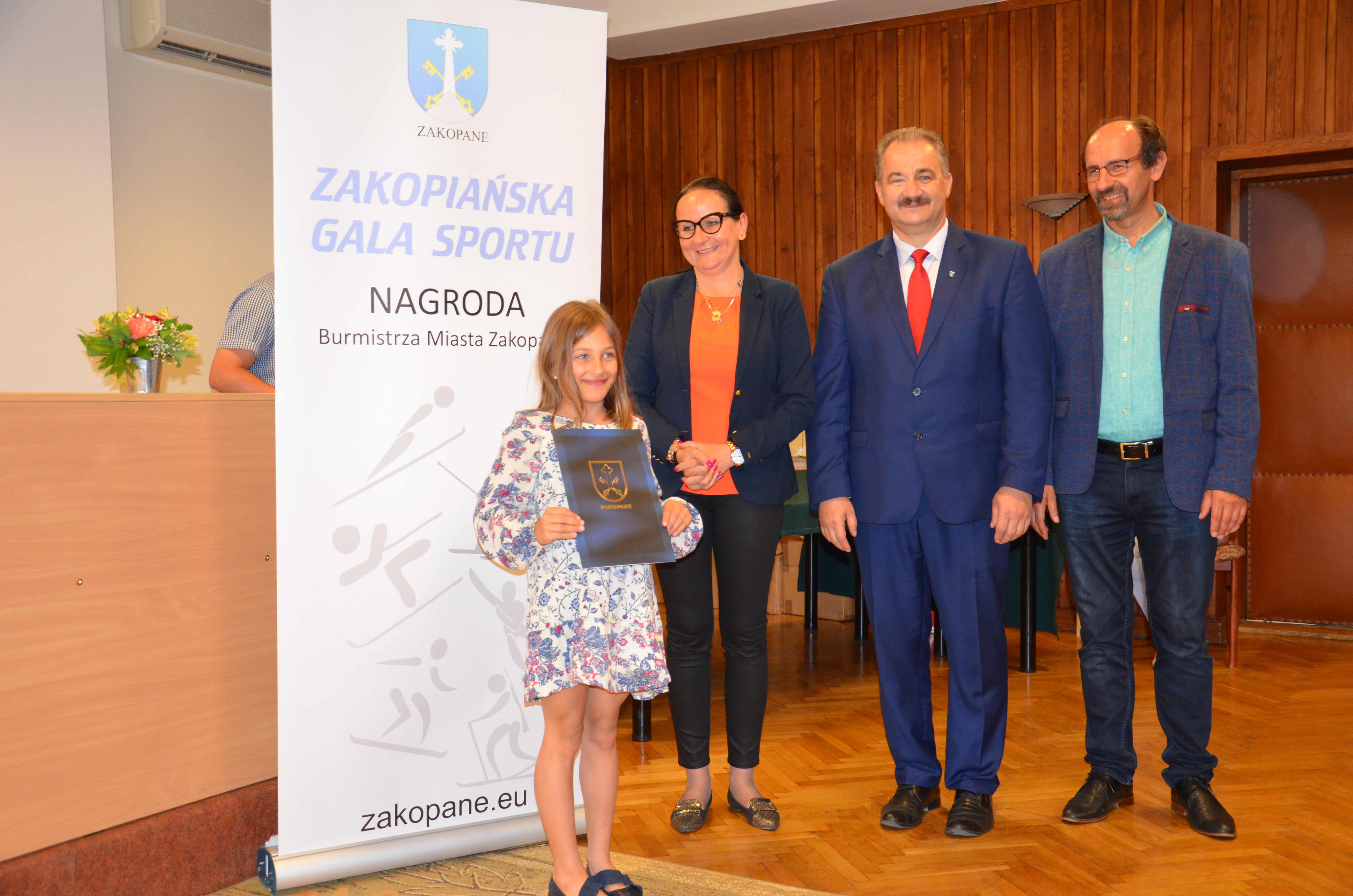 Burmistrz Miasta Zakopane Leszek Dorula wraz z wiceburmistrz Agnieszką Nowak-Gąsienicą i radnym Janem Glucem podczas uroczystego zakończenia sezonu sportowego 2017/2018 wręczyli nagrody i wyróżnienia dla trenerów i zawodników, którzy osiągnęli wysokie wyniki sportowe w międzynarodowym i krajowym współzawodnictwie.