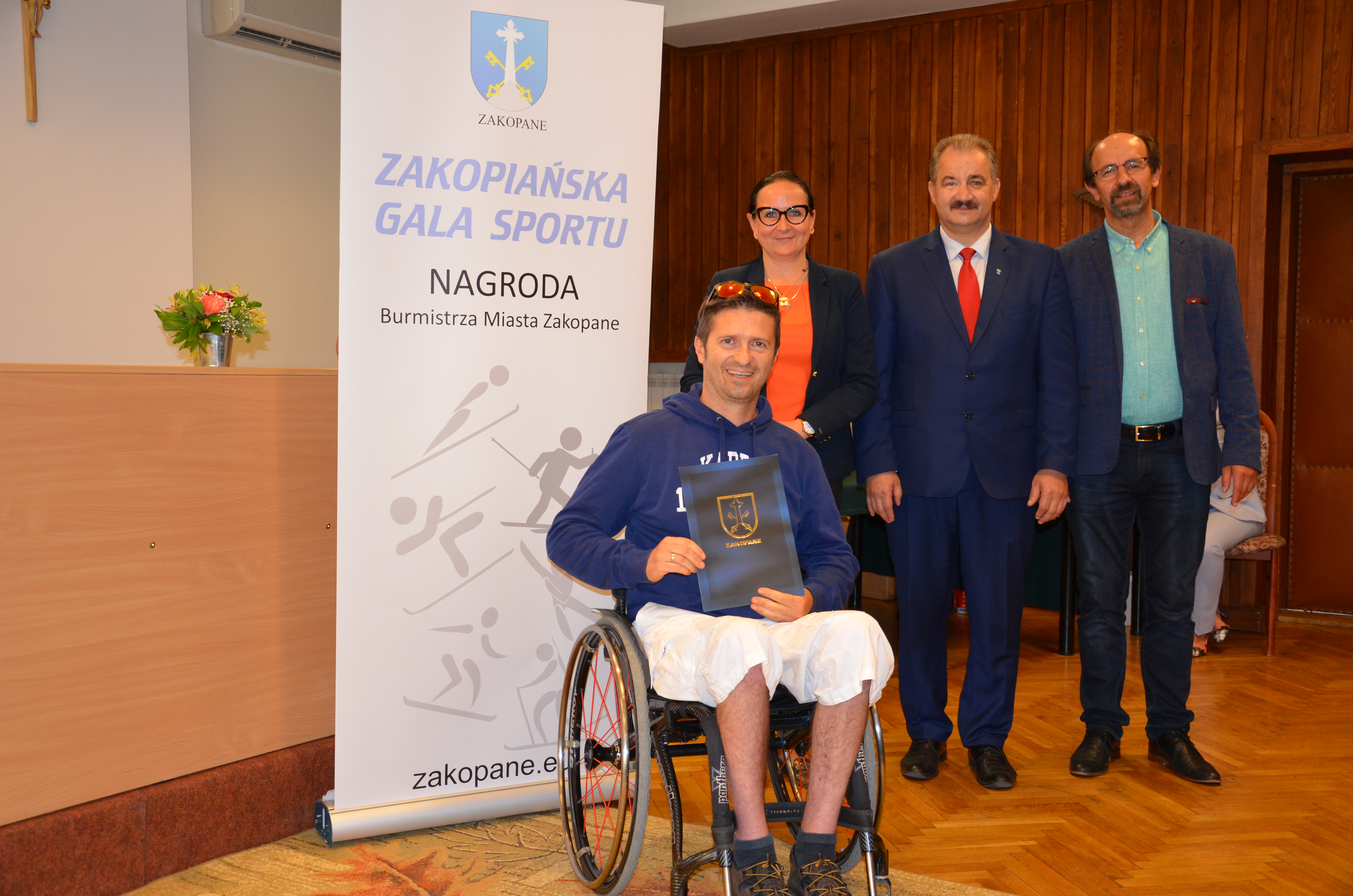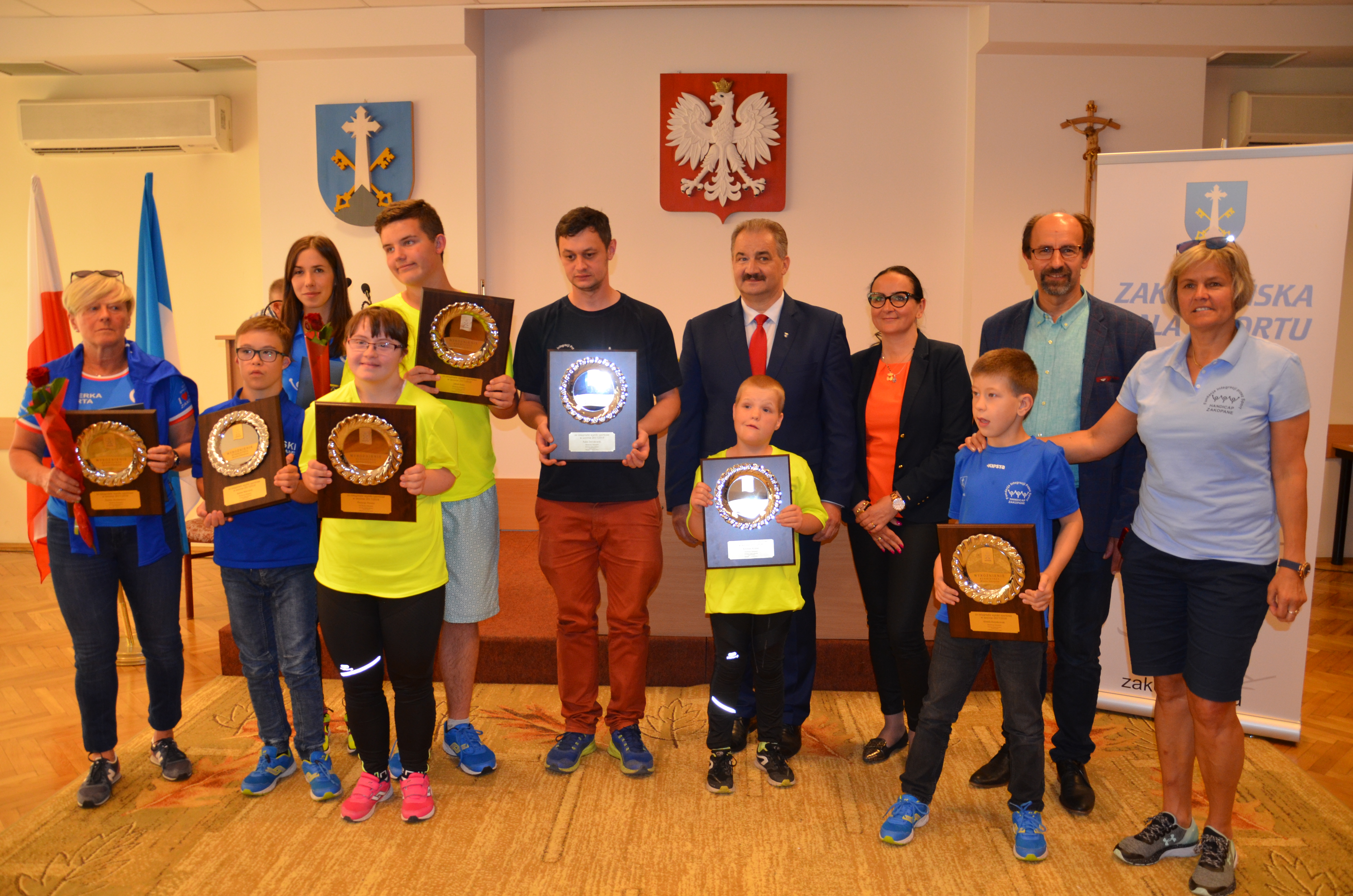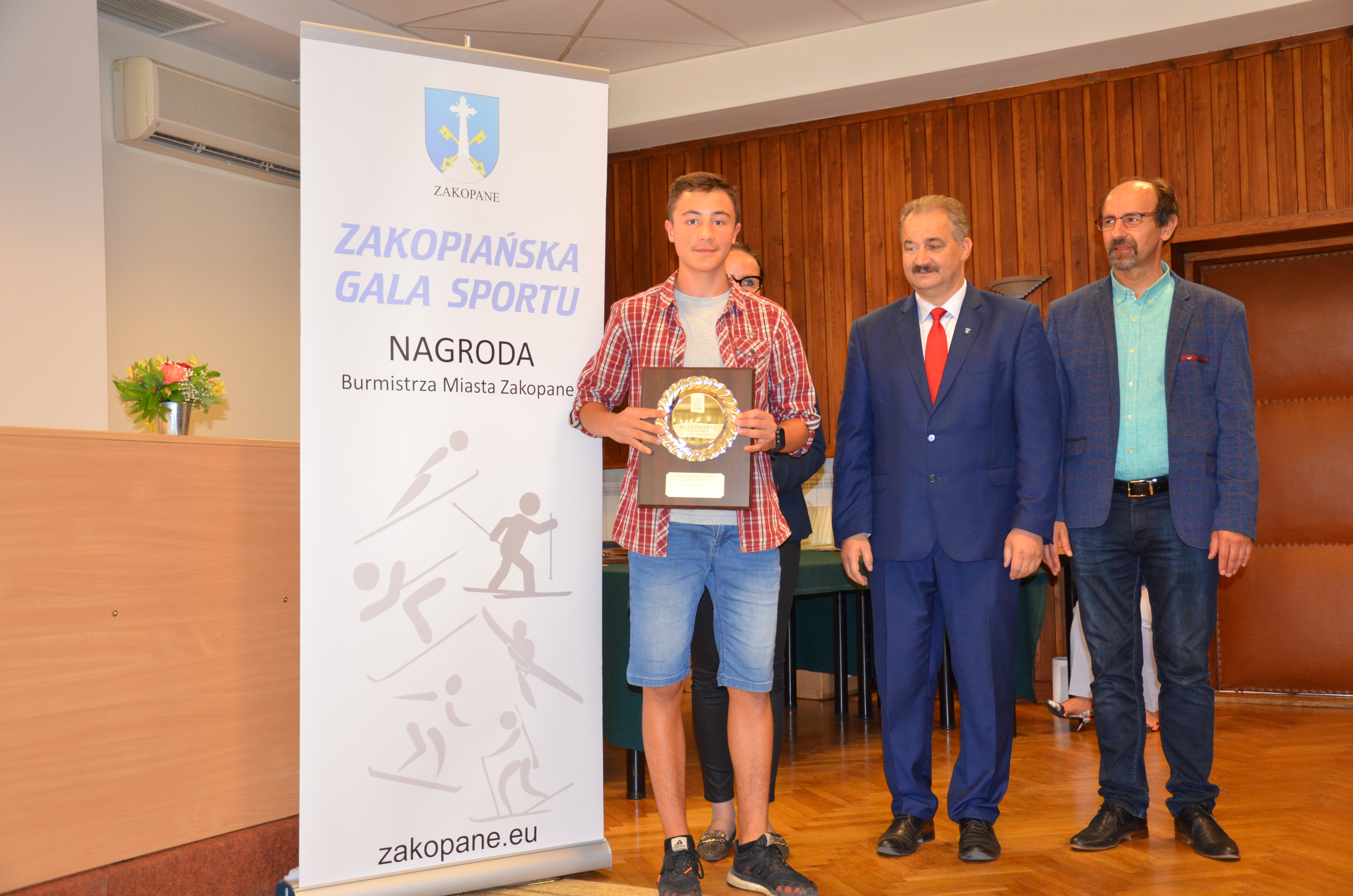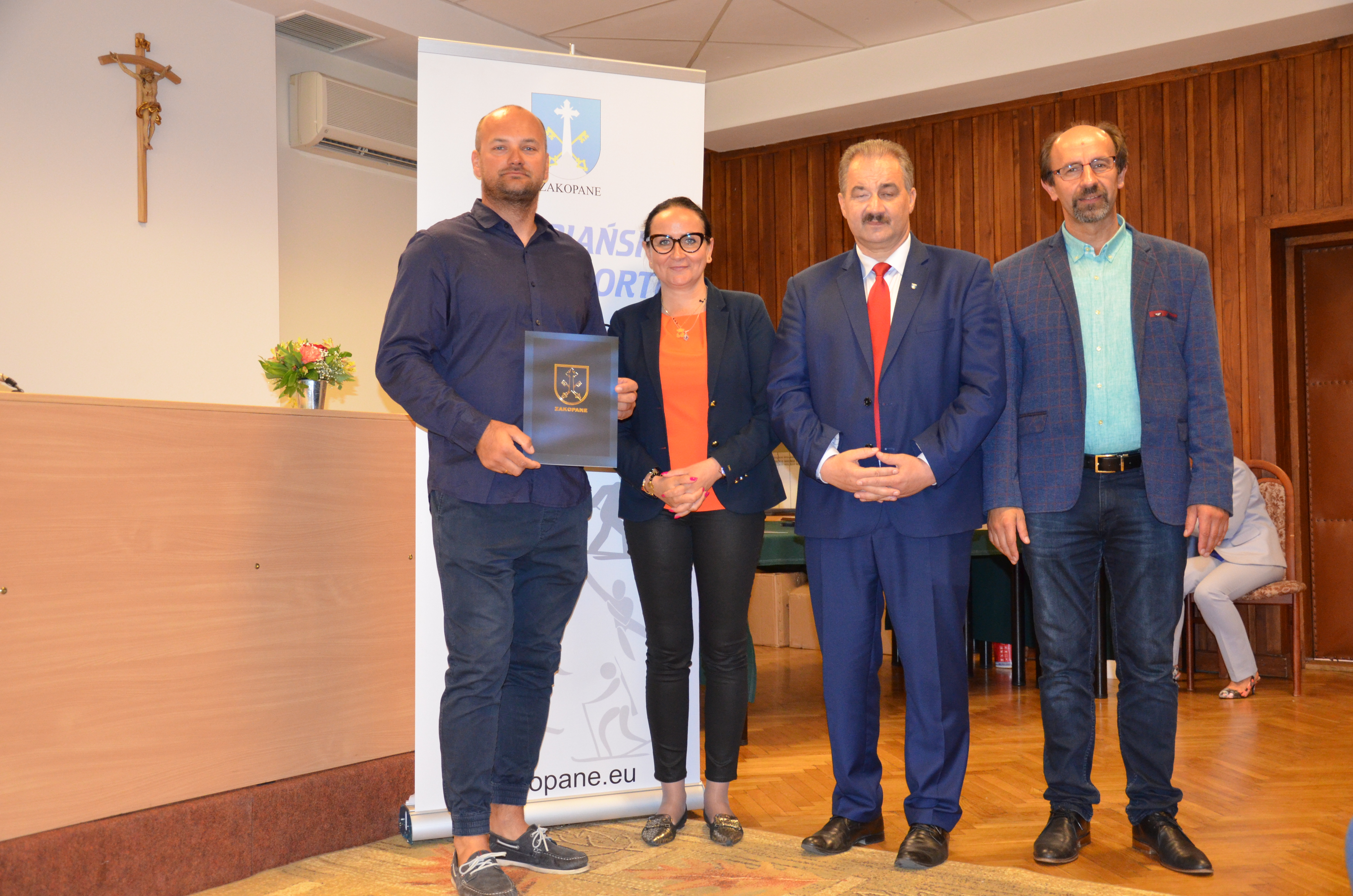 Burmistrz Miasta Zakopane Leszek Dorula wraz z wiceburmistrz Agnieszką Nowak-Gąsienicą i radnym Janem Glucem podczas uroczystego zakończenia sezonu sportowego 2017/2018 wręczyli nagrody i wyróżnienia dla trenerów i zawodników, którzy osiągnęli wysokie wyniki sportowe w międzynarodowym i krajowym współzawodnictwie.