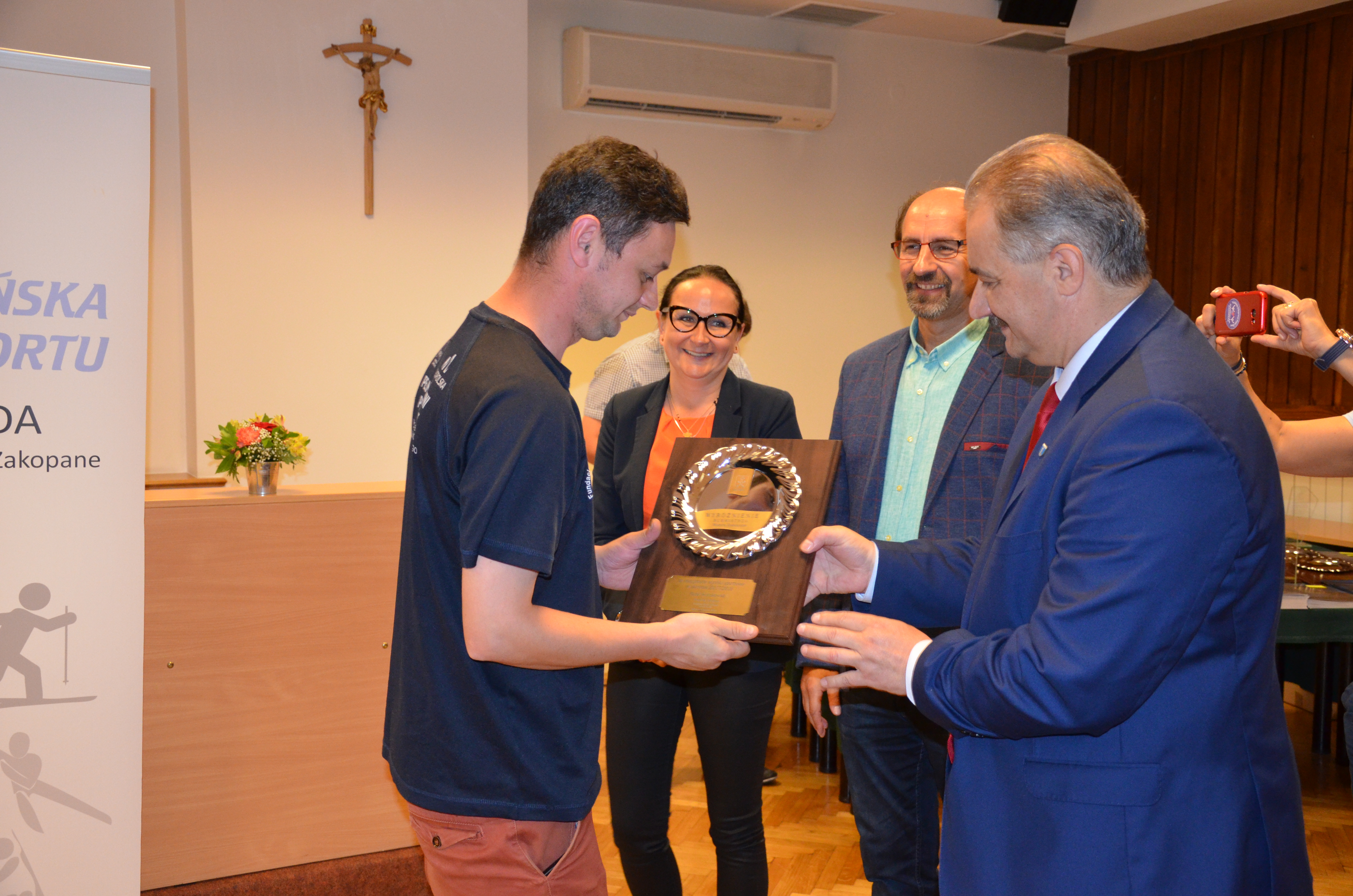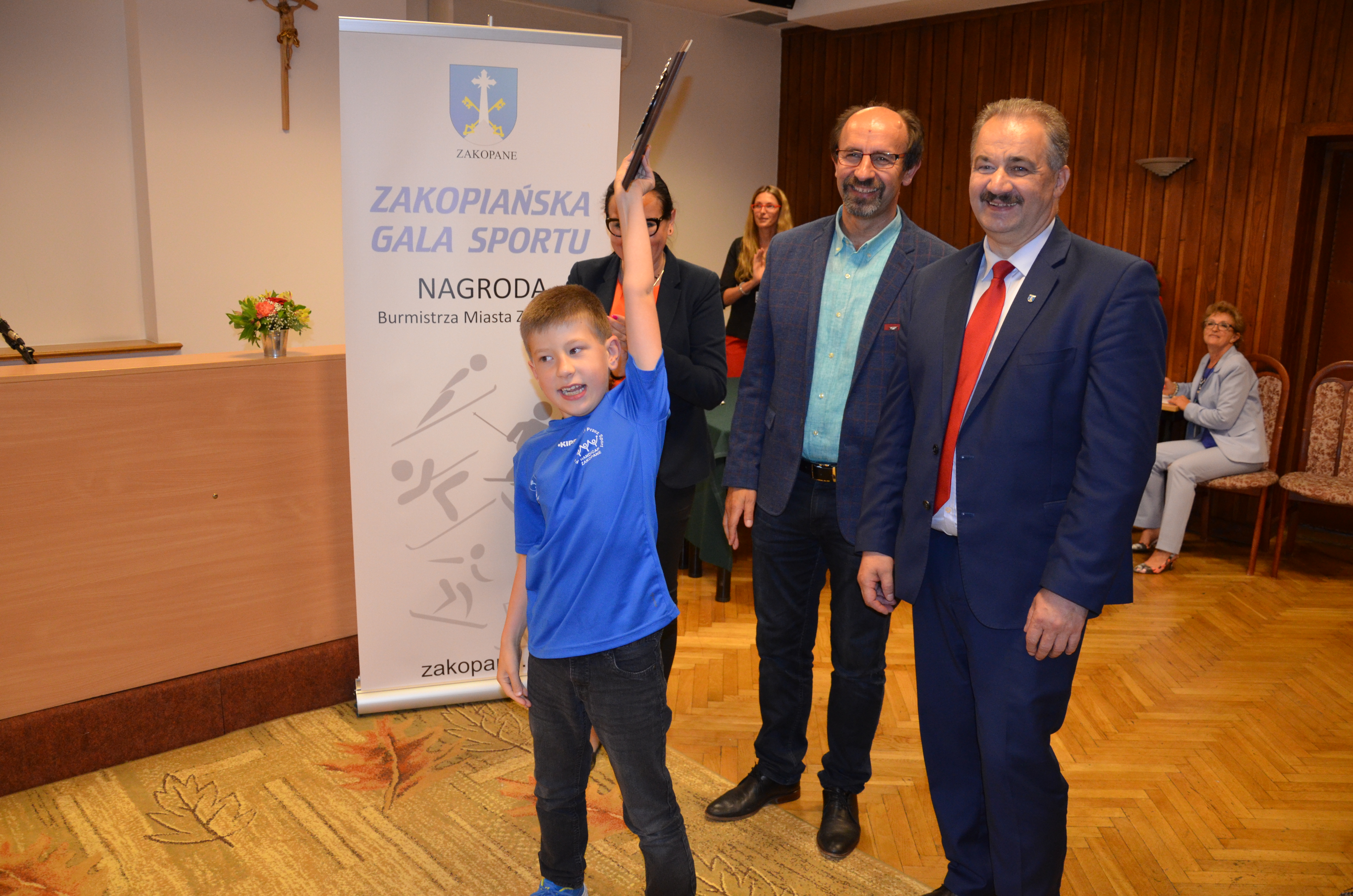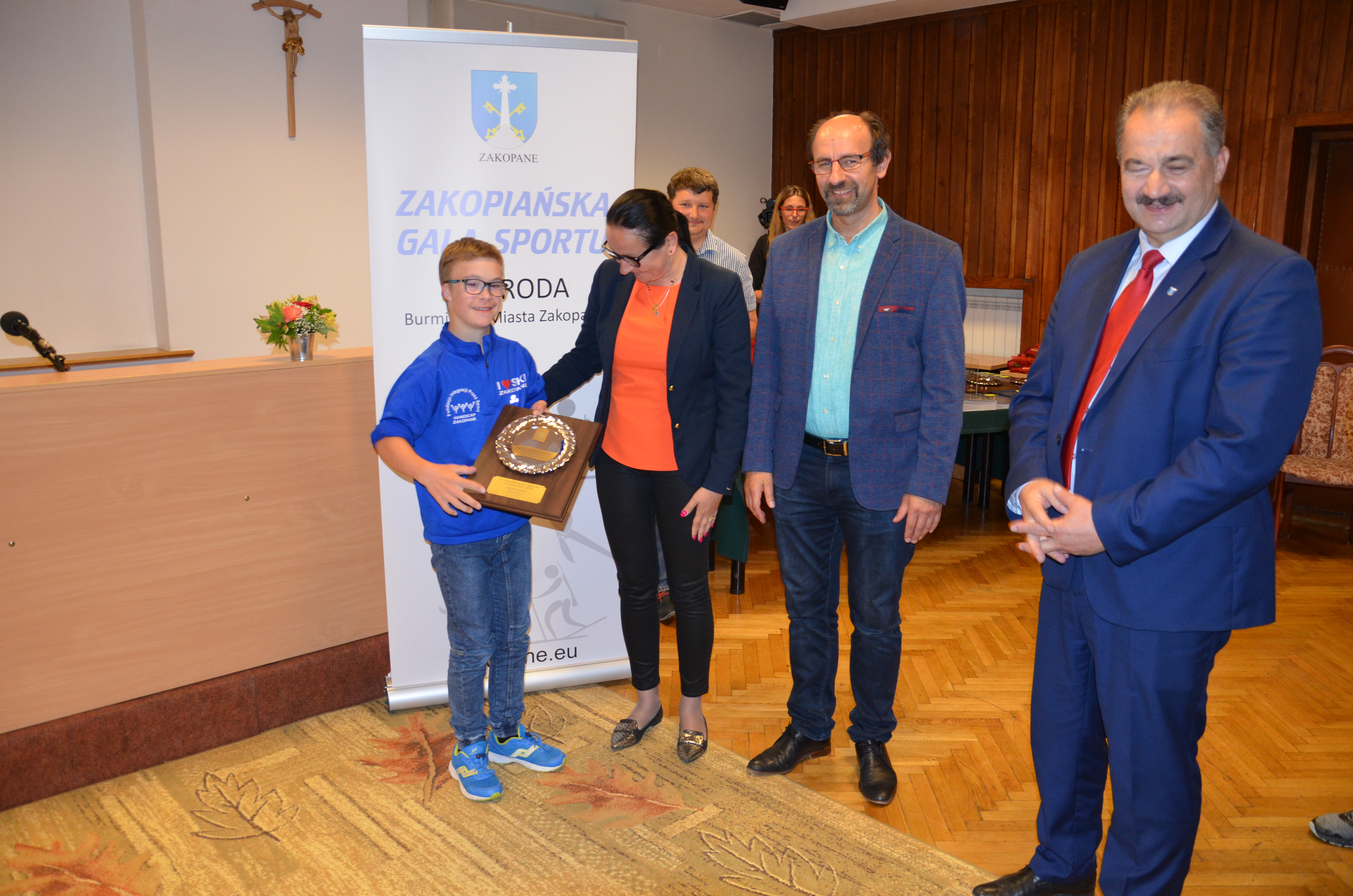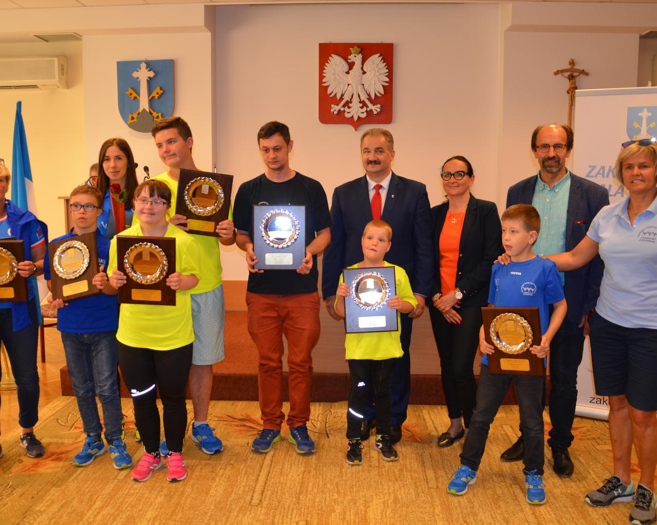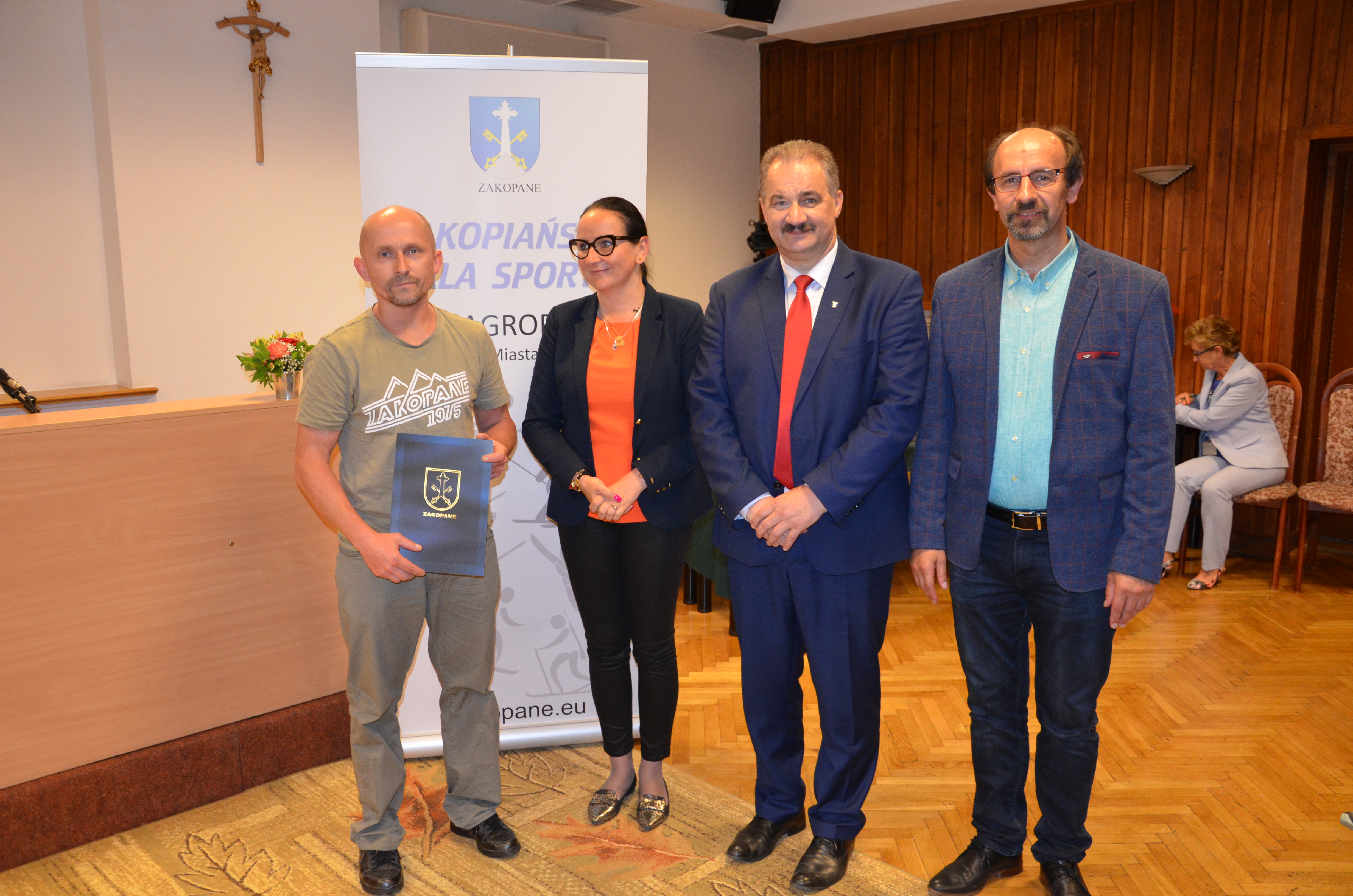 Burmistrz Miasta Zakopane Leszek Dorula wraz z wiceburmistrz Agnieszką Nowak-Gąsienicą i radnym Janem Glucem podczas uroczystego zakończenia sezonu sportowego 2017/2018 wręczyli nagrody i wyróżnienia dla trenerów i zawodników, którzy osiągnęli wysokie wyniki sportowe w międzynarodowym i krajowym współzawodnictwie.