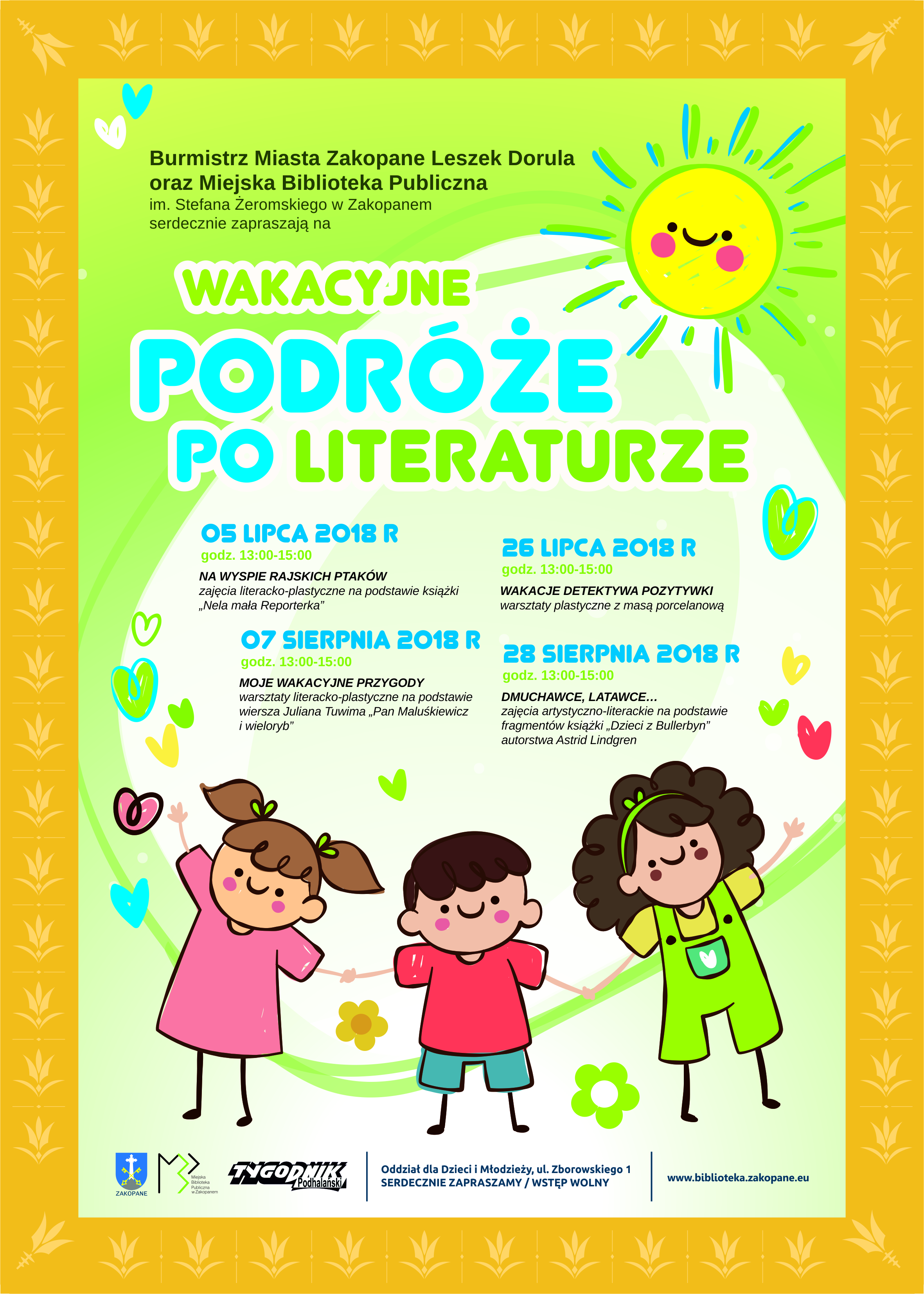 Burmistrz Miasta Zakopane Leszek Dorula oraz Miejska Biblioteka Publiczna im. Stefana Żeromskiego w Zakopanem serdecznie zapraszają na zajęcia dla dzieci w bibliotece.