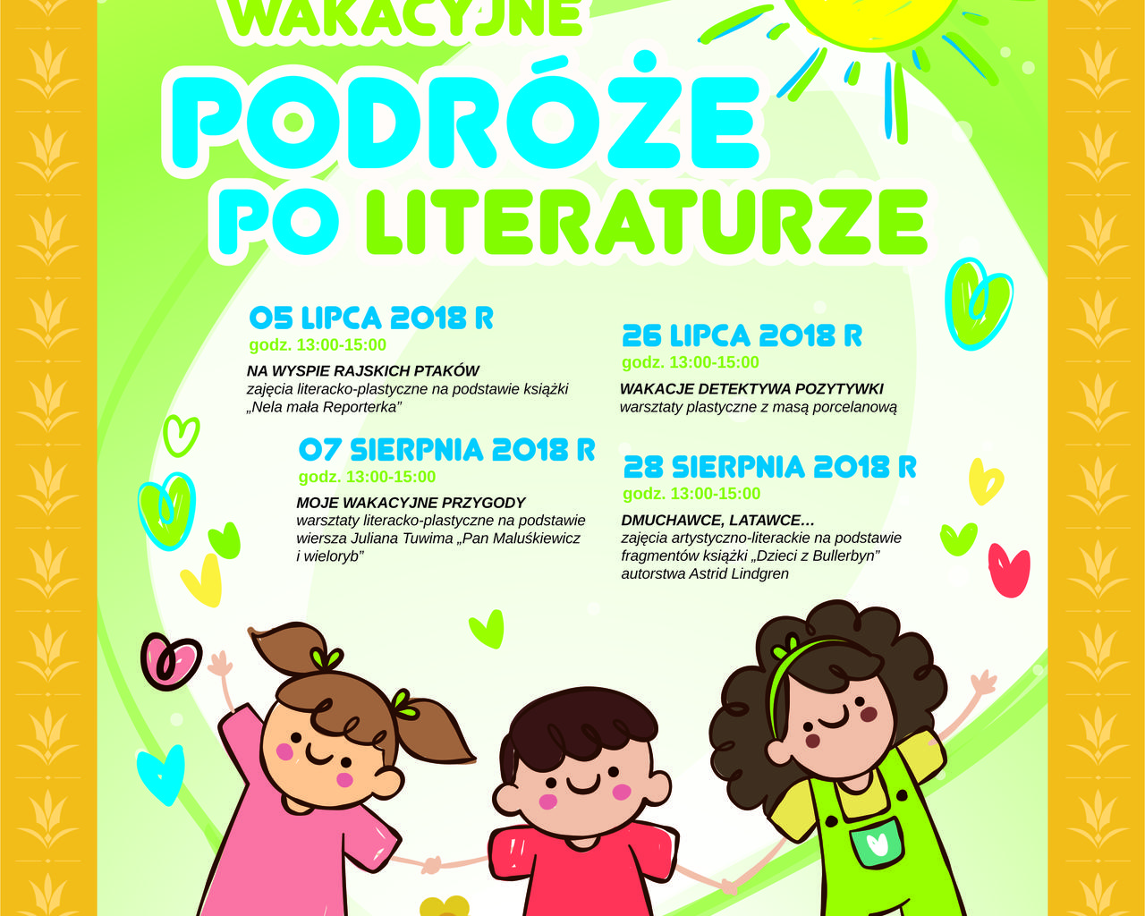 28 sierpnia 2018 r., godz. 13:00 - 15:00 – DMUCHAWCE, LATAWCE… - zajęcia artystyczno-literackie na podstawie fragmentów książki „Dzieci z Bullerbyn” autorstwa Astrid Lindgre(RKW)