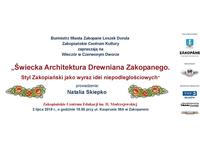 Burmistrz Miasta Zakopane Leszek Dorula i Zakopiańskie Centrum Kultury zapraszają na Wieczór w Czerwonym Dworze „Świecka architektura drewniana Zakopanego. Styl Zakopiański jako wyraz idei niepodległościowych” 2 lipca o godz. 18.00, ZCE, ul. Kasprusie 35A.
