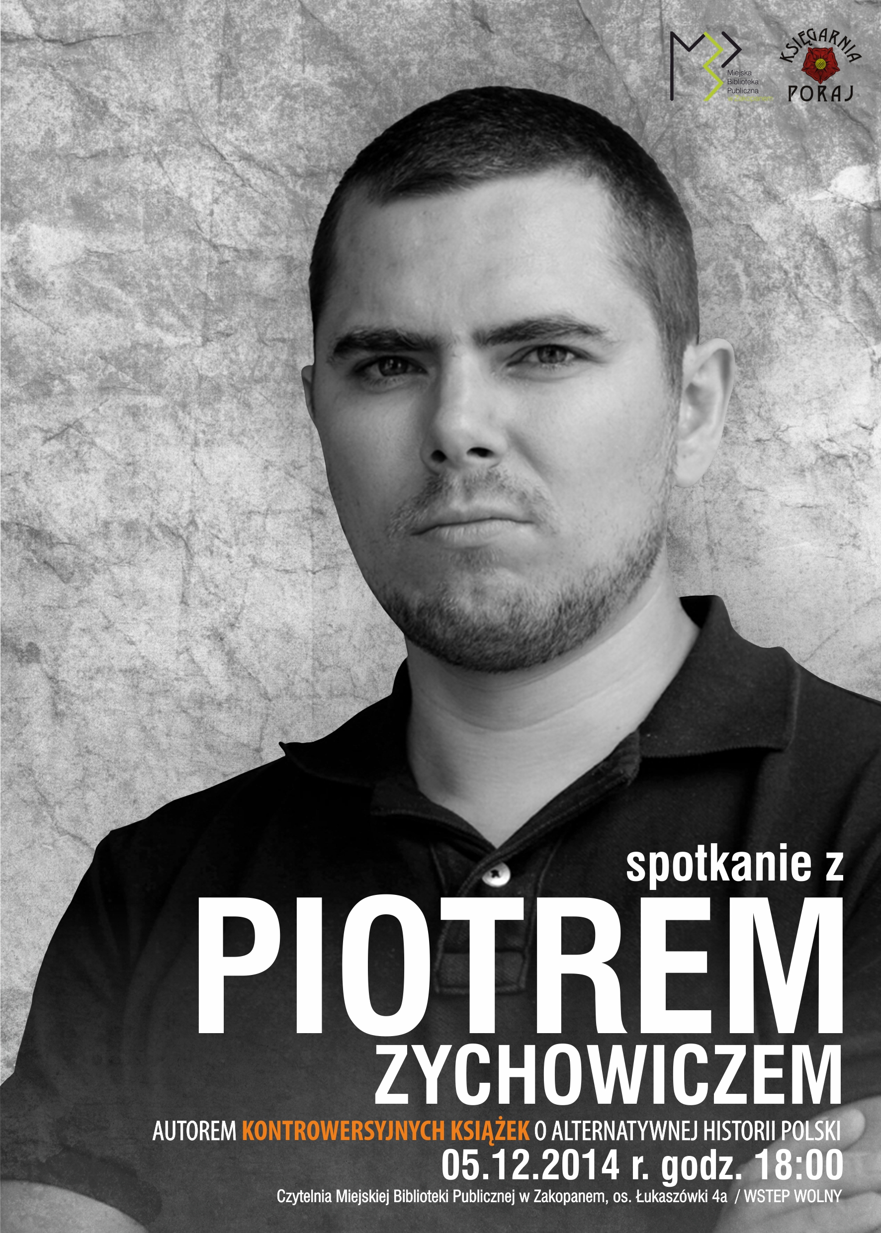 W piątek 5 grudnia o godz. 18.00 w zakopiańskiej Miejskiej Bibliotece Publicznej im. S. Żeromskiego odbędzie się spotkanie autorskie z Piotrem Zychowiczem, autorem książek: "Opcja niemiecka czyli jak polscy antykomuniści próbowali porozumieć się z okupantem", "Pakt Ribbentrop – Beck czyli jak Polacy mogli u boku III Rzeszy pokonać Związek Sowiecki" oraz "Obłęd ’44 czyli jak Polacy zrobili prezent Stalinowi, wywołując Powstanie Warszawskie".